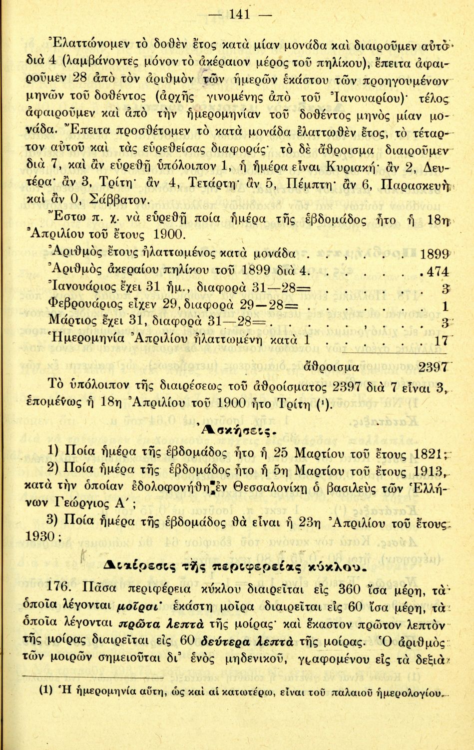 Τάξη:  Α' Ελληνικού Σχολείου / Β' Ελληνικού Σχολείου / Γ' Ελληνικού Σχολείου / Αστικό Σχολείο / Ανωτέρα Παρθεναγωγεία