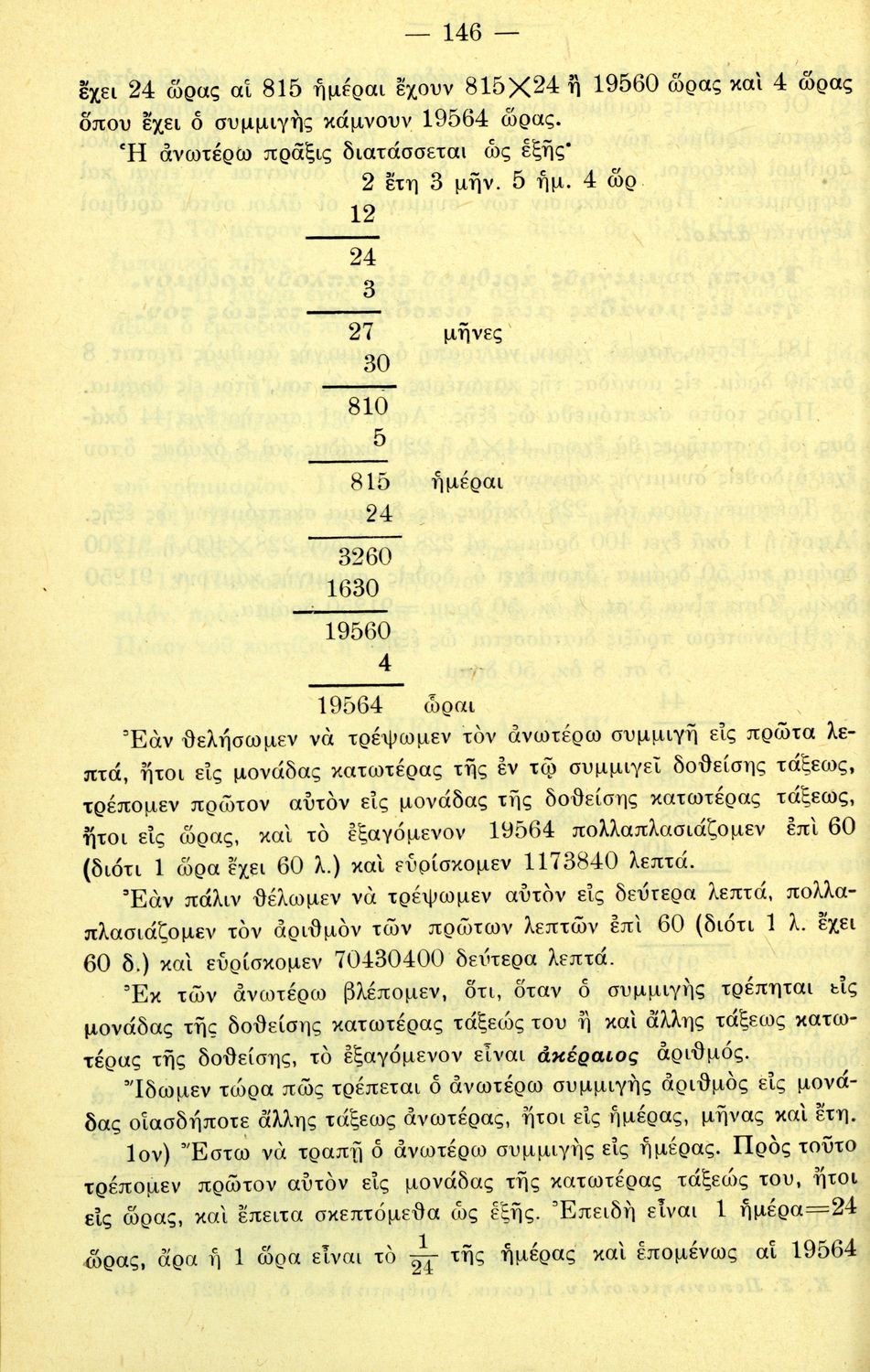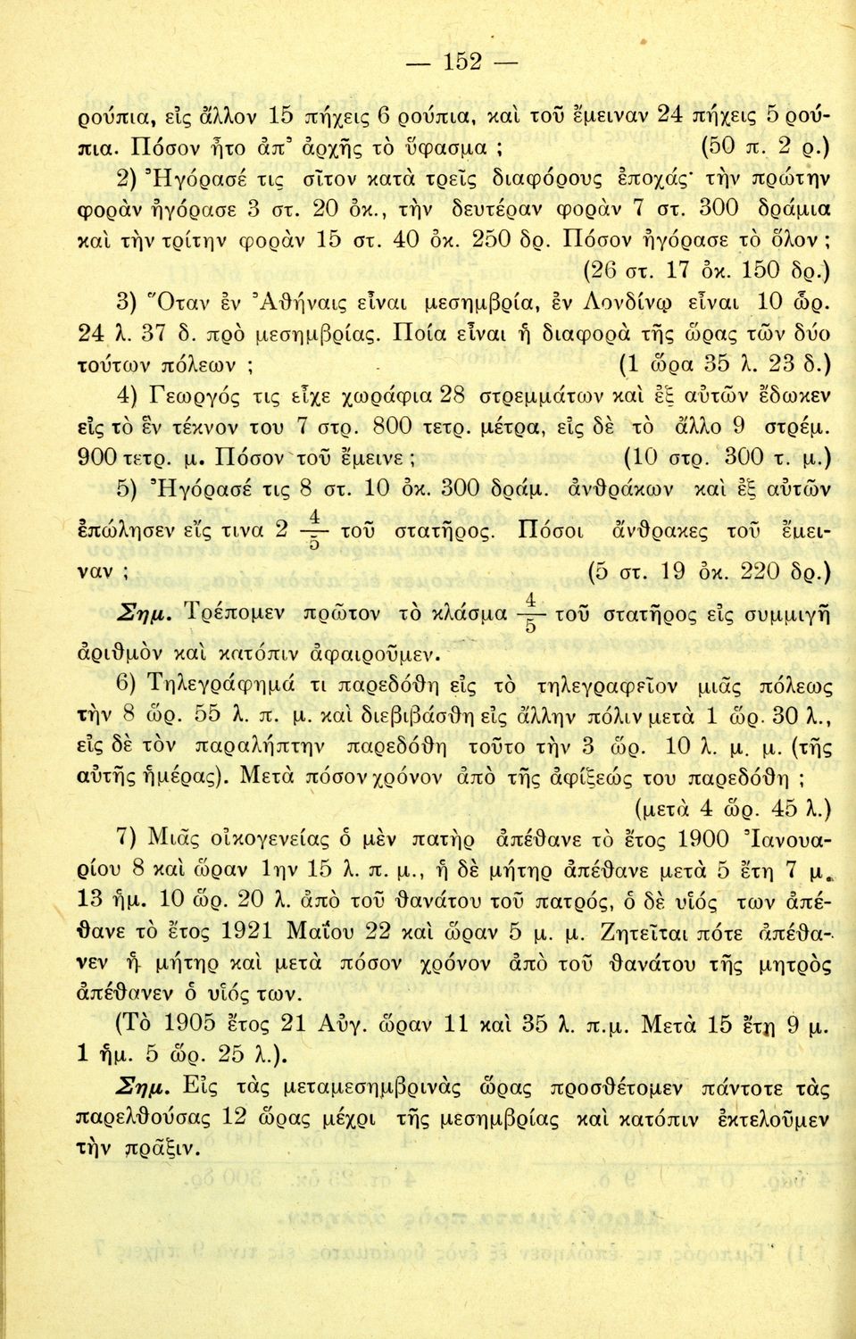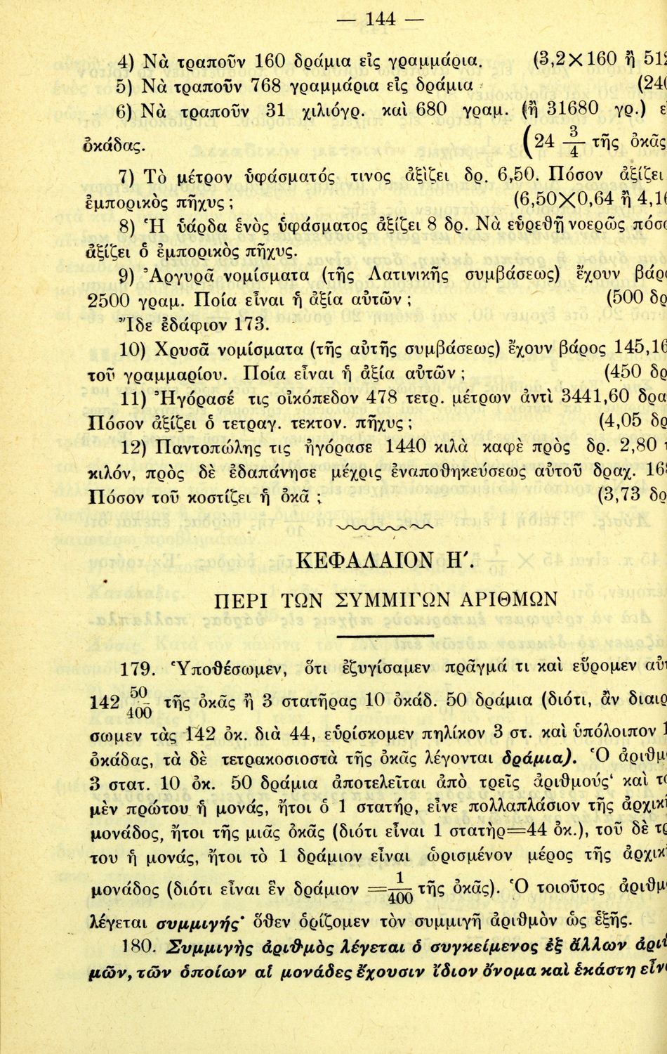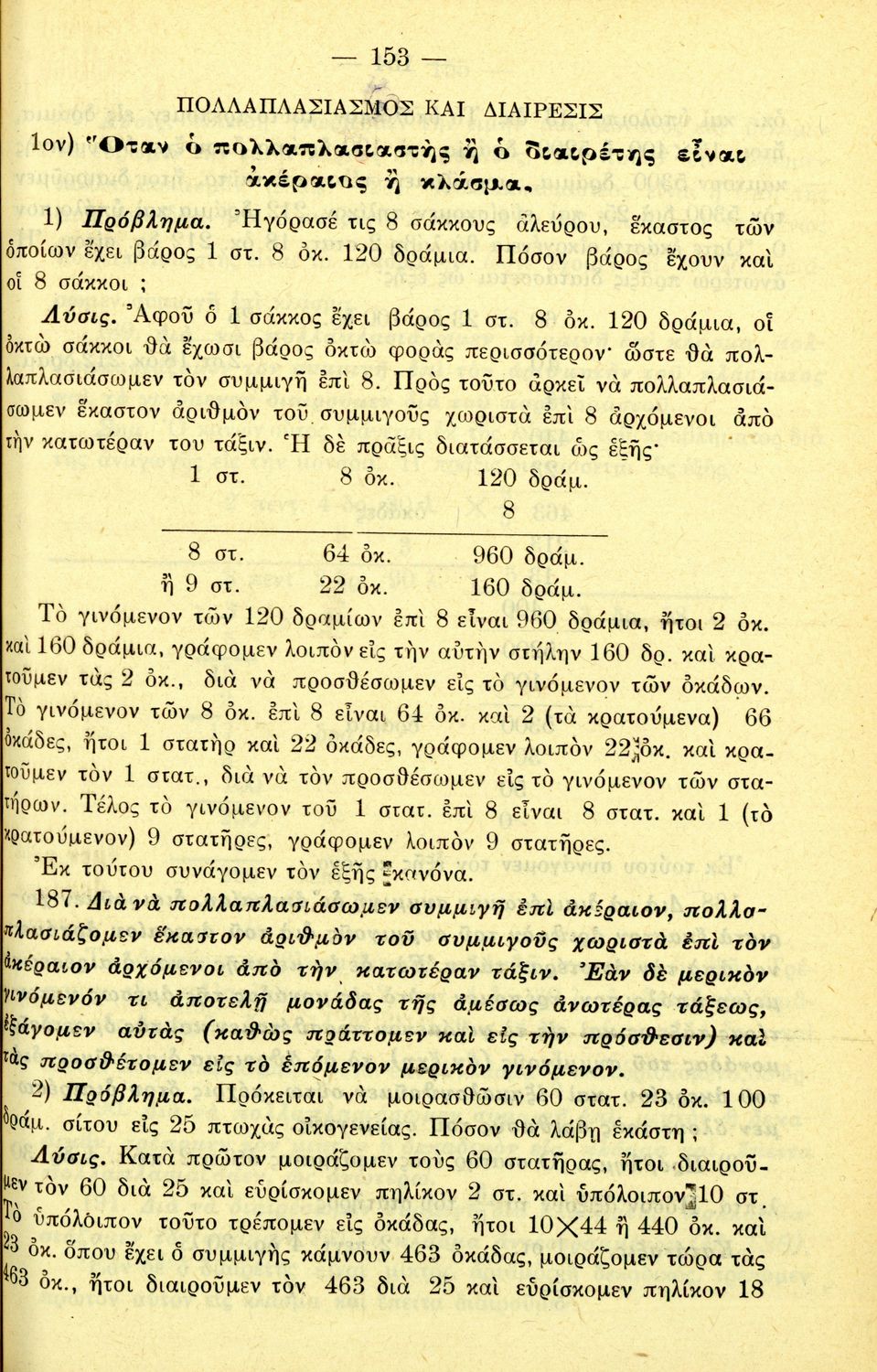 Σχολικό εγχειρίδιο Αριθμητικής για τα Ελληνικά και Αστικά Σχολεία και τα Παρθεναγωγεία που εστιάζει στις αριθμητικές πράξεις, τα κλάσματα, τους δεκαδικούς και συμμιγείς αριθμούς, και τις δυνάμεις. Περιέχει και