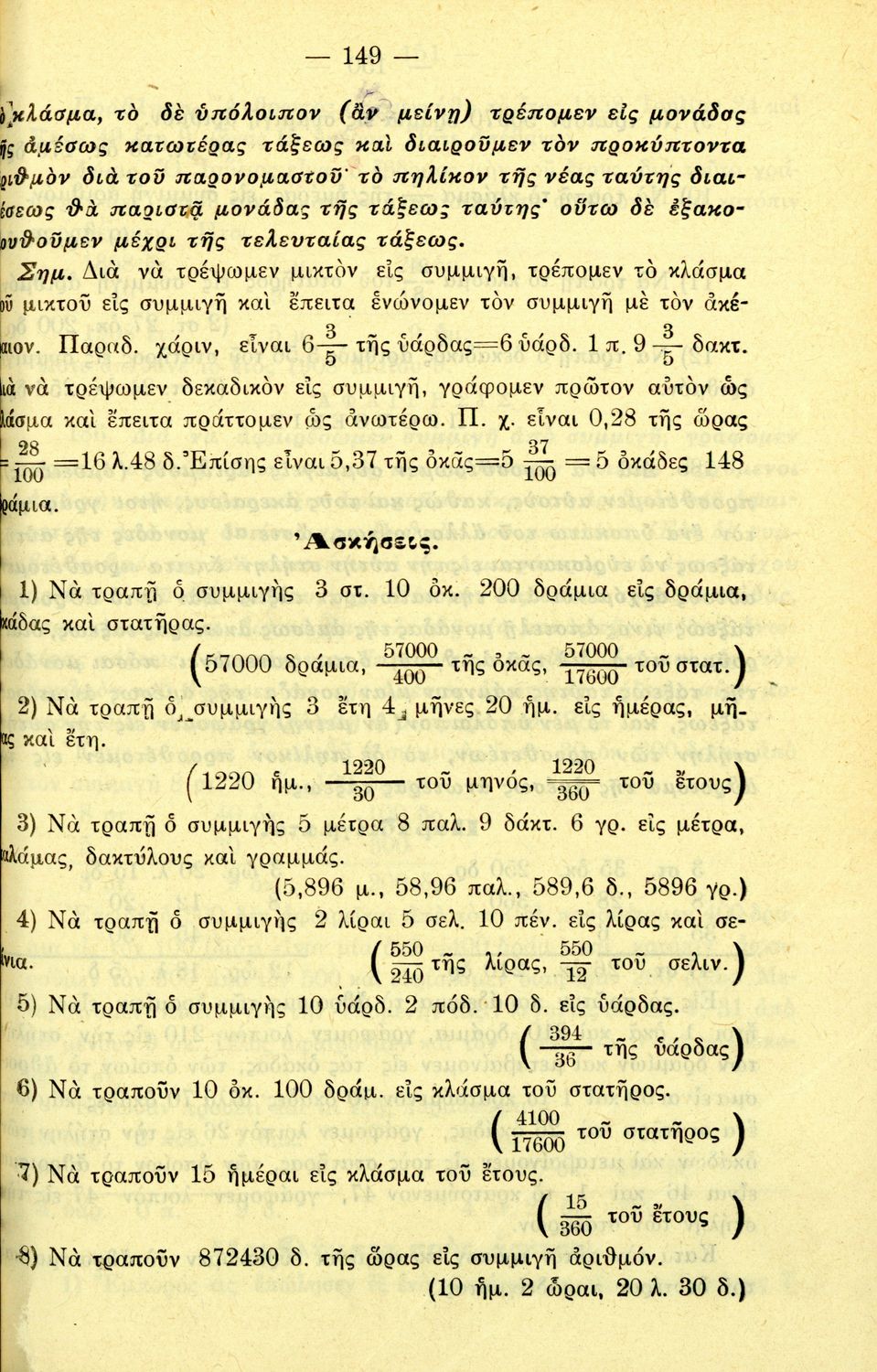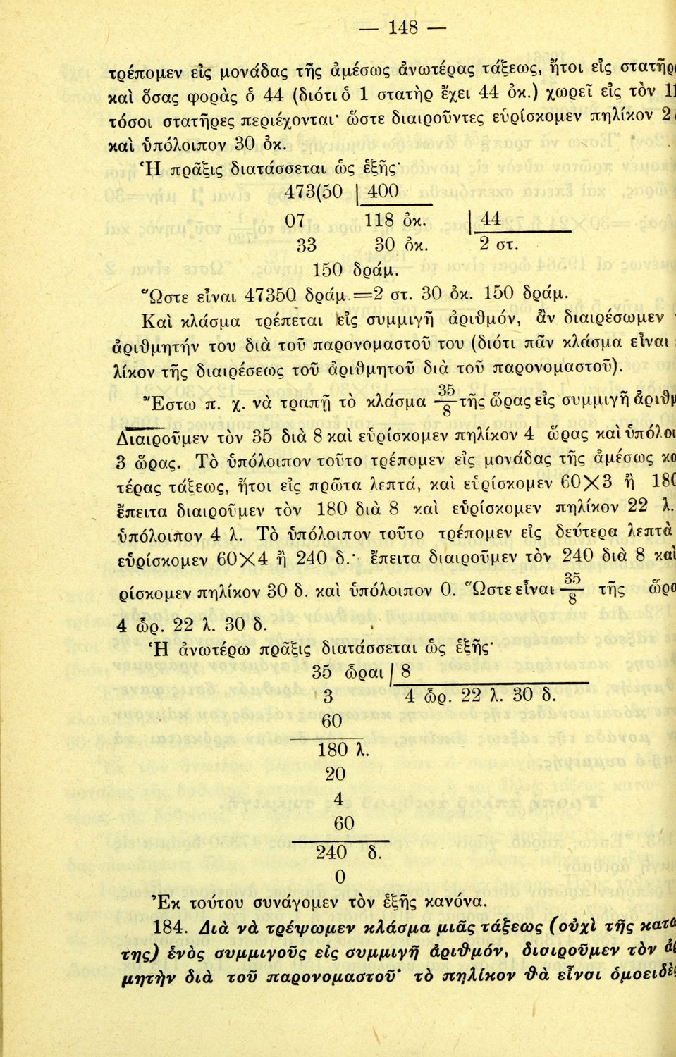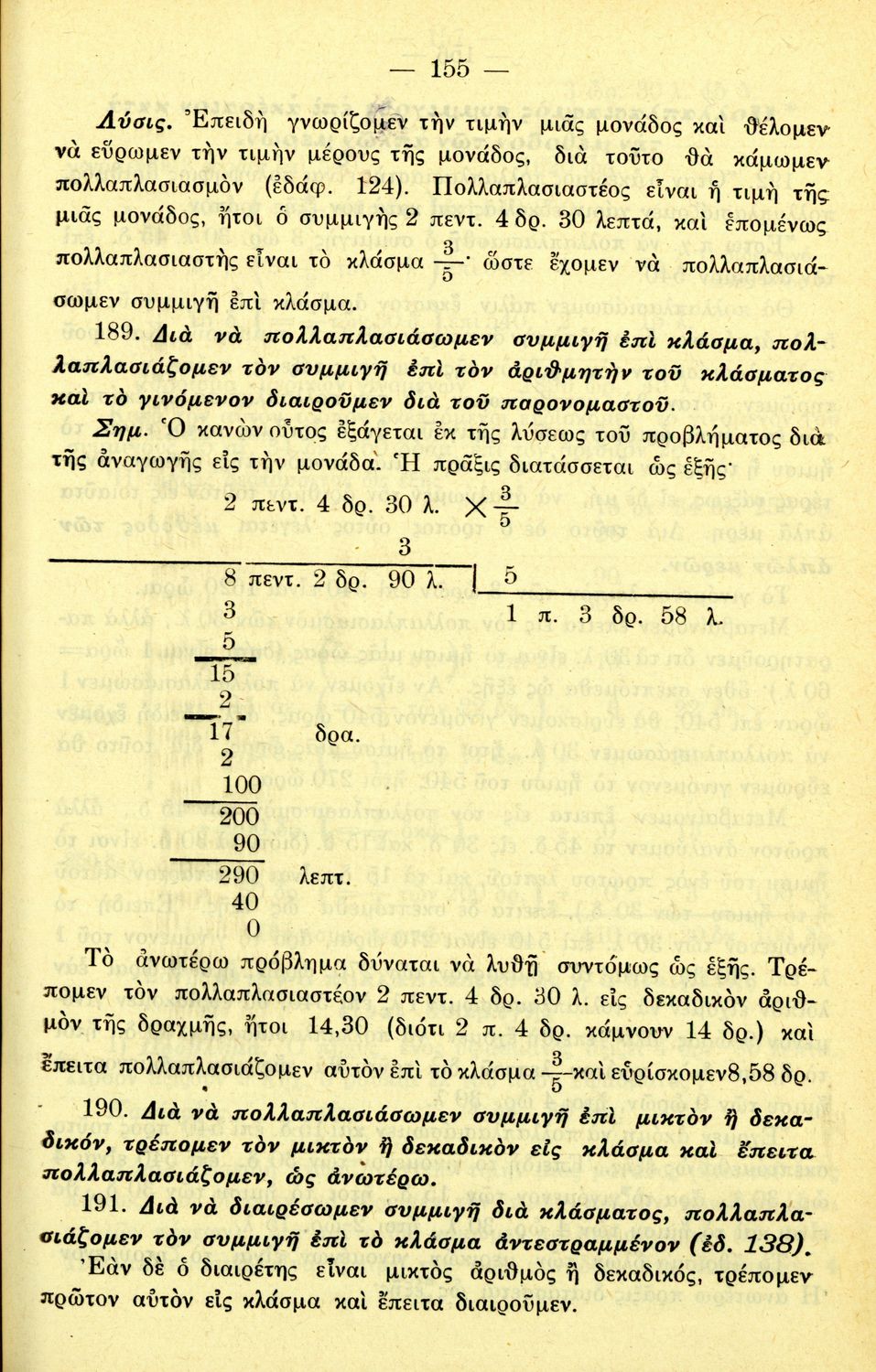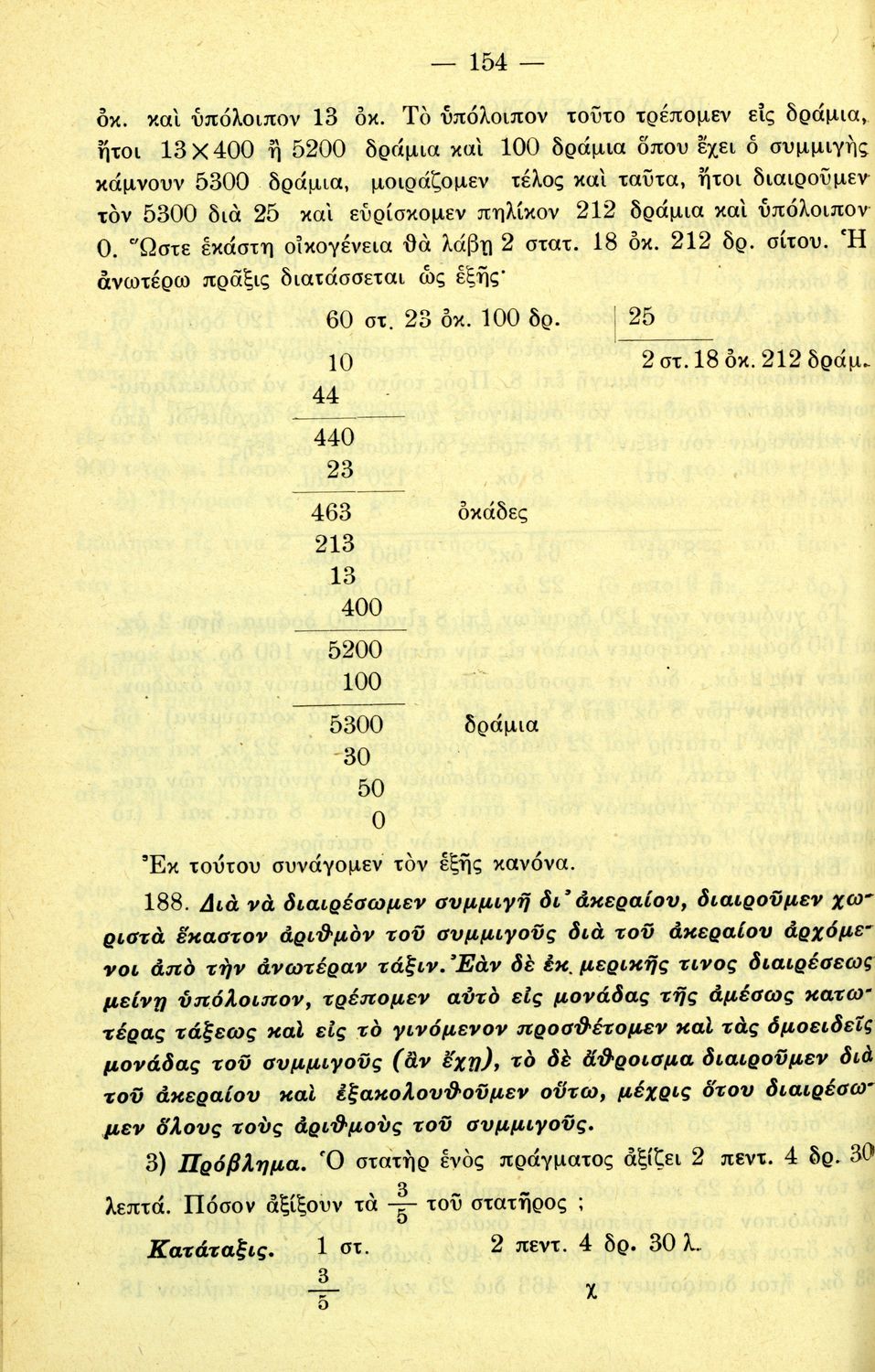 Σχολικό εγχειρίδιο Αριθμητικής για τα Ελληνικά και Αστικά Σχολεία και τα Παρθεναγωγεία που εστιάζει στις αριθμητικές πράξεις, τα κλάσματα, τους δεκαδικούς και συμμιγείς αριθμούς, τα ανάλογα ποσά και τις ...