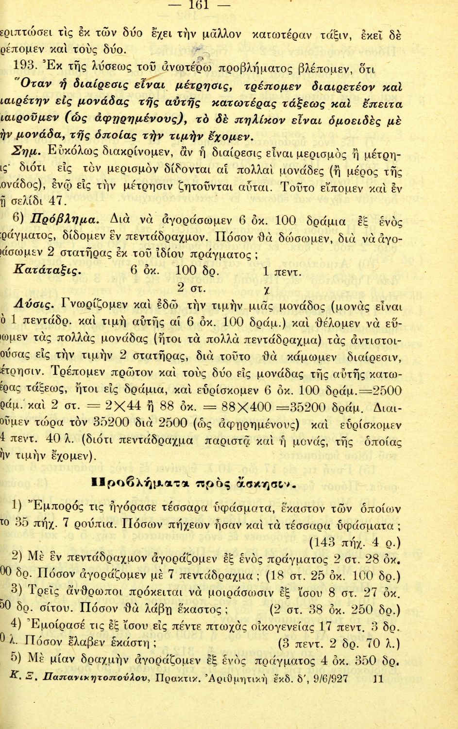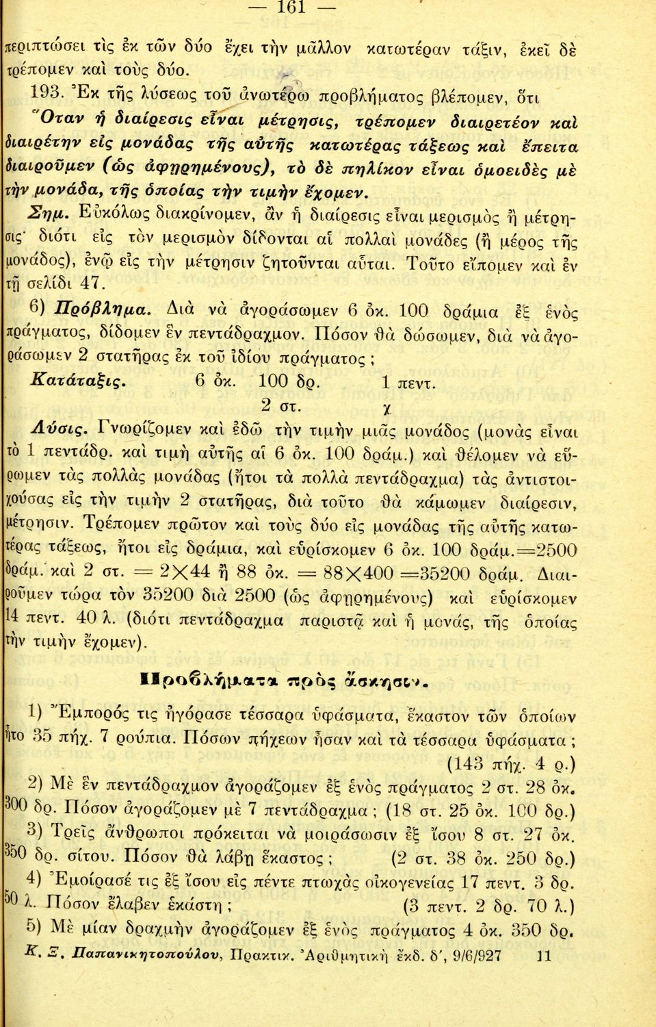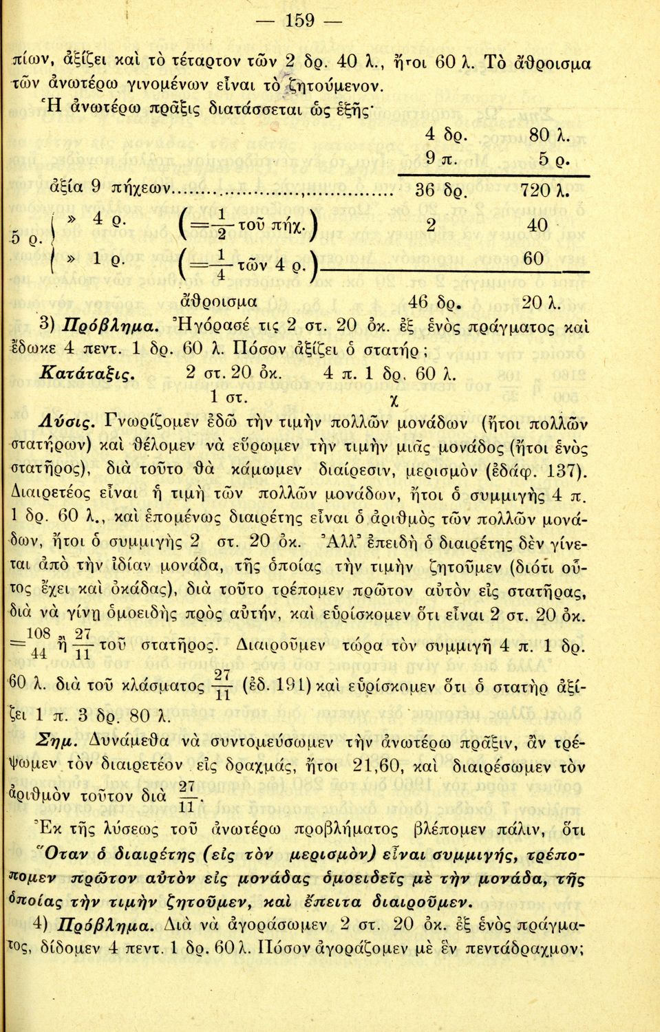 Σχολικό εγχειρίδιο Αριθμητικής για τα Ελληνικά και Αστικά Σχολεία και τα Παρθεναγωγεία που εστιάζει στις αριθμητικές πράξεις, τα κλάσματα, τους δεκαδικούς και συμμιγείς αριθμούς, και τις δυνάμεις. Περιέχει και