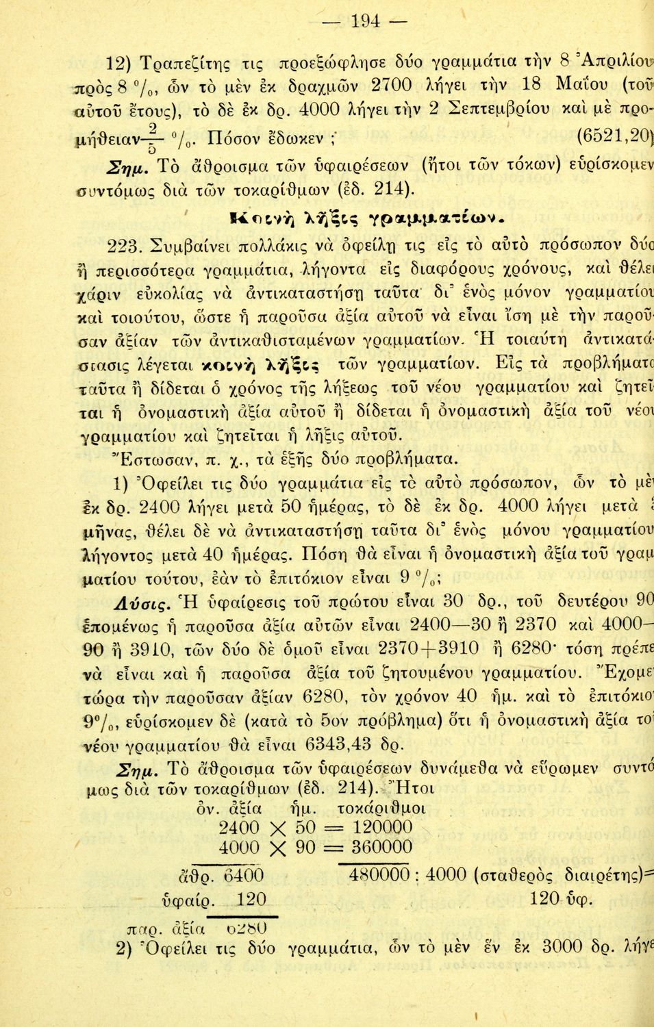 Σχολικό εγχειρίδιο Αριθμητικής για τα Ελληνικά και Αστικά Σχολεία και τα Παρθεναγωγεία που εστιάζει στις αριθμητικές πράξεις, τα κλάσματα, τους δεκαδικούς και συμμιγείς αριθμούς, και τις δυνάμεις. Περιέχει και στοιχεία λογιστικής.