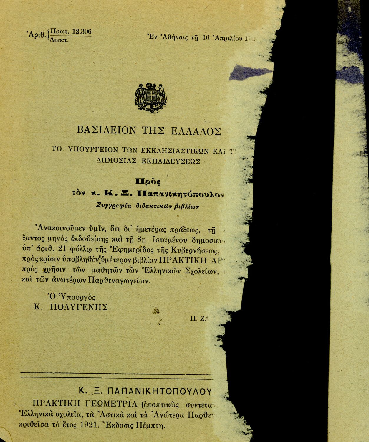 Υπουργική απόφαση / Σύμβαση: 12306/16-4-1927