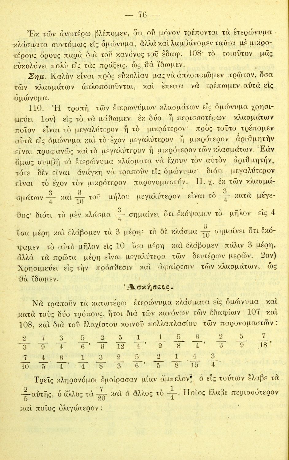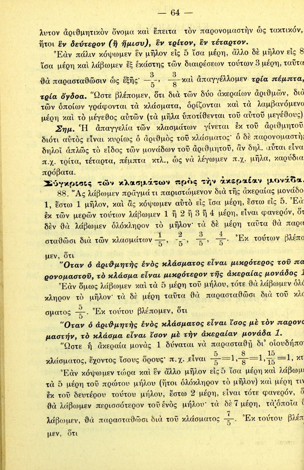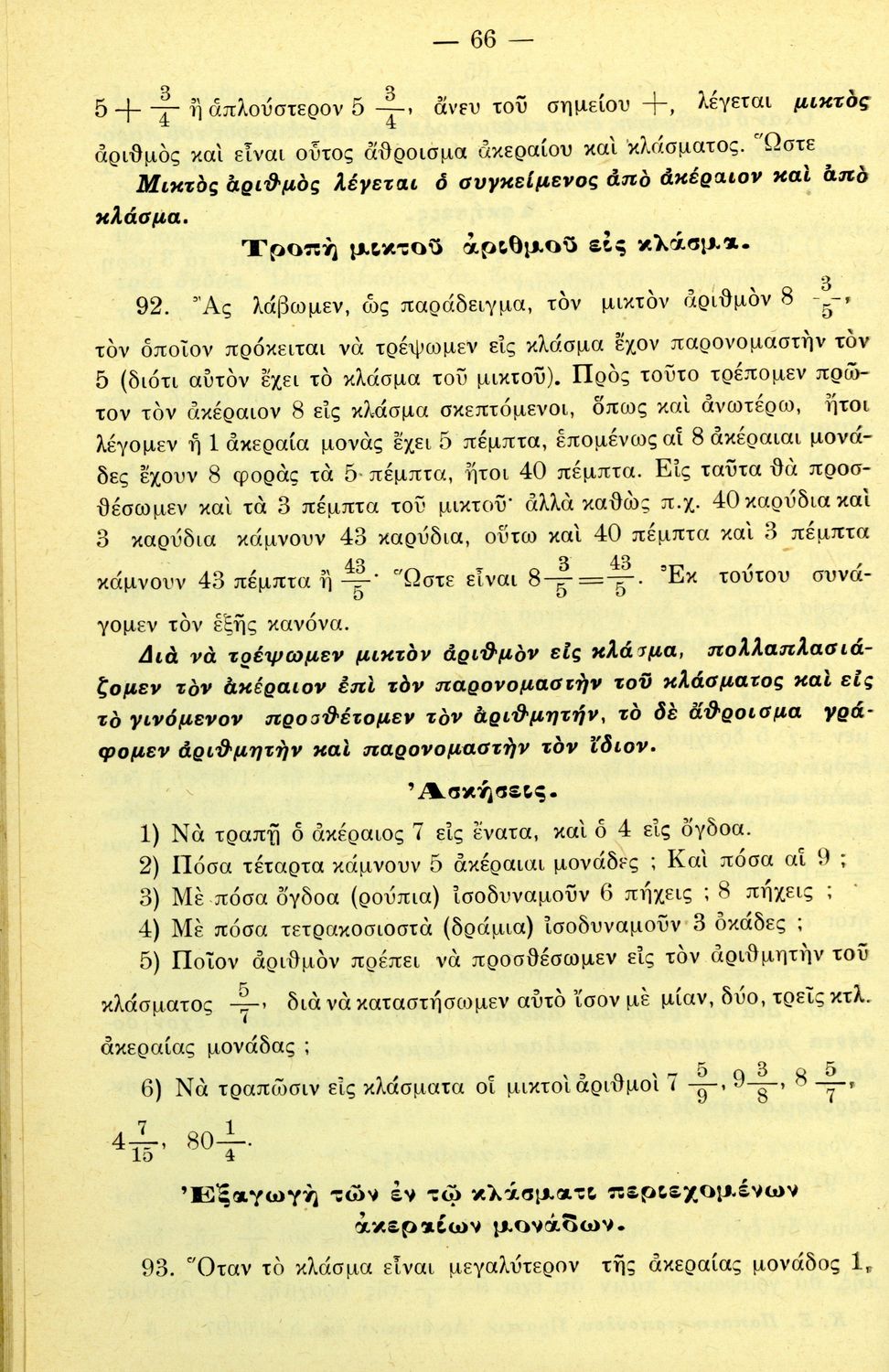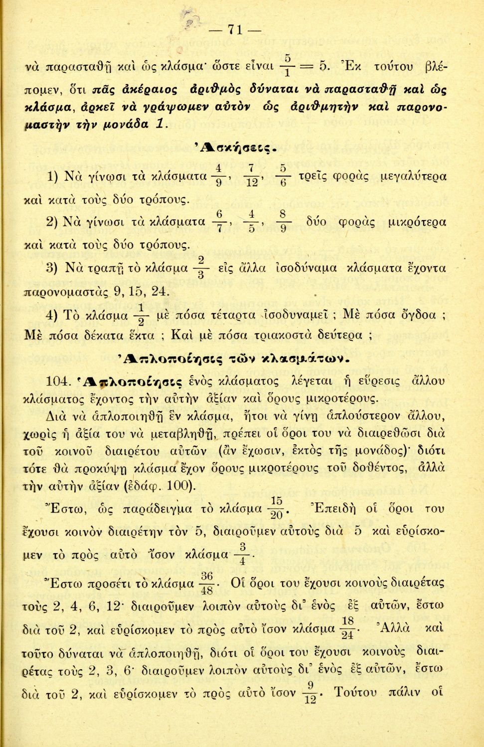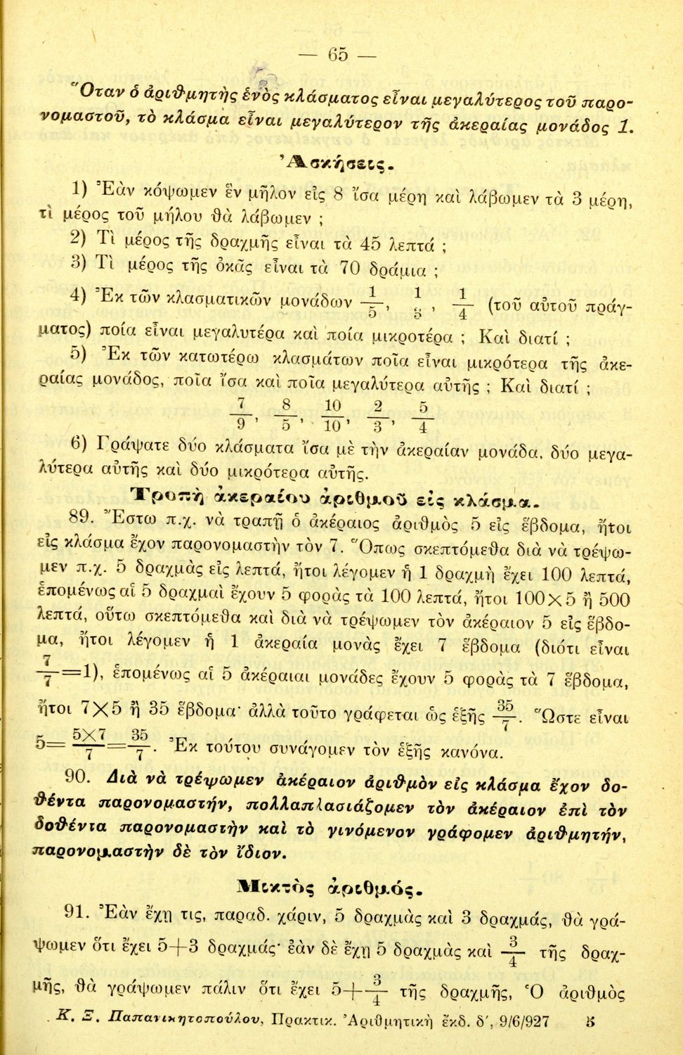 Σχολικό εγχειρίδιο Αριθμητικής για τα Ελληνικά και Αστικά Σχολεία και τα Παρθεναγωγεία που εστιάζει στις αριθμητικές πράξεις, τα κλάσματα, τους δεκαδικούς και συμμιγείς αριθμούς, και τις δυνάμεις. Περιέχει και