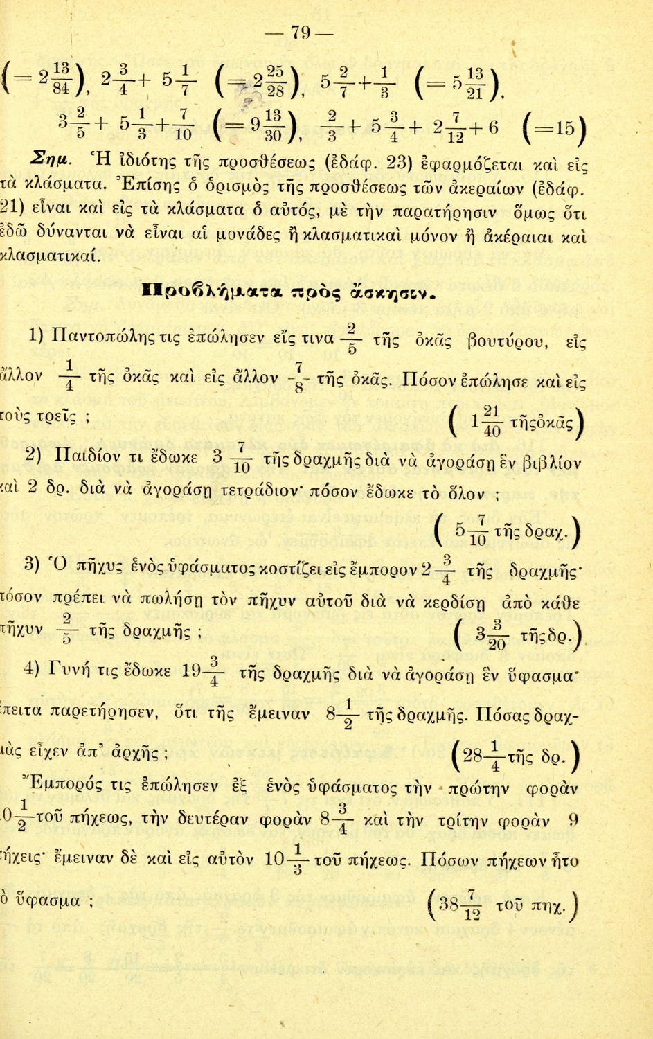 Σχολικό εγχειρίδιο Αριθμητικής για τα Ελληνικά και Αστικά Σχολεία και τα Παρθεναγωγεία που εστιάζει στις αριθμητικές πράξεις, τα κλάσματα, τους δεκαδικούς και συμμιγείς αριθμούς, και τις δυνάμεις. Περιέχει και