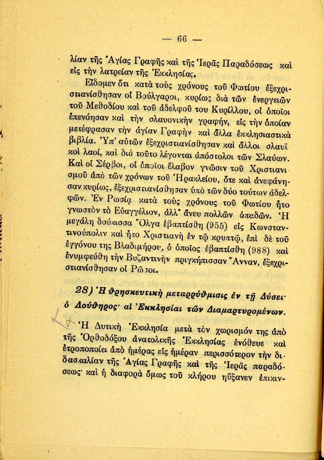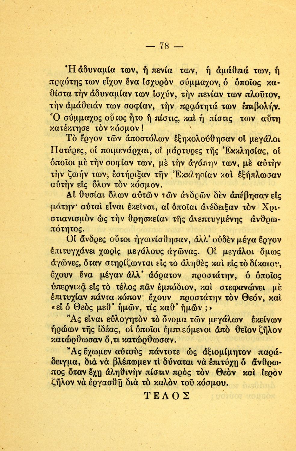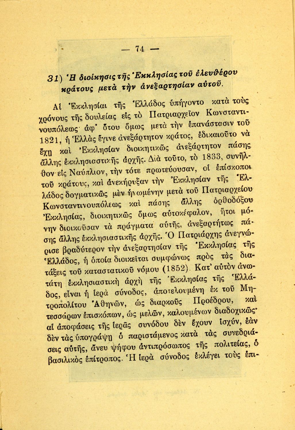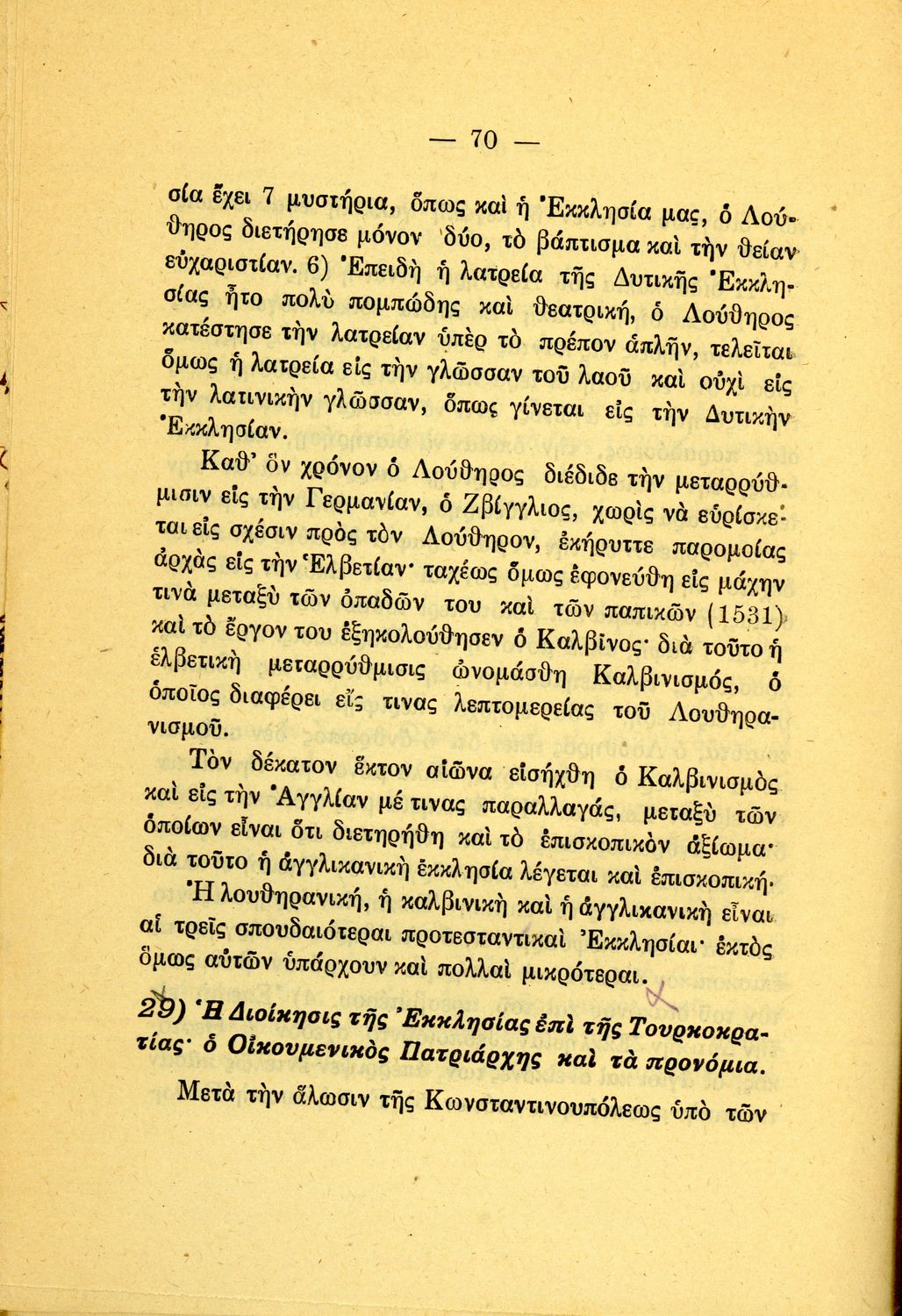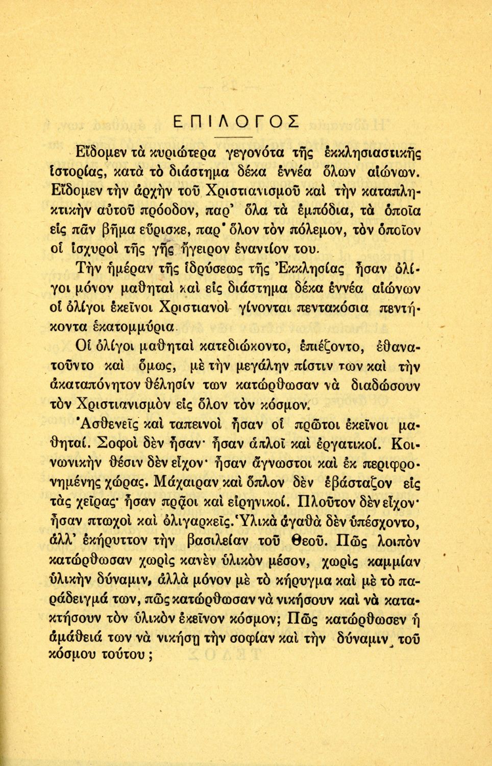 Σχολικό εγχειρίδιο Θρησκευτικών. Το βιβλίο συντάχθηκε σύμφωνα με το πρόγραμμα της 1ης Σεπτεμβρίου 1921 του Υπουργείου Εκκλησιαστικών και Δημόσιας Εκπαιδεύσεως. Περιέχει την ιστορία της Εκκλησίας από την ίδρυσή