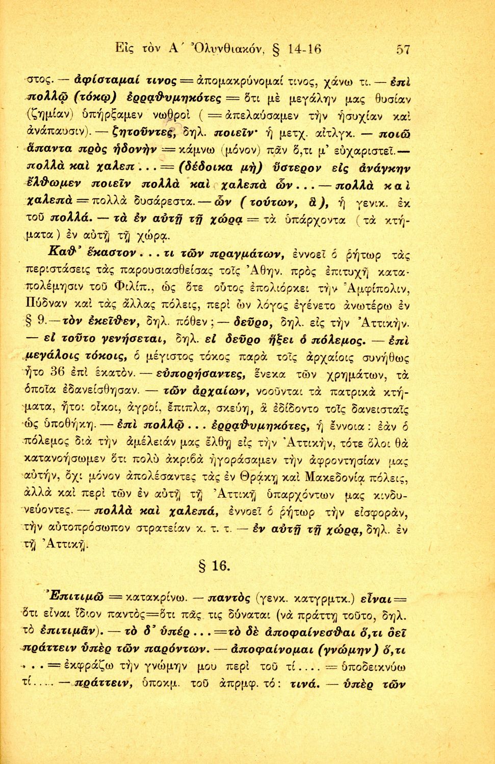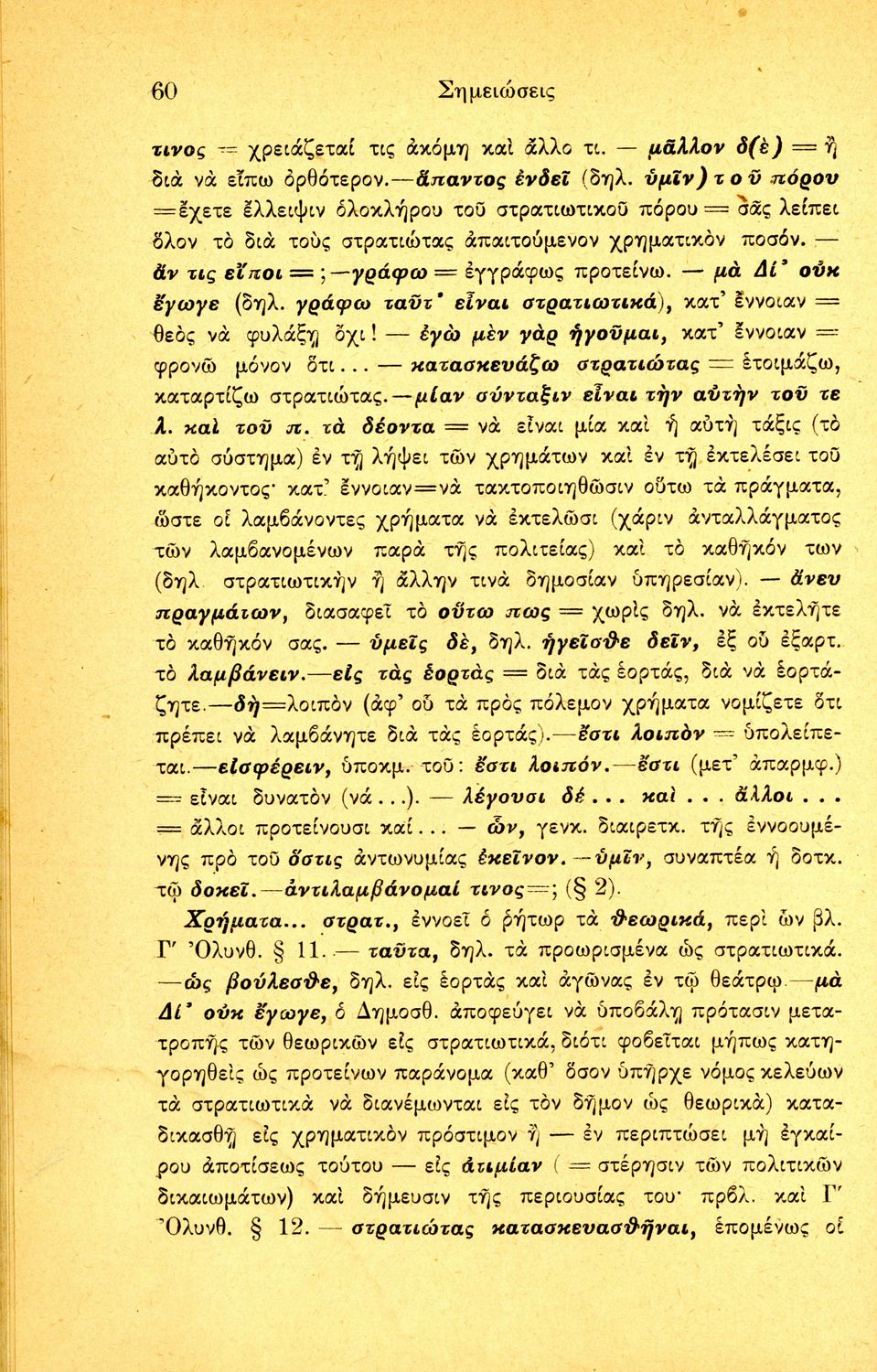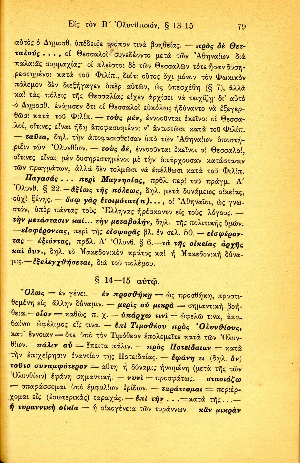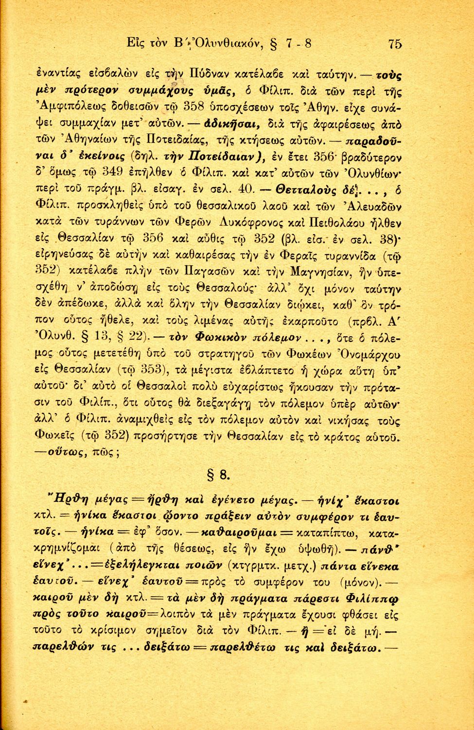 Σχολικό εγχειρίδιο Αρχαίων Ελληνικών Β΄ Γυμνασίου που περιλαμβάνει τους τρεις Ολυνθιακούς Λόγους του Δημοσθένη, ερμηνευτικά και πραγματολογικά σχόλια, λεξιλόγιο, γραμματικές παρατηρήσεις, εισαγωγικά σχόλια για τον ζωή και το έργο του Δημοσθένη, την πλοκή και την υπόθεση των Λόγων, και πίνακα των κυριοτέρων ονομάτων και ορισμών.