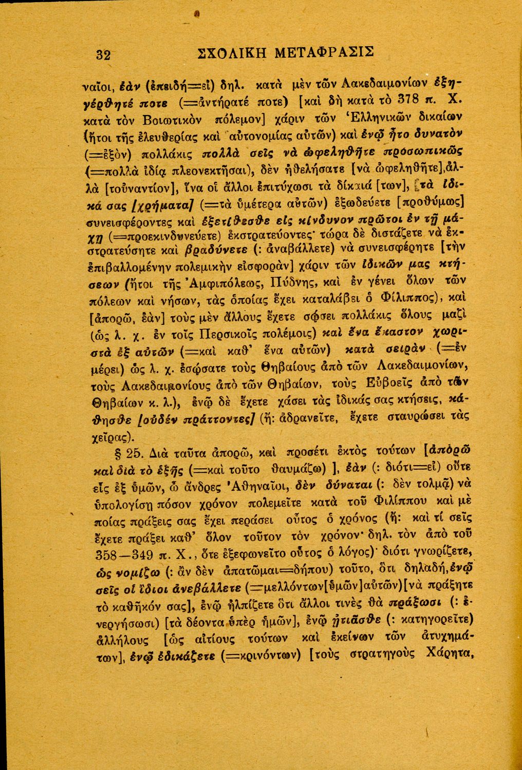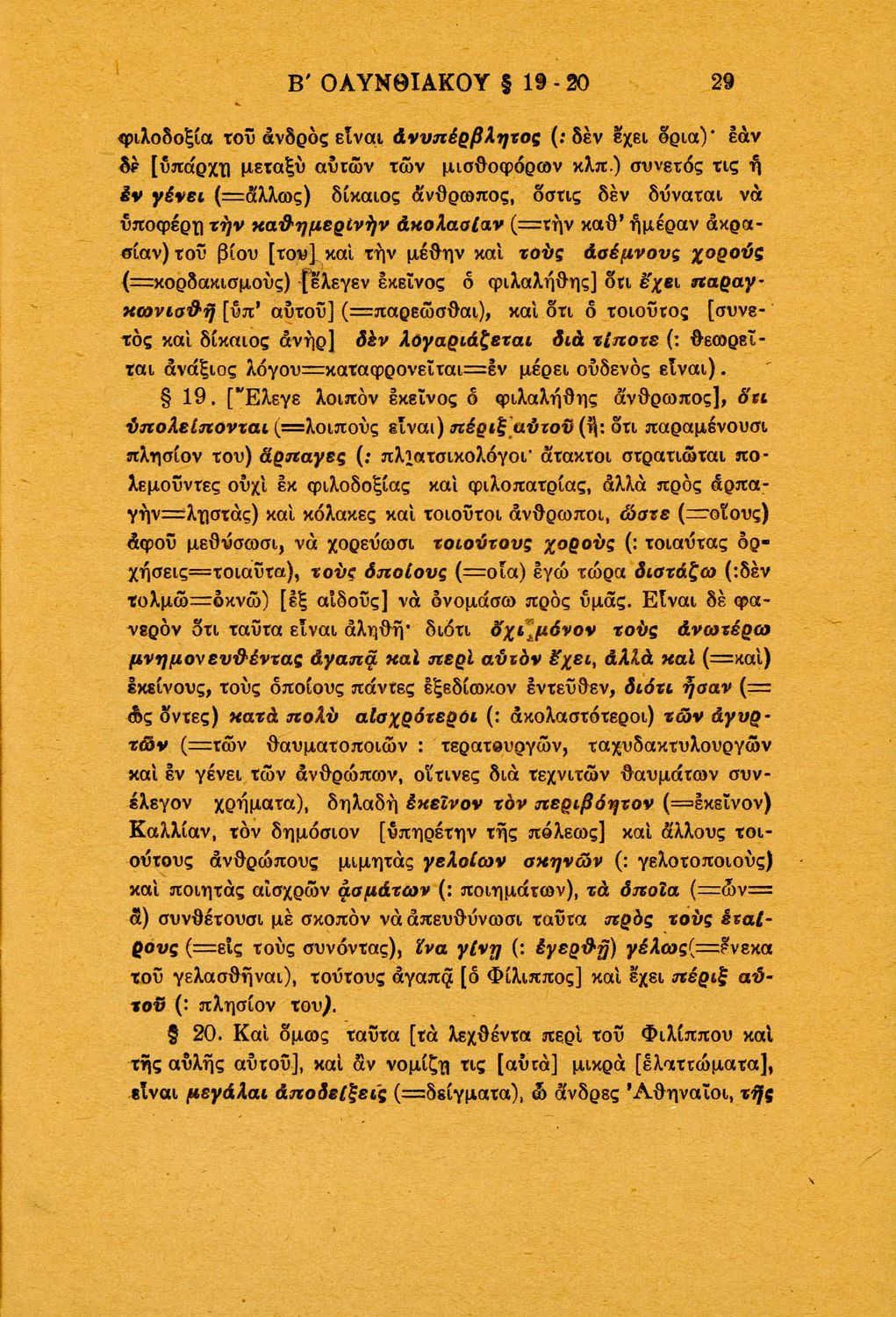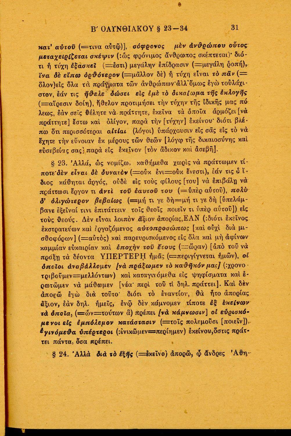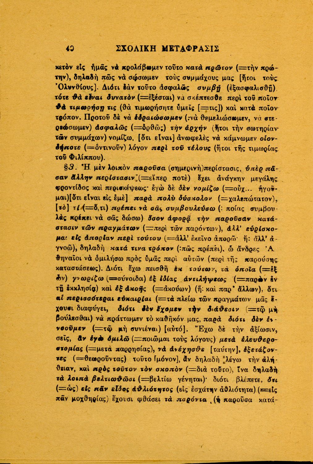 Μαθητικό βοήθημα Αρχαίων Ελληνικών Β΄ Τετραταξίου Γυμνασίου που περιλαμβάνει μετάφραση των Ολυνθιακών Α΄, Β΄ και Γ΄ του Δημοσθένη.