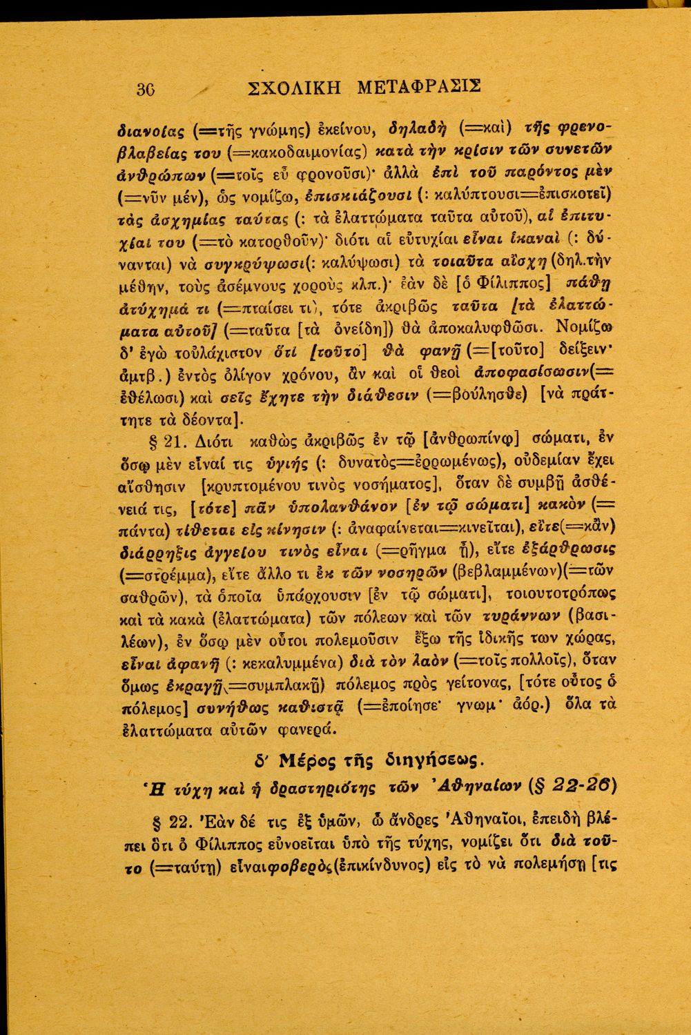 Κωδικός αναγνώρισης: 20-05358 Τίτλος: Σχολική μετάφρασις Ολυνθιακών Δημοσθένους προς χρήσιν των μαθητών της Β΄ τάξεως των Τετραταξίων Γυμνασίων και της αντιστοίχου τάξεως των λοιπών σχολείων της Μέσης Εκπαιδεύσεως Συγγραφέας: Ιωάννης Θ. Ρώσσης (μετάφραση) Μέγεθος και υπόστρωμα: Μαθητικό βοήθημα, 21εκ., μαλακό εξώφυλλο, 56 σελίδες. |