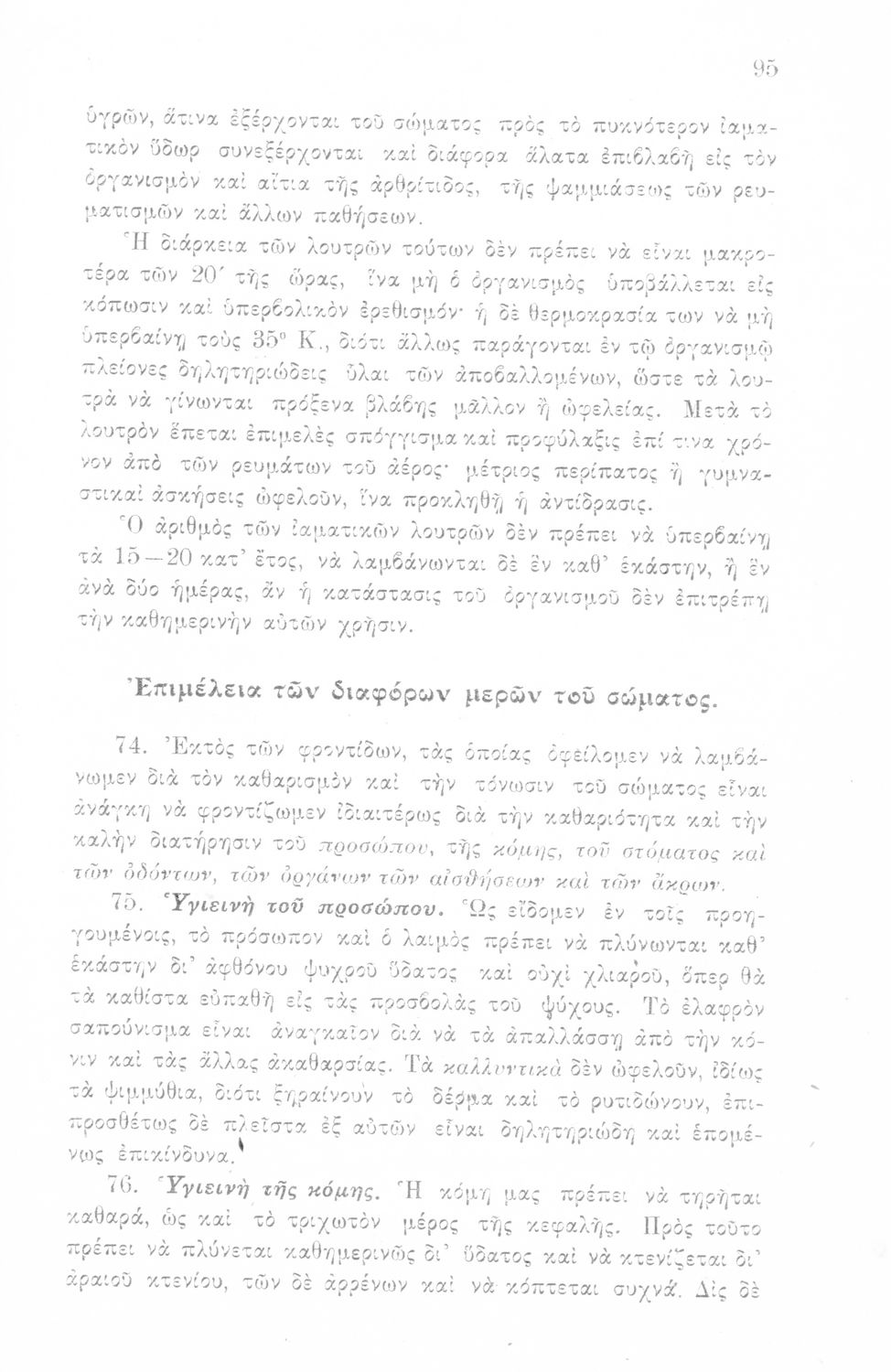 Βαθμίδα εκπαίδευσης: Δευτεροβάθμια Τάξη: Δ' Γυμνασίου Μάθημα: Υγιεινή Γλώσσα: Καθαρεύουσα Παρουσίαση περιεχομένου: Σχολικό εγχειρίδιο Υγιεινής Δ΄ Γυμνασίου που περιλαμβάνει ζητήματα όπως η διατροφή, τα λοιμώδη νοσήματα, οι βιολογικές ανάγκες του ανθρώπινου οργανισμού και η παροχή των πρώτων βοηθειών. |