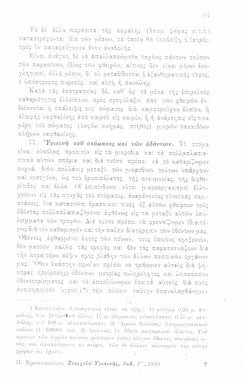 Κωδικός αναγνώρισης: 20-05365 Τίτλος: Στοιχεία υγιεινής εγκεκριμένα προς χρήσιν των μαθητών της Δ΄ τάξεως των Γυμνασίων και των αντιστοίχων τάξεων των λοιπών σχολείων της Μέσης Εκπαίδευσης Συγγραφέας: Παν. Χρ. Χριστόπουλος Μέγεθος και υπόστρωμα: Σχολικό εγχειρίδιο, 19εκ., σκληρό εξώφυλλο, 120 σελίδες. Σκίτσα (ασπρόμαυρα). |