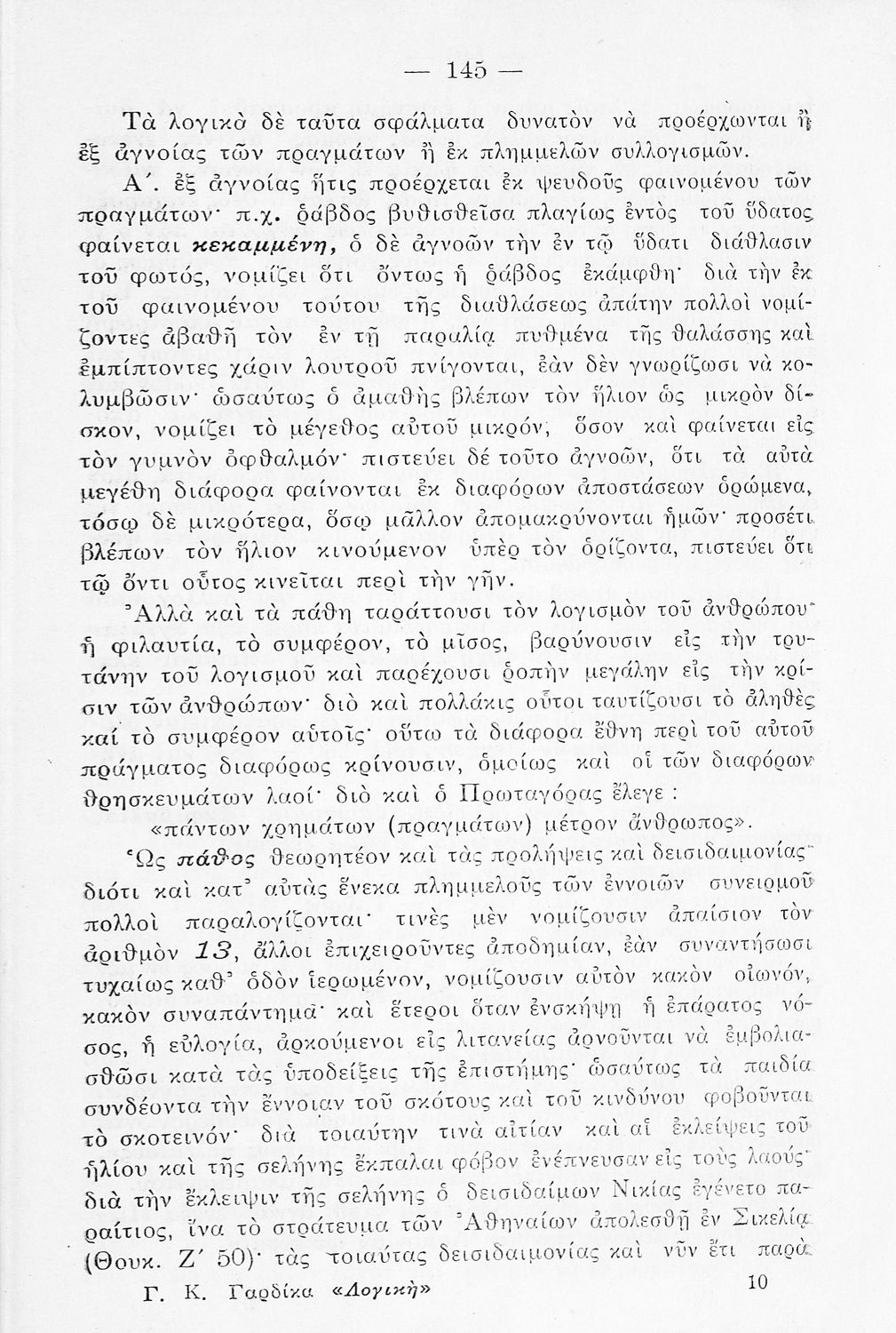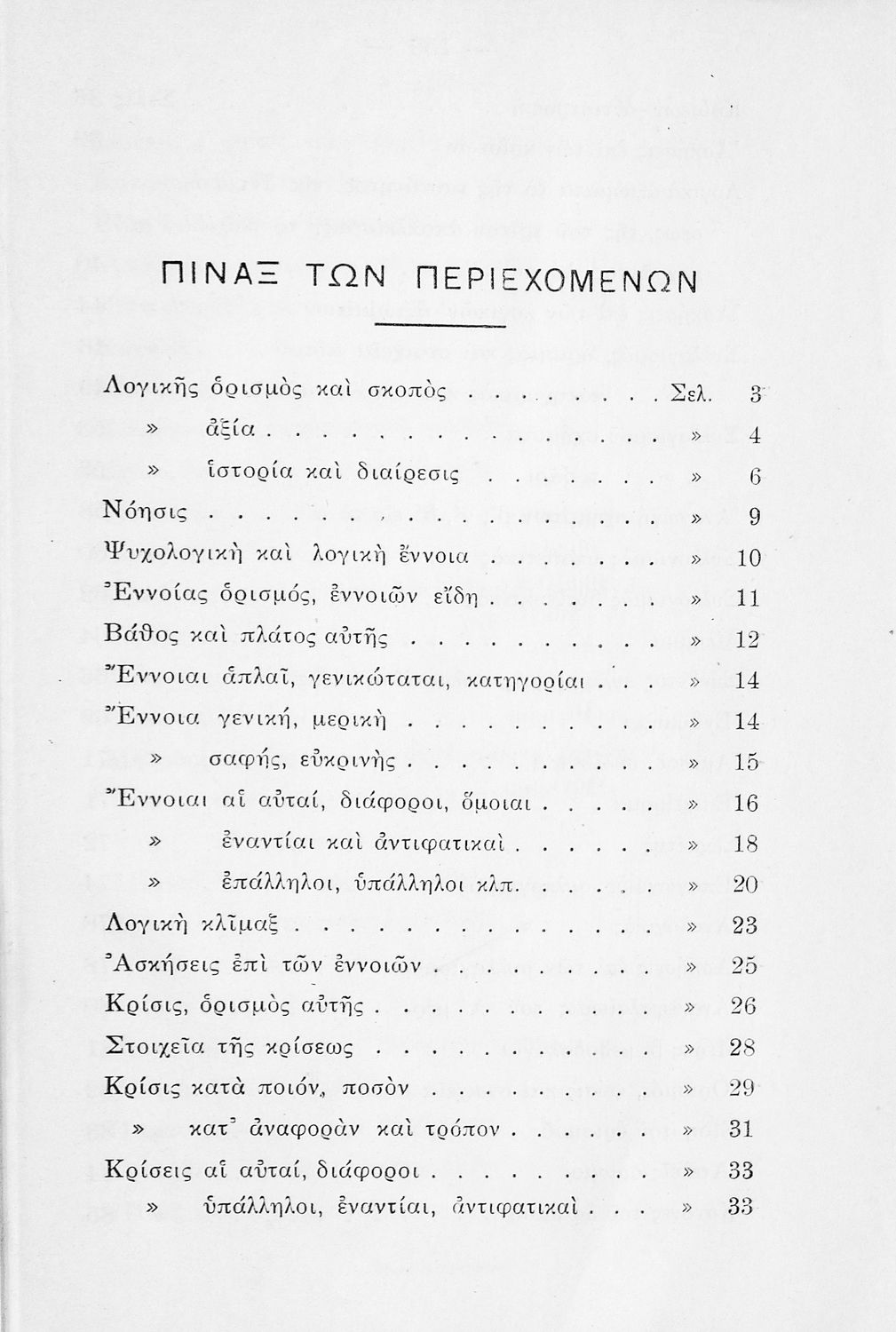Σχολικό εγχειρίδιο Λογικής Γυμνασίου που περιέχει στοιχεία τυπικής λογικής και μεθοδολογία των επιστημών. Ο συγγραφέας ήταν καθηγητής των Ελληνικών Γραμμάτων στο Εθνικό Πανεπιστήμιο και γυμνασιάρχης στο Αρσάκειο.