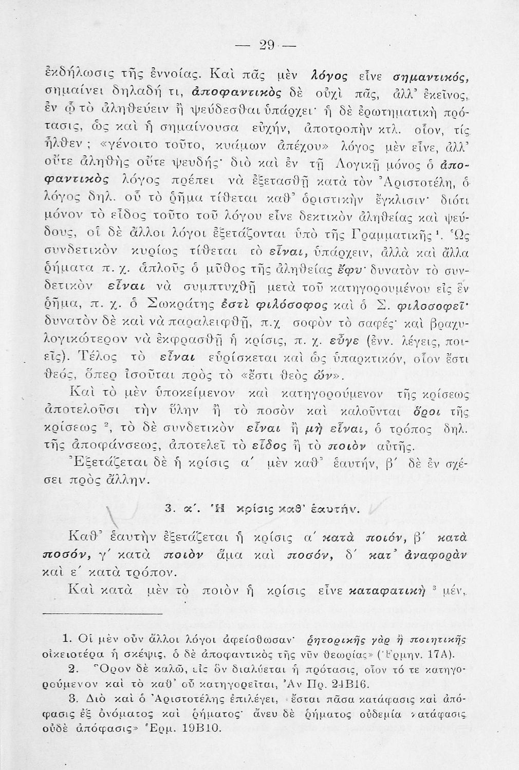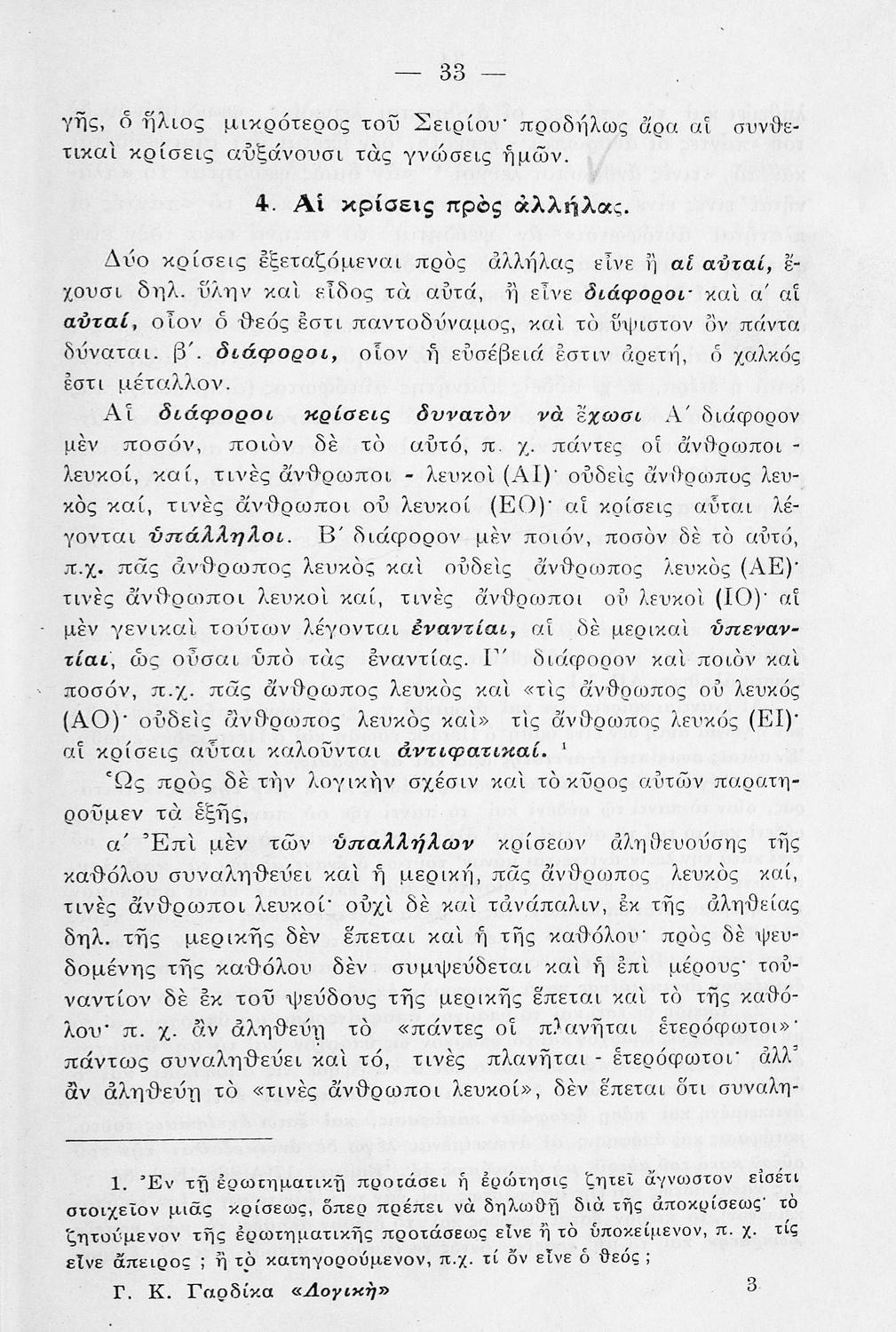Σχολικό εγχειρίδιο Λογικής Γυμνασίου που περιέχει στοιχεία τυπικής λογικής και μεθοδολογία των επιστημών. Ο συγγραφέας ήταν καθηγητής των Ελληνικών Γραμμάτων στο Εθνικό Πανεπιστήμιο και γυμνασιάρχης στο Αρσάκειο.