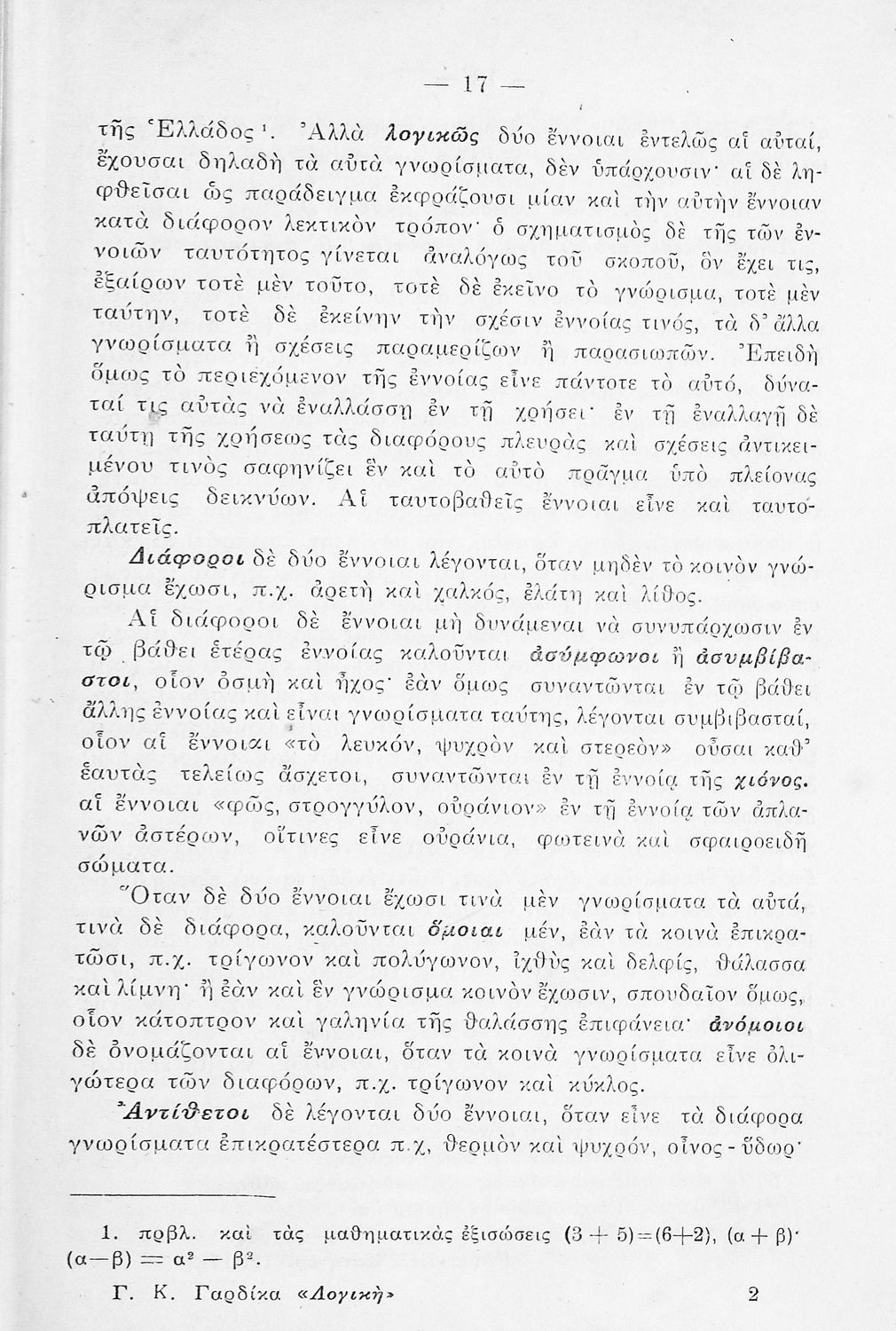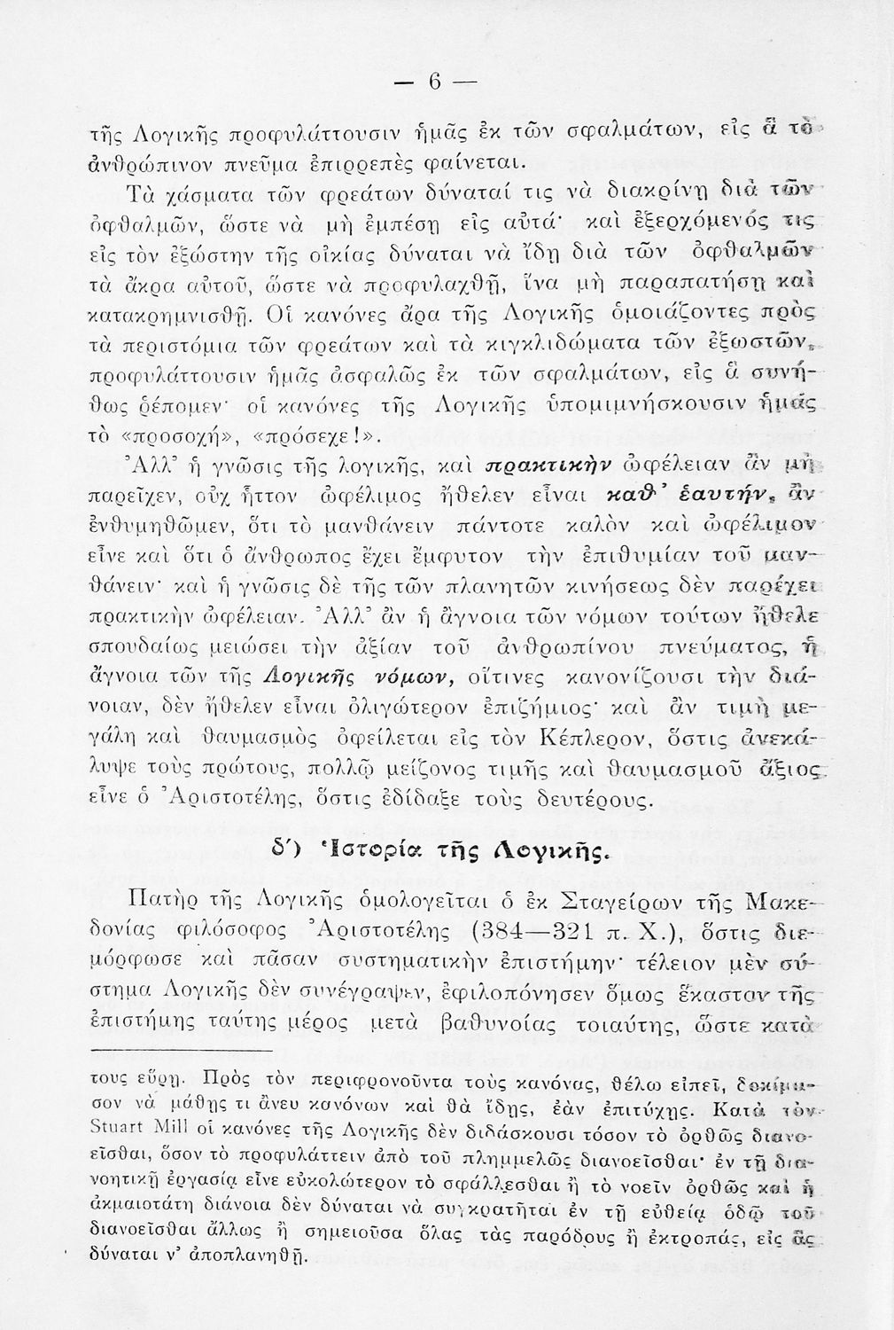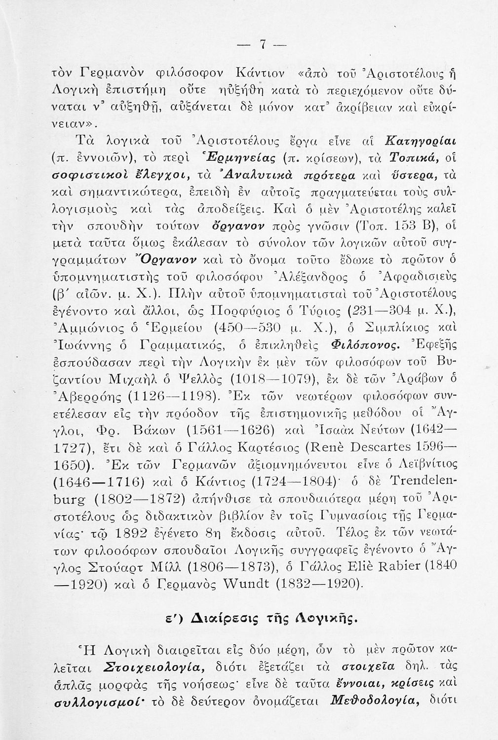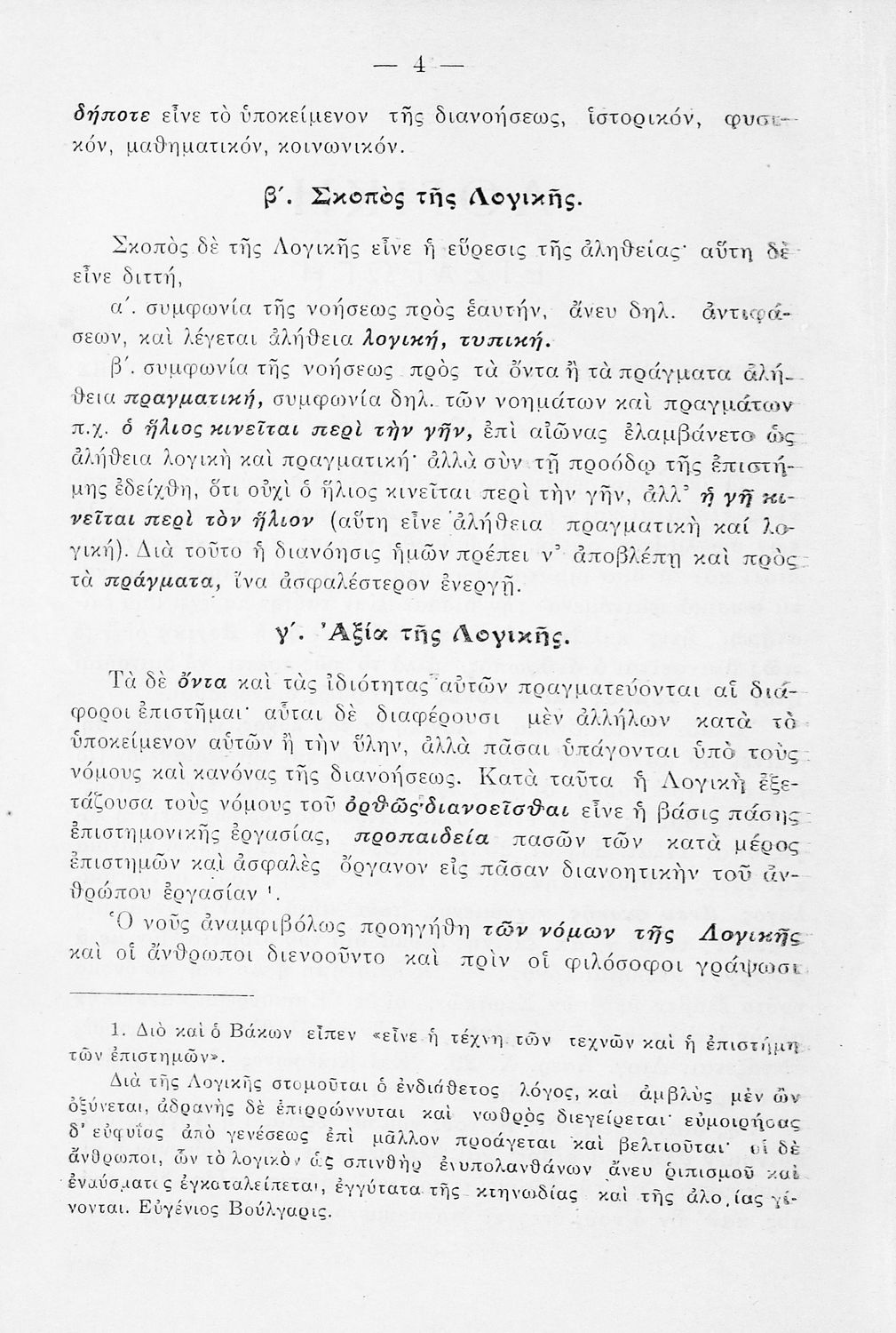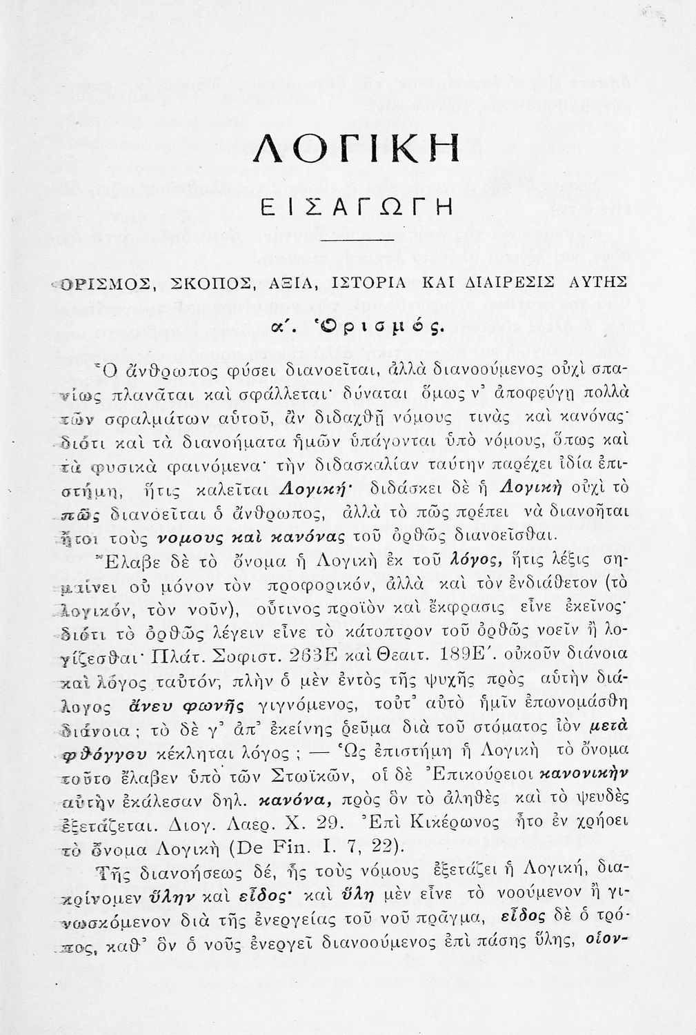 Σχολικό εγχειρίδιο Λογικής Γυμνασίου που περιέχει στοιχεία τυπικής λογικής και μεθοδολογία των επιστημών. Ο συγγραφέας ήταν καθηγητής των Ελληνικών Γραμμάτων στο Εθνικό Πανεπιστήμιο και γυμνασιάρχης στο Αρσάκειο.