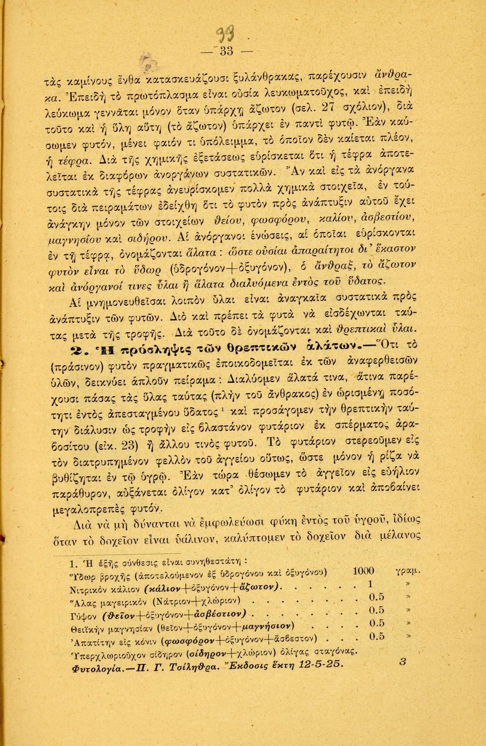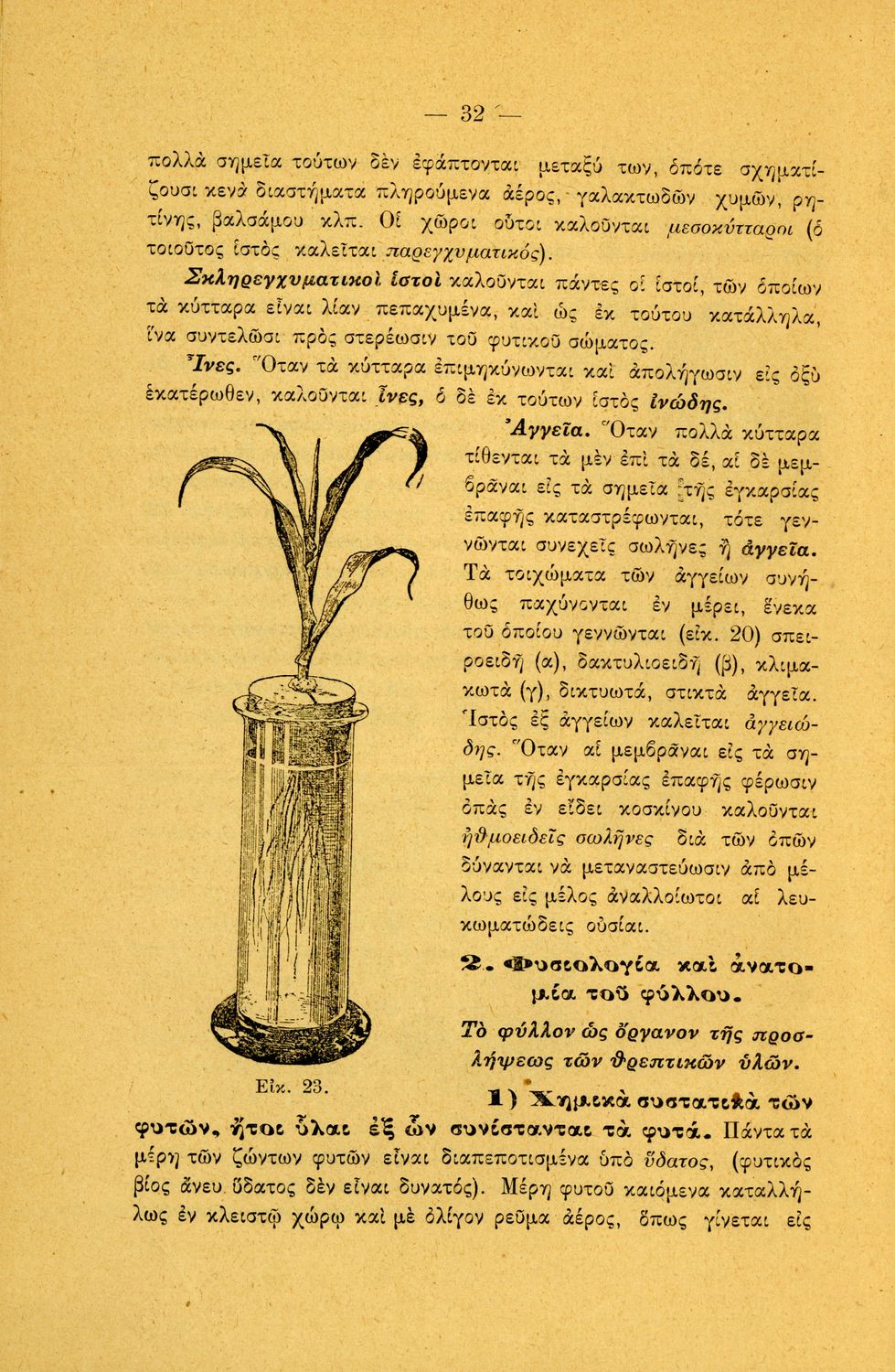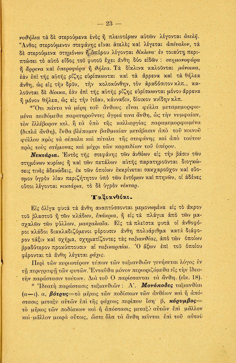 Σχολικό εγχειρίδιο Φυτολογίας για τα Γυμνάσια, τα Διδασκαλεία και τα Παρθεναγωγεία που παρουσιάζει τα διάφορα φυτά ανάλογα με την συνομοταξία στην οποία ανήκουν.
