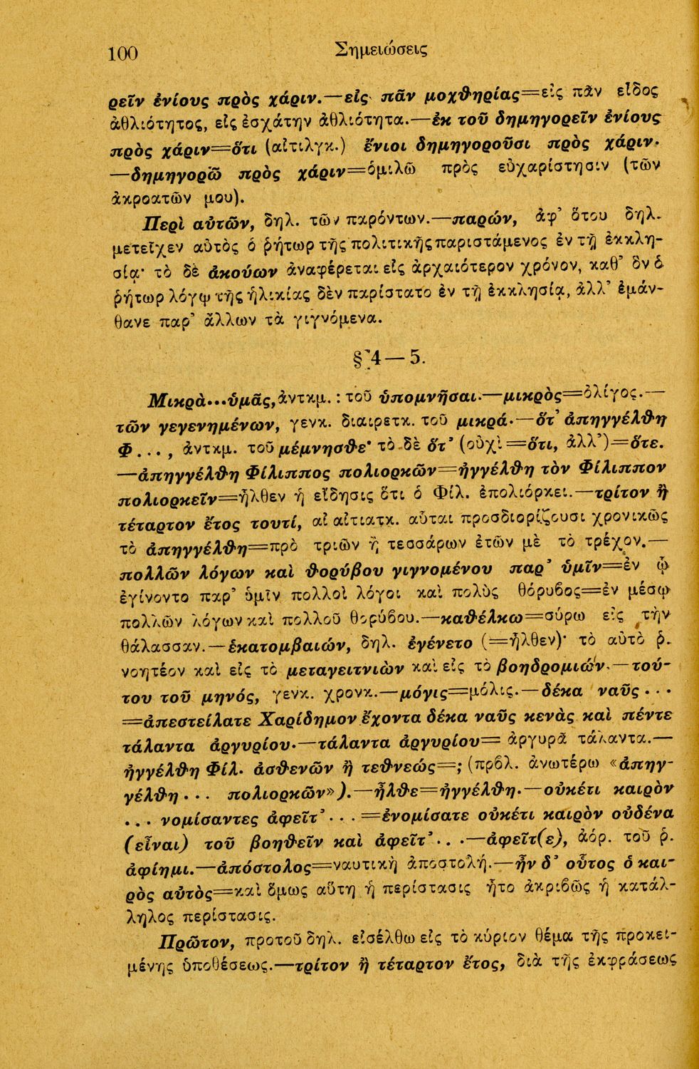 Σχολικό εγχειρίδιο Αρχαίων Ελληνικών Δ΄ και Ε΄ Γυμνασίου που περιέχει τους Ολυνθιακούς Α΄ και Β΄ και τους Φιλιππικούς Α΄ και Β΄ του Δημοσθένη, βιογραφικό σημείωμα, λεξιλόγιο και ερμηνευτικά και ετυμολογικά ...