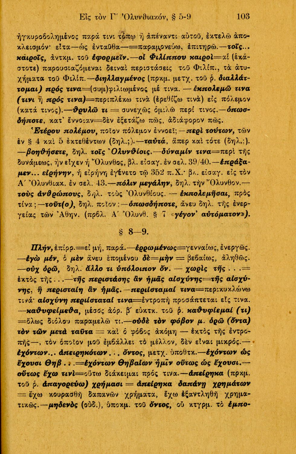 Σχολικό εγχειρίδιο Αρχαίων Ελληνικών Β΄ Γυμνασίου που περιλαμβάνει τους τρεις Ολυνθιακούς Λόγους του Δημοσθένη, εισαγωγικά σχόλια στη ζωή και το έργο του, την υπόθεση των Λόγων, και ερμηνευτικά, πραγματολογικά και λεξιλογικά σχόλια.