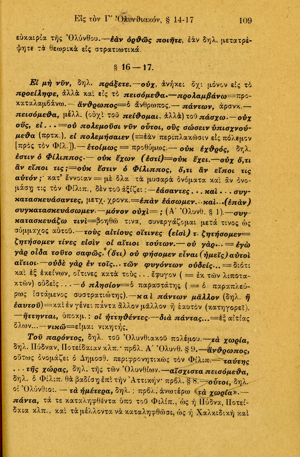 Σχολικό εγχειρίδιο Αρχαίων Ελληνικών Β΄ Γυμνασίου που περιλαμβάνει τους τρεις Ολυνθιακούς Λόγους του Δημοσθένη, εισαγωγικά σχόλια στη ζωή και το έργο του, την υπόθεση των Λόγων, και ερμηνευτικά, πραγματολογικά