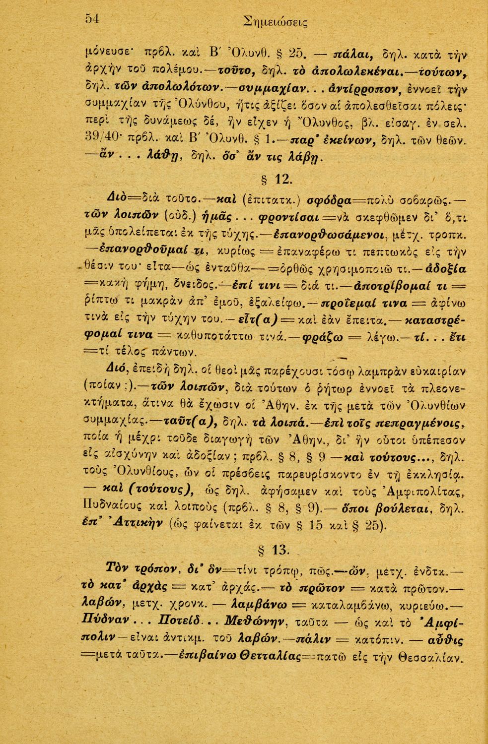 Σχολικό εγχειρίδιο Αρχαίων Ελληνικών Β΄ Γυμνασίου που περιλαμβάνει τους τρεις Ολυνθιακούς Λόγους του Δημοσθένη, εισαγωγικά σχόλια στη ζωή και το έργο του, την υπόθεση των Λόγων, και ερμηνευτικά, πραγματολογικά και λεξιλογικά σχόλια.