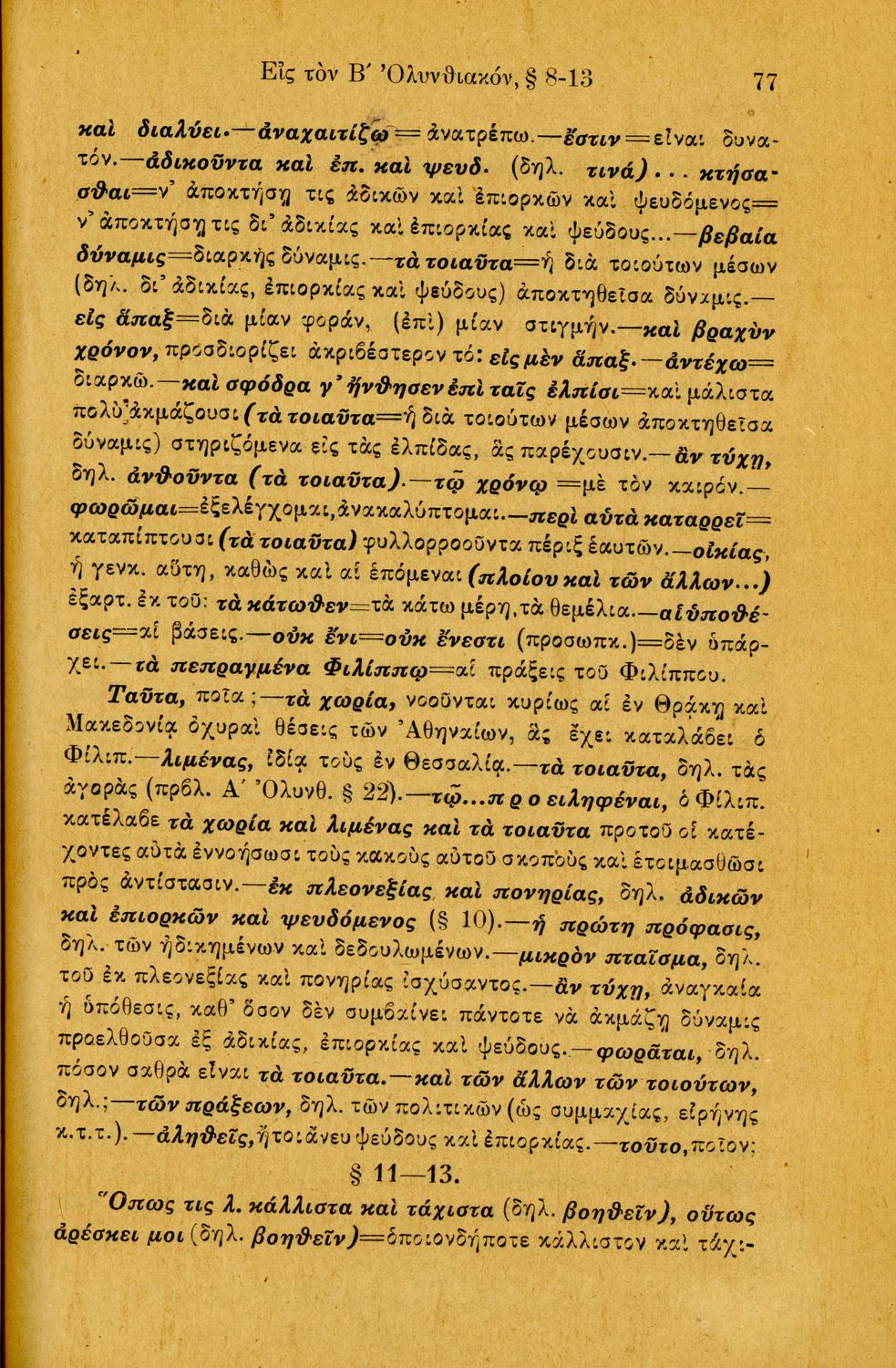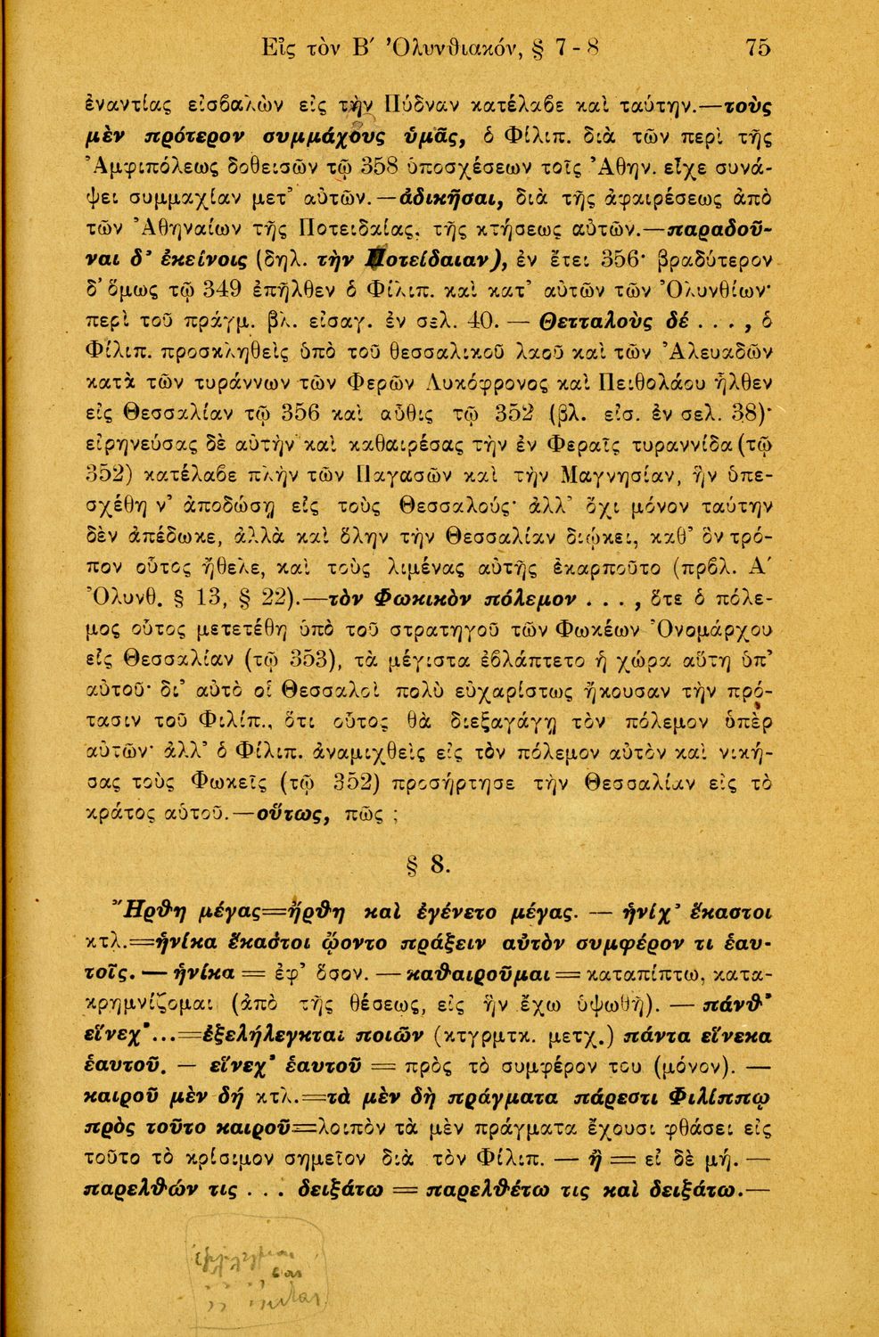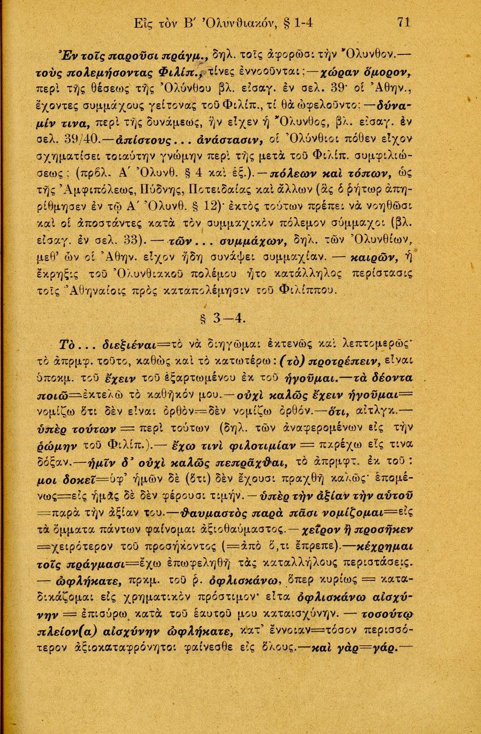 Σχολικό εγχειρίδιο Αρχαίων Ελληνικών Β΄ Γυμνασίου που περιλαμβάνει τους τρεις Ολυνθιακούς Λόγους του Δημοσθένη, εισαγωγικά σχόλια στη ζωή και το έργο του, την υπόθεση των Λόγων, και ερμηνευτικά, πραγματολογικά και λεξιλογικά σχόλια.