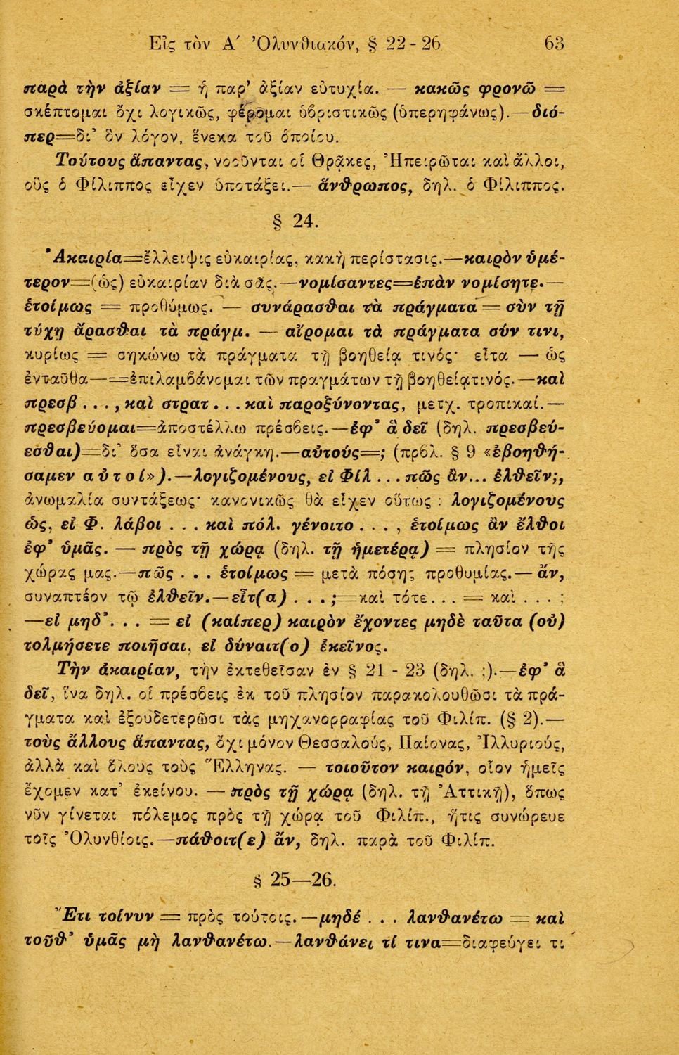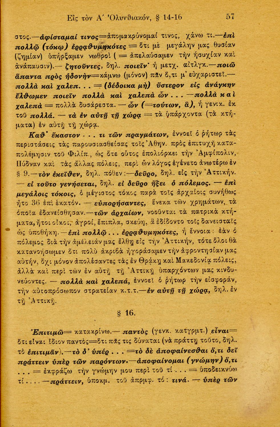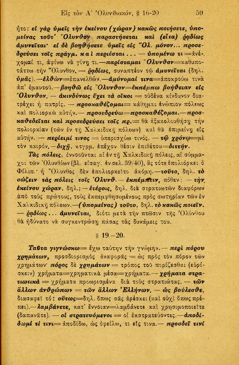 Σχολικό εγχειρίδιο Αρχαίων Ελληνικών Β΄ Γυμνασίου που περιλαμβάνει τους τρεις Ολυνθιακούς Λόγους του Δημοσθένη, εισαγωγικά σχόλια στη ζωή και το έργο του, την υπόθεση των Λόγων, και ερμηνευτικά, πραγματολογικά και λεξιλογικά σχόλια.