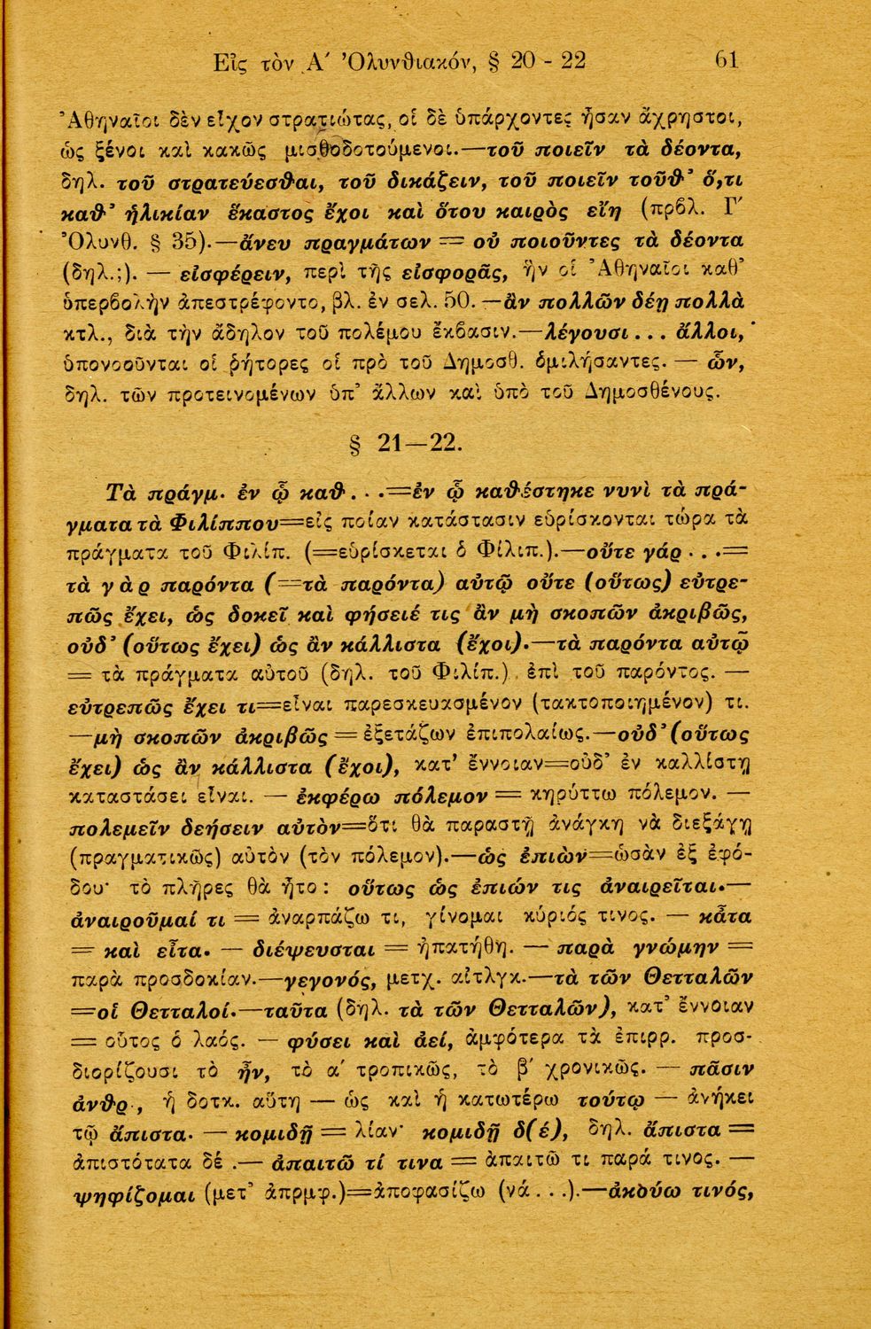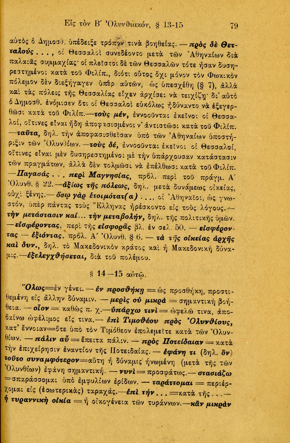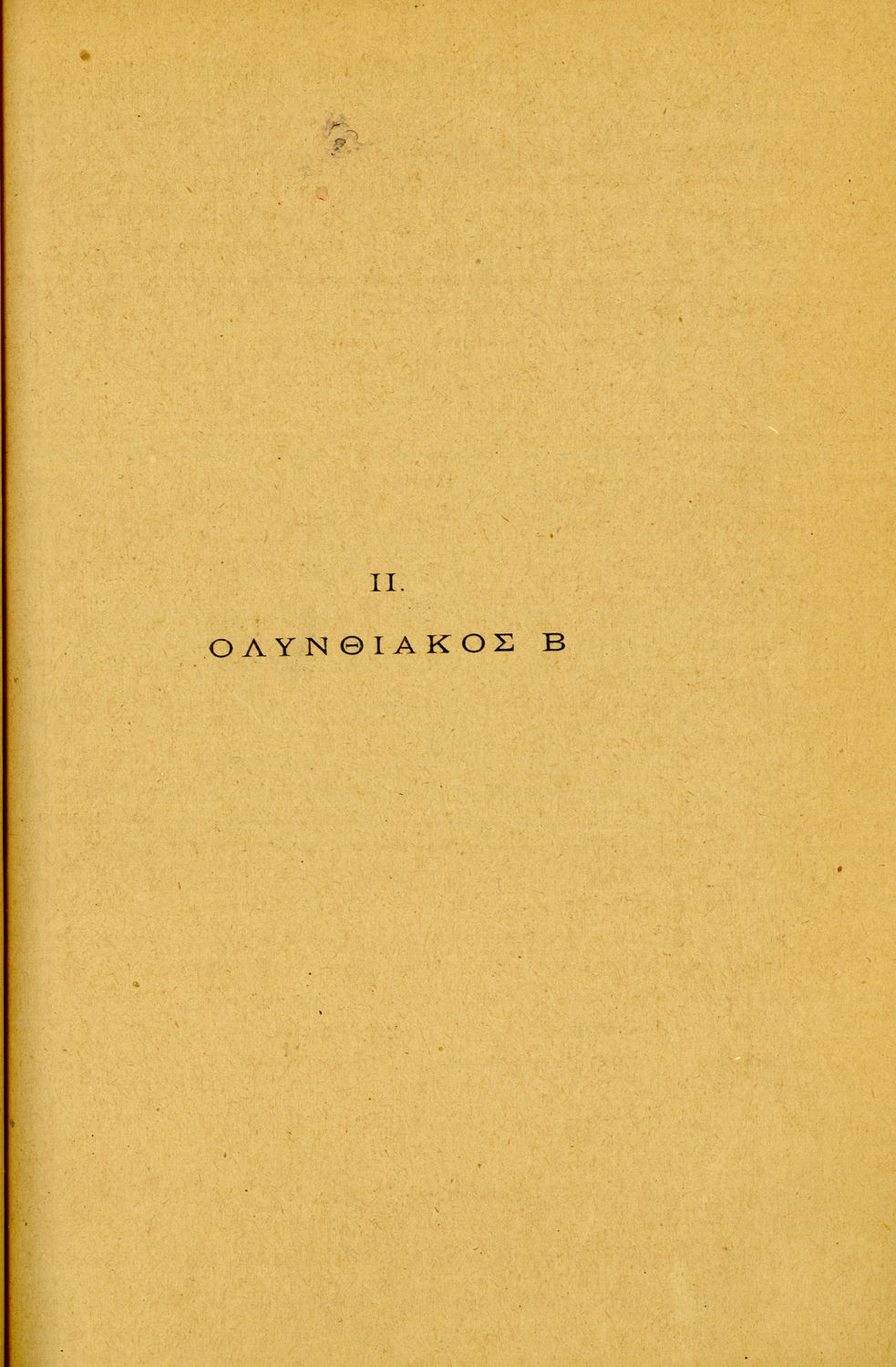 Σχολικό εγχειρίδιο Αρχαίων Ελληνικών Β΄ Γυμνασίου που περιλαμβάνει τους τρεις Ολυνθιακούς Λόγους του Δημοσθένη, ερμηνευτικά και πραγματολογικά σχόλια, λεξιλόγιο, γραμματικές παρατηρήσεις, εισαγωγικά σχόλια για
