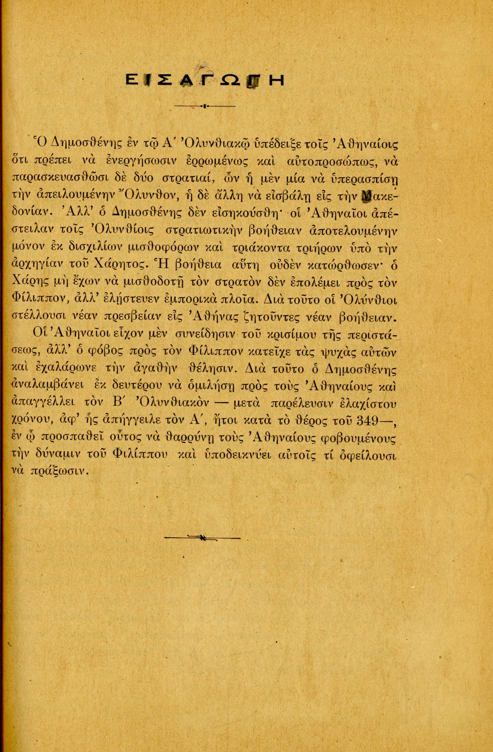 Δημοσθένους οι τρεις Ολυνθιακοί διά την Β΄ τάξιν των Γυμνασίων