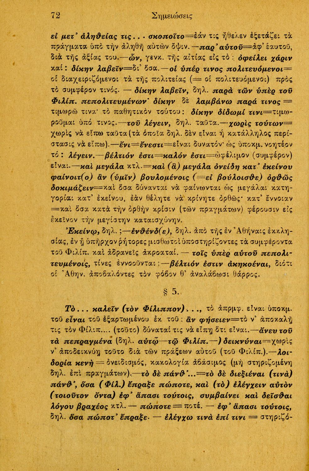 Σχολικό εγχειρίδιο Αρχαίων Ελληνικών Ε΄ Γυμνασίου που περιέχει τους Ολυνθιακούς Α΄ και Β΄ και τους Φιλιππικούς Α΄ και Β΄ του Δημοσθένη, βιογραφικό σημείωμα, λεξιλόγιο και ερμηνευτικά και ετυμολογικά σχόλια.