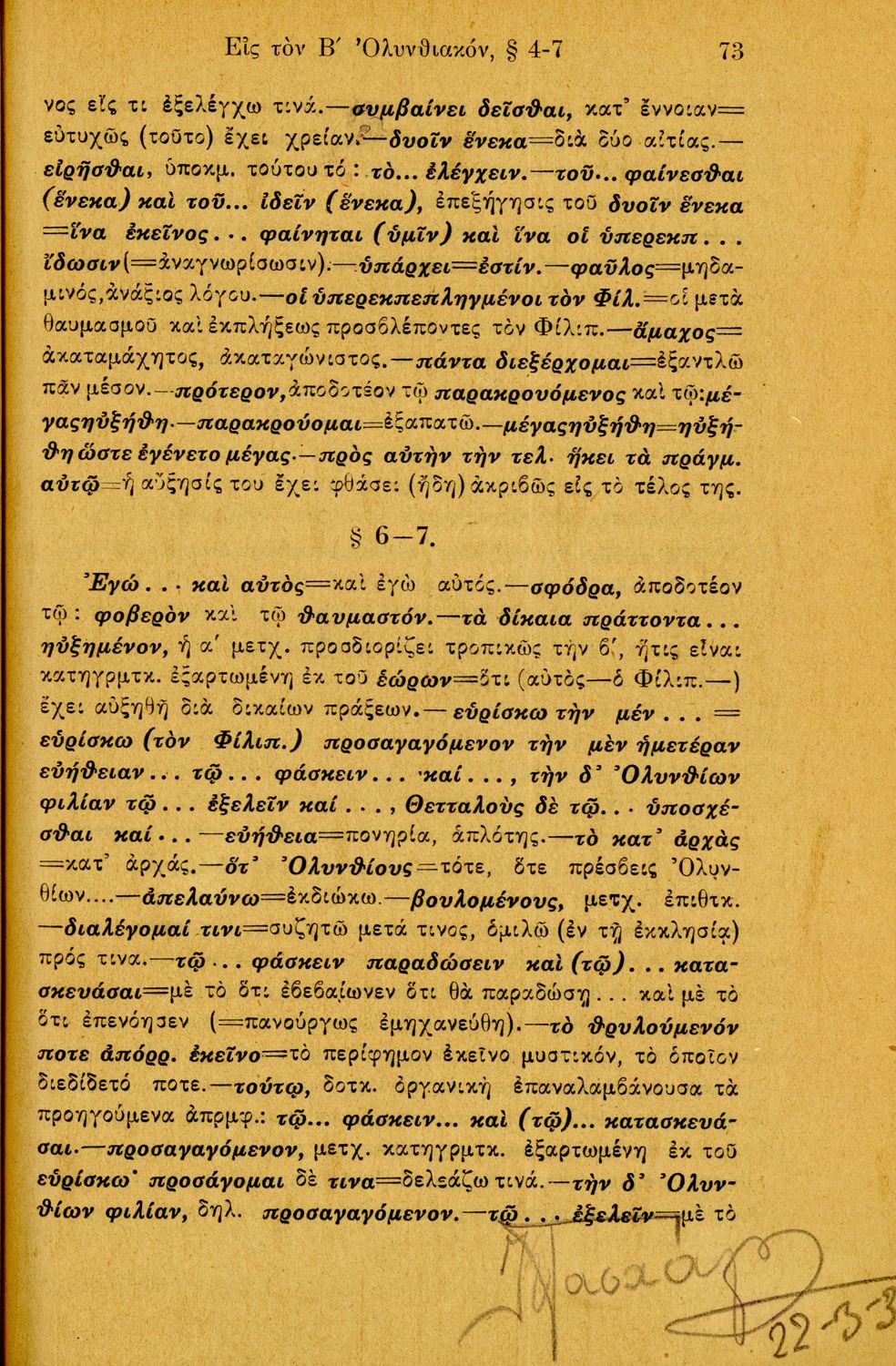 Σχολικό εγχειρίδιο Αρχαίων Ελληνικών Β΄ Γυμνασίου που περιλαμβάνει τους τρεις Ολυνθιακούς Λόγους του Δημοσθένη, εισαγωγικά σχόλια στη ζωή και το έργο του, την υπόθεση των Λόγων, και ερμηνευτικά, πραγματολογικά