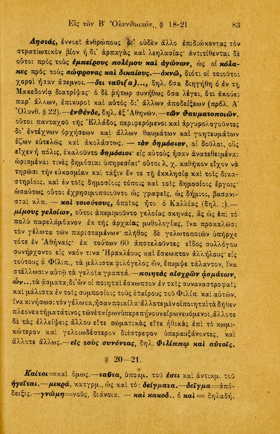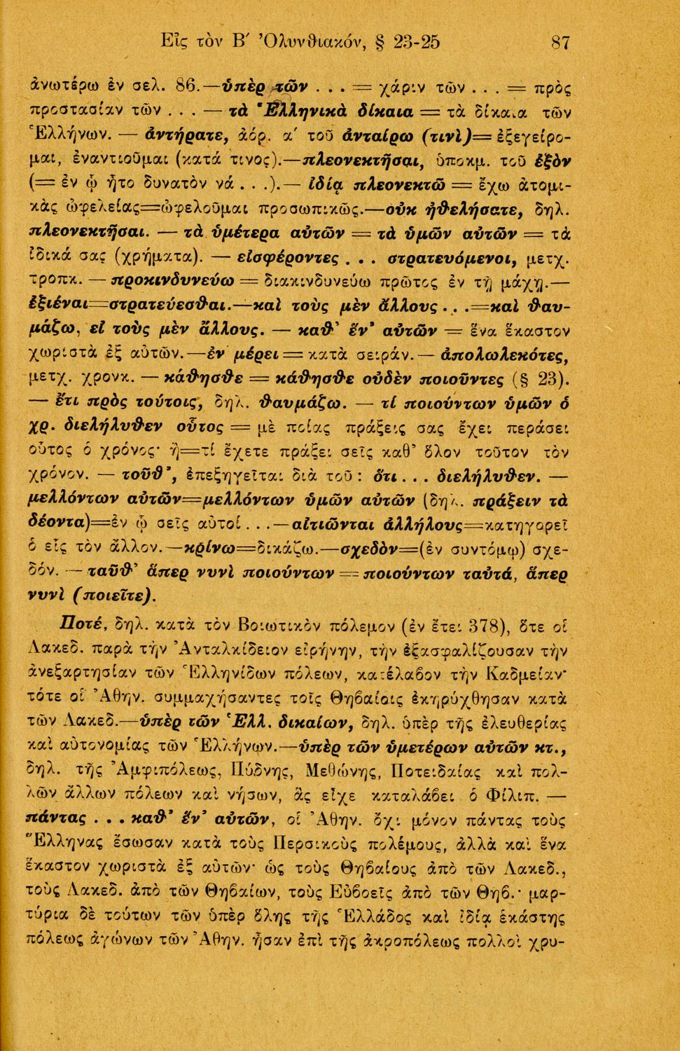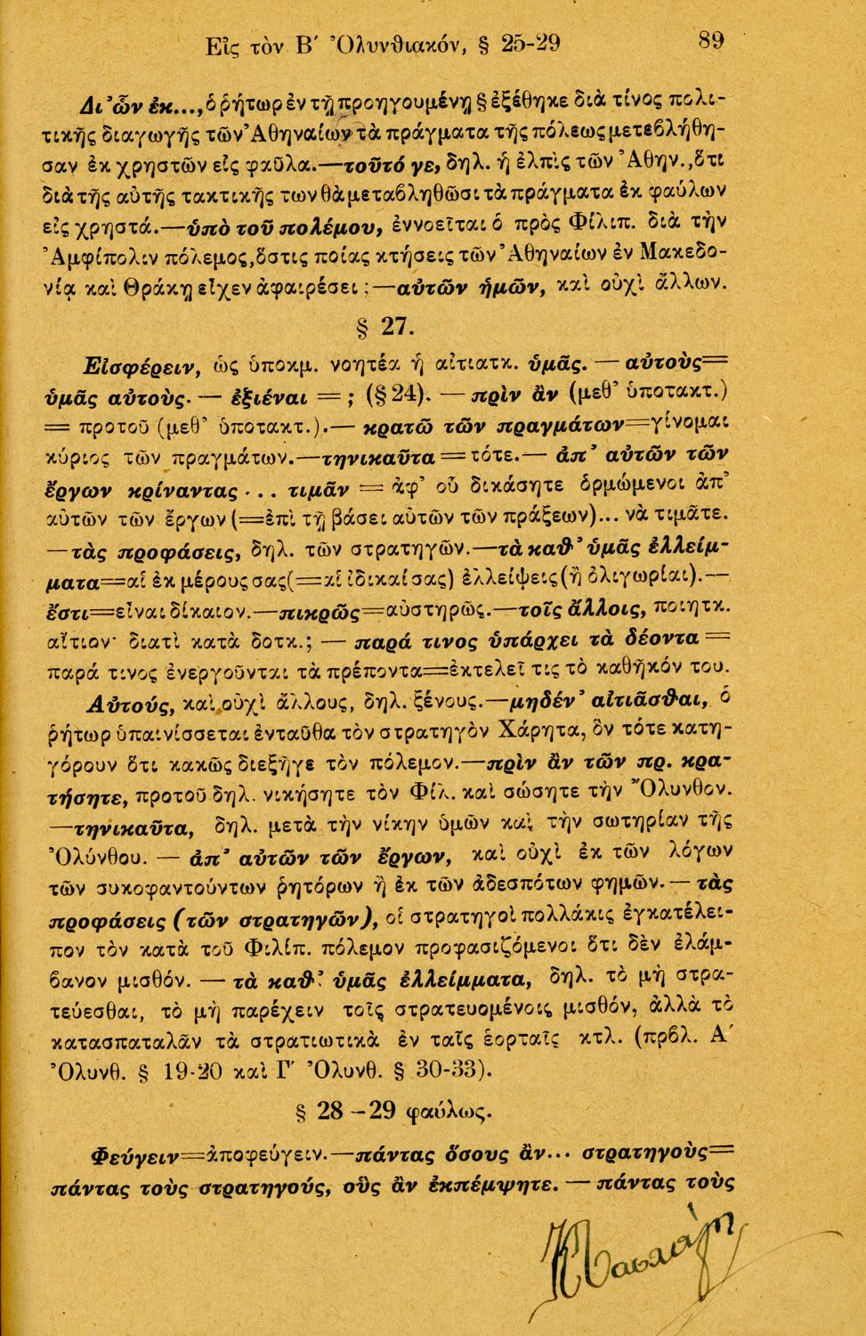 Σχολικό εγχειρίδιο Αρχαίων Ελληνικών Β΄ Γυμνασίου που περιλαμβάνει τους τρεις Ολυνθιακούς Λόγους του Δημοσθένη, εισαγωγικά σχόλια στη ζωή και το έργο του, την υπόθεση των Λόγων, και ερμηνευτικά, πραγματολογικά και λεξιλογικά σχόλια.