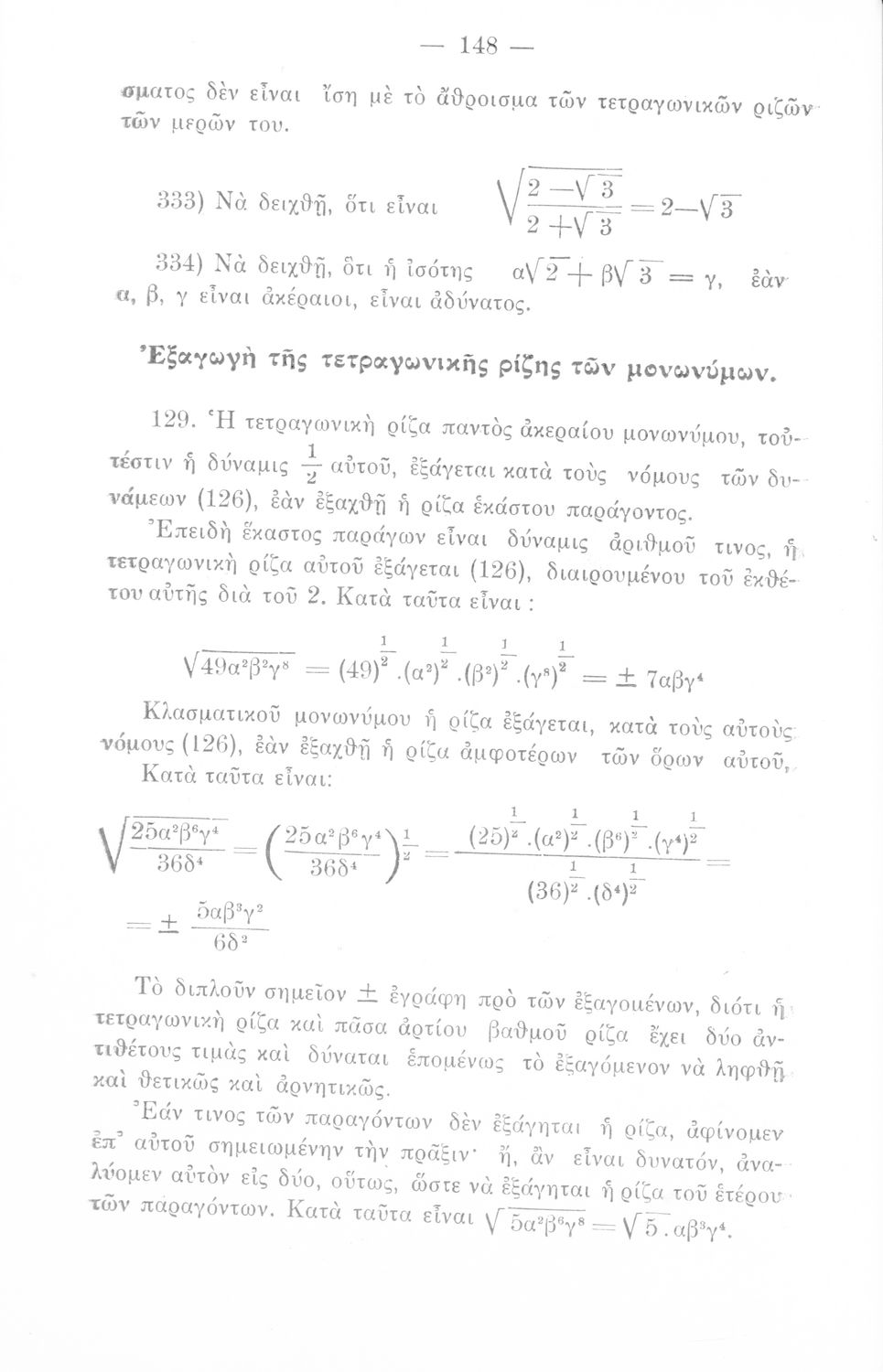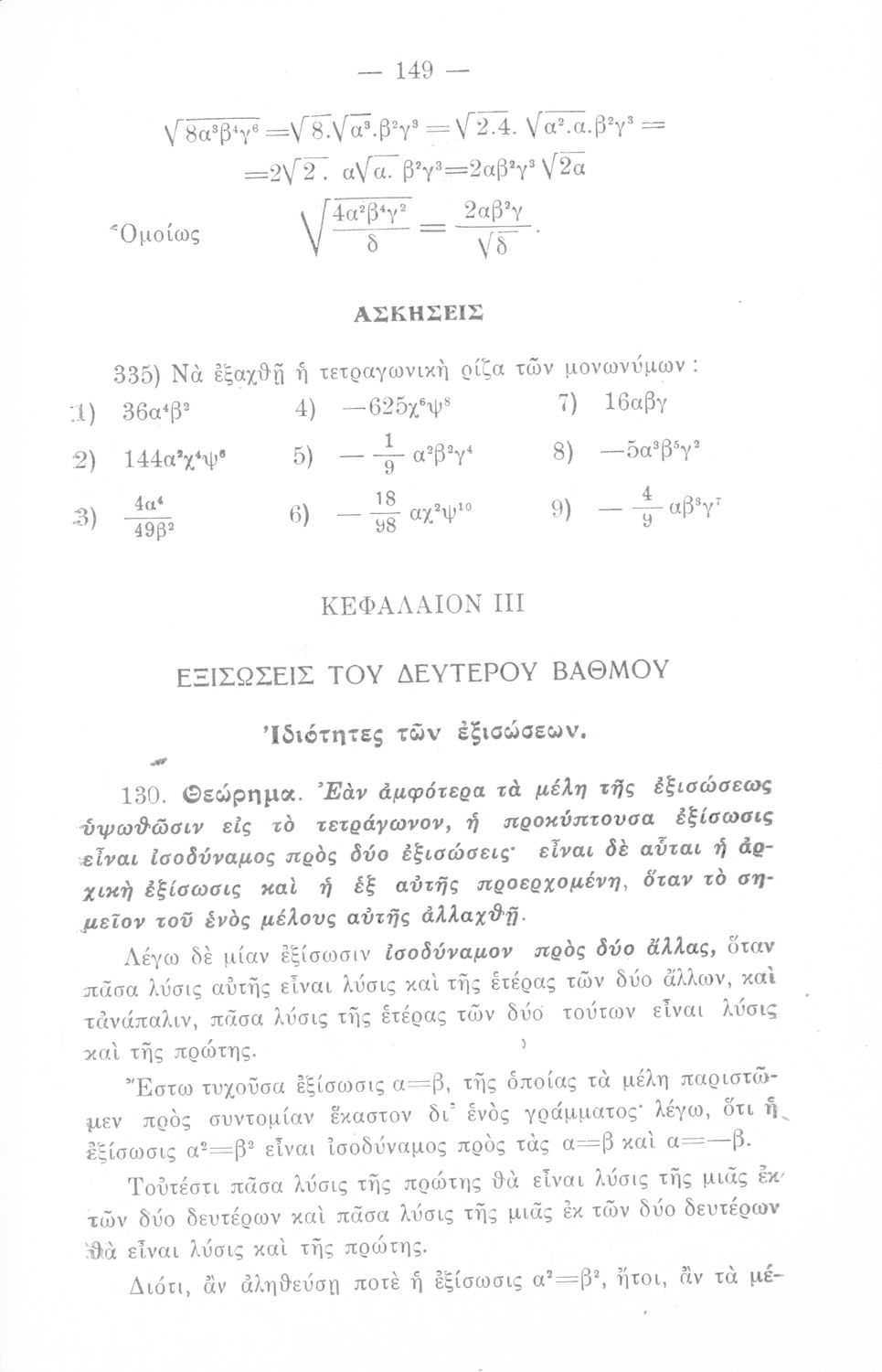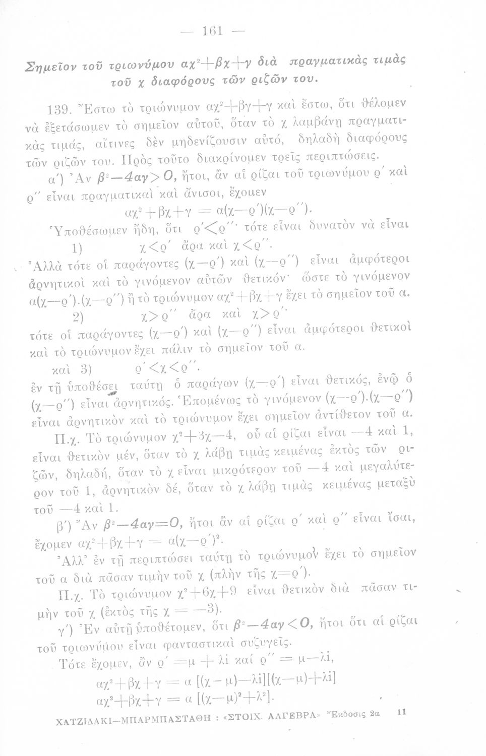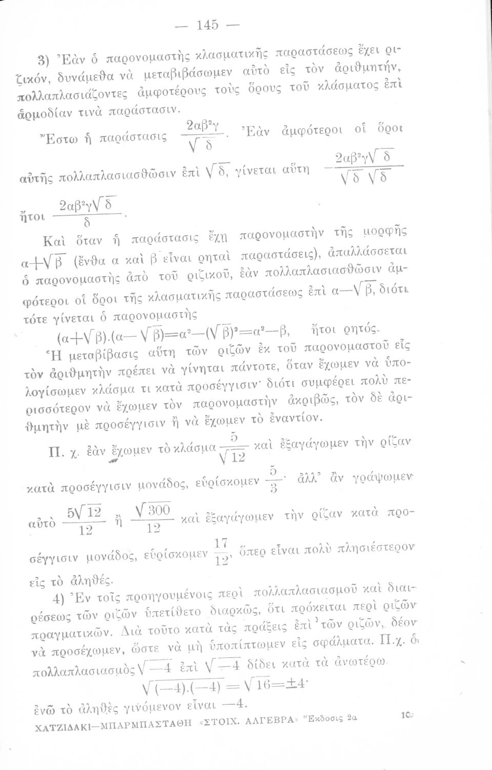 Κωδικός αναγνώρισης: 20-05377 Τίτλος: Στοιχειώδης άλγεβρα προς χρήσιν των Γυμνασίων Συγγραφέας: Ιω. Ν. Χατζιδάκις, Χρ. Α. Μπαρμπαστάθης Μέγεθος και υπόστρωμα: Σχολικό εγχειρίδιο, 19εκ., σκληρό εξώφυλλο, 236 σελίδες. |