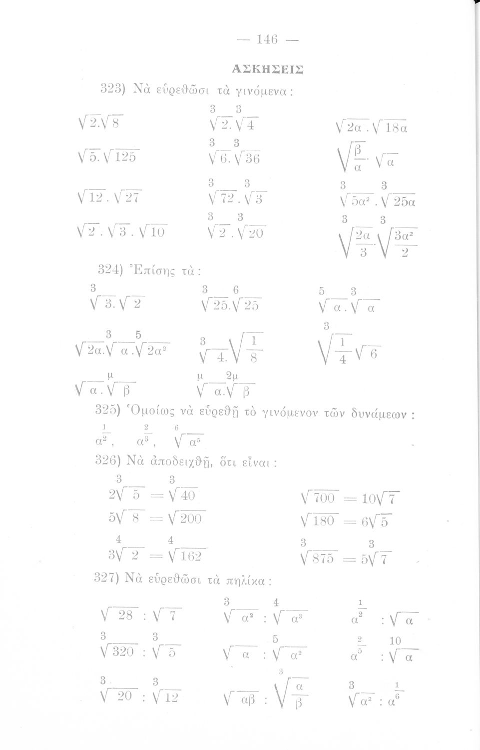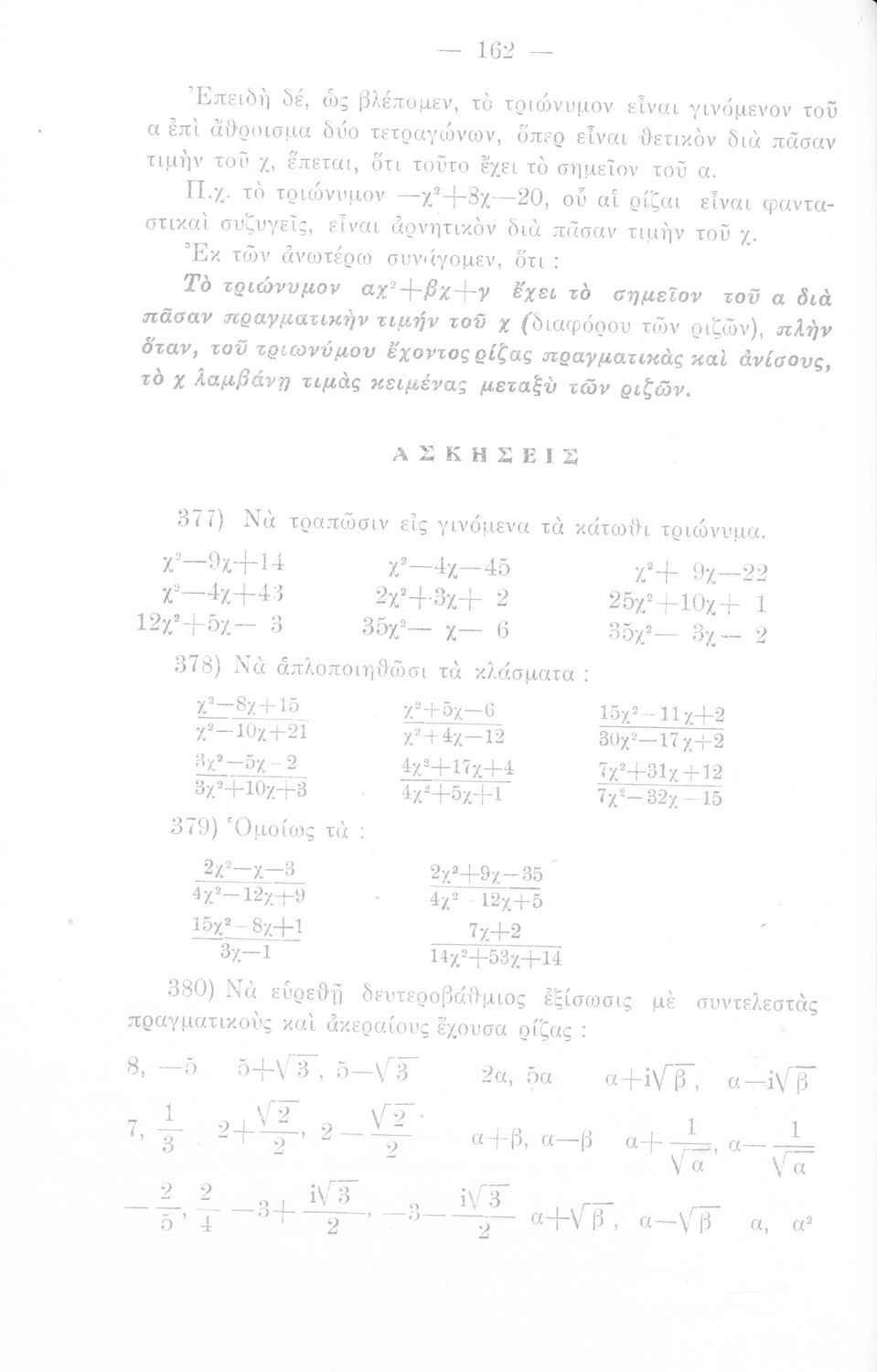 Σχολικό εγχειρίδιο Άλγεβρας που εστιάζει στις αλγεβρικές παραστάσεις, στις εξισώσεις α΄ και β΄ βαθμού, στις αριθμητικές προόδους και στους λογάριθμους.