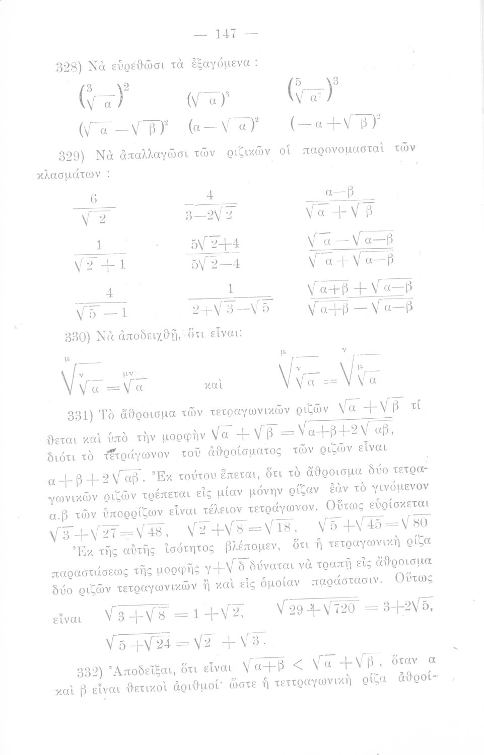 LDR 01210 2200217 4500 035 ## _a20-05377 040 ## _aΚΕΝΕΚ - Εταιρεία Σπουδών Νεοελληνικού Πολιτισμού και Παιδείας 041 ## _ael 100 ## _aΙω. Ν. Χατζιδάκις _aΧρ. Α. Μπαρμπαστάθης 110 ## _a5377 245 0# _aΣτοιχειώδης άλγεβρα προς χρήσιν των Γυμνασίων 250 ## _a2η Έκδοση 260 ## _aΑθήνα _bΙωάννης Δ. Κολλάρος, Βιβλιοπωλείο της "Εστίας" _c1933 300 ## _a236 _c19 520 ## _aΣχολικό εγχειρίδιο Άλγεβρας που εστιάζει στις αλγεβρικές παραστάσεις, στις εξισώσεις α΄ και β΄ βαθμού, στις αριθμητικές προόδους και στους λογάριθμους. 521 ## _aΓυμνάσιο 522 ## _aΕλλάδα 546 ## _aΚαθαρεύουσα 563 ## _aΣκληρό Εξώφυλλο 583 ## _a46645/15887/23-8-1932 _c1932 650 #4 _aΑλγεβρικές παραστάσεις _aΕξισώσεις _aΛογάριθμοι _aΣύνολα αριθμών