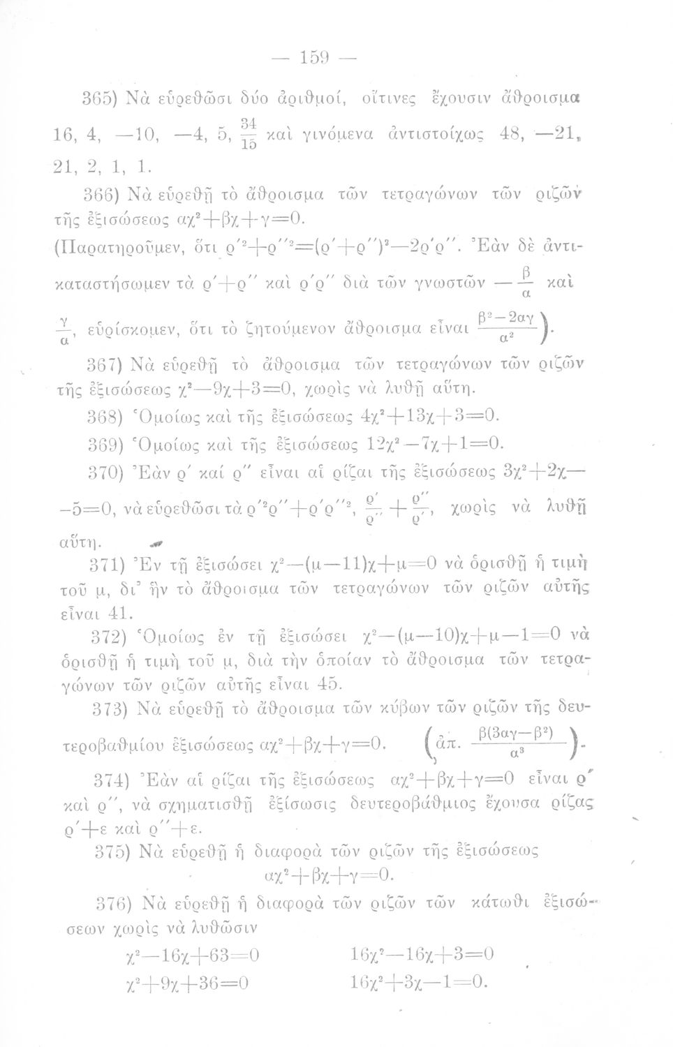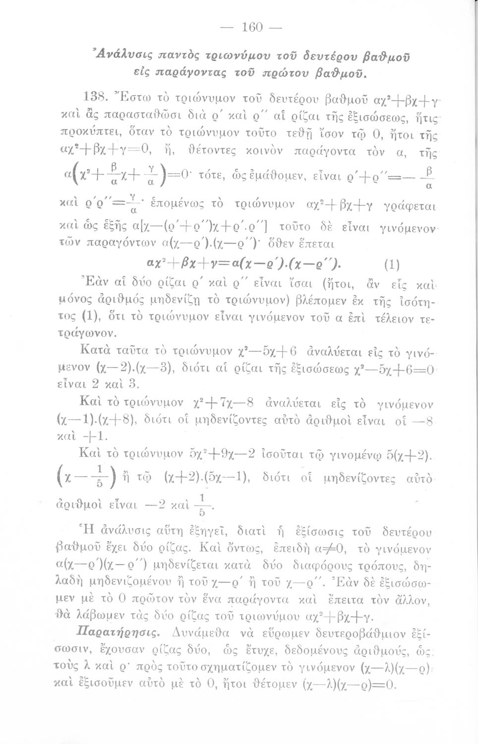 Βαθμίδα εκπαίδευσης: Δευτεροβάθμια Τάξη: Γυμνάσιο Μάθημα: Άλγεβρα Γλώσσα: Καθαρεύουσα Παρουσίαση περιεχομένου: Σχολικό εγχειρίδιο Άλγεβρας που εστιάζει στις αλγεβρικές παραστάσεις, στις εξισώσεις α΄ και β΄ βαθμού, στις αριθμητικές προόδους και στους λογάριθμους. |