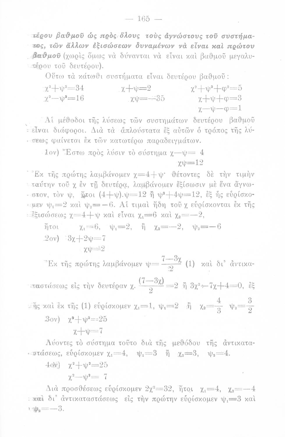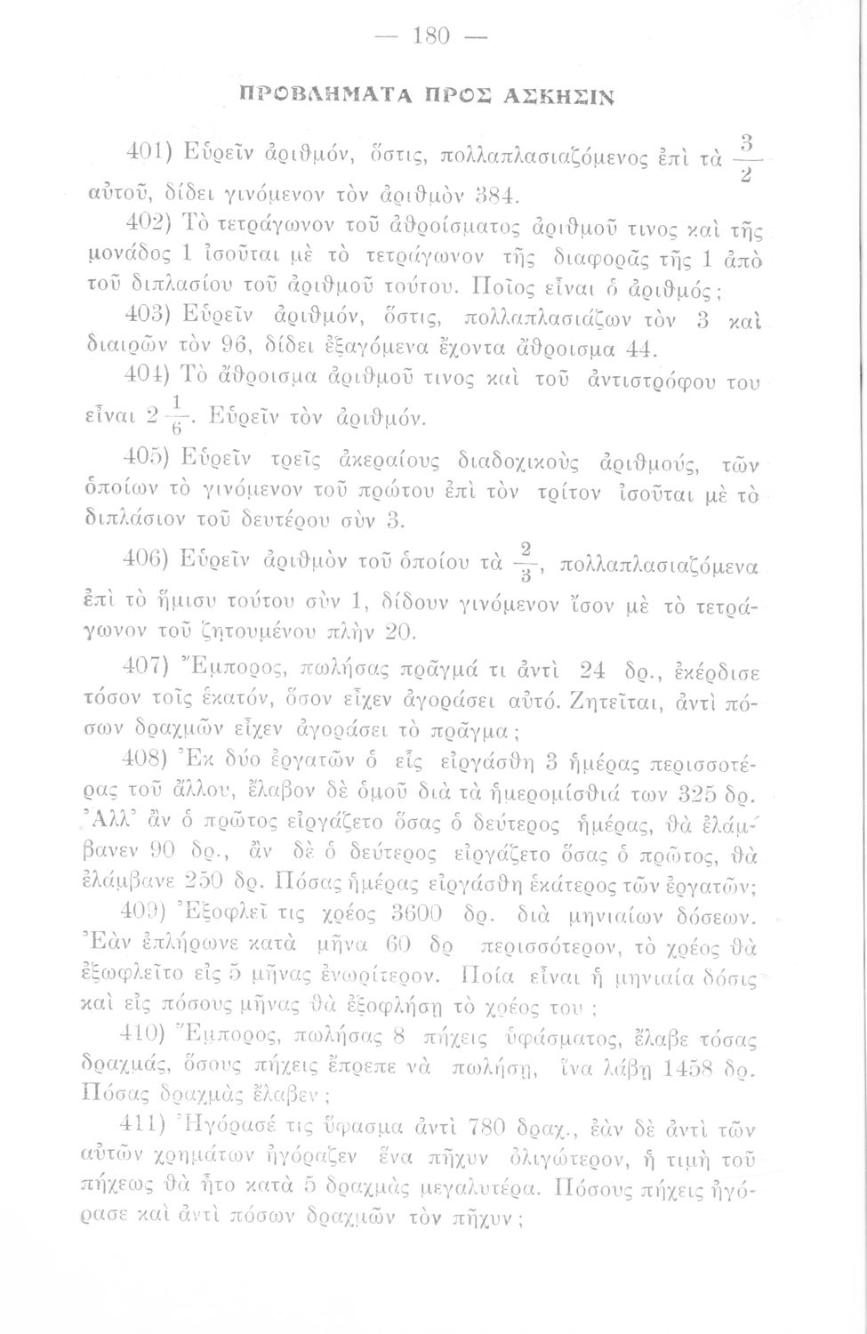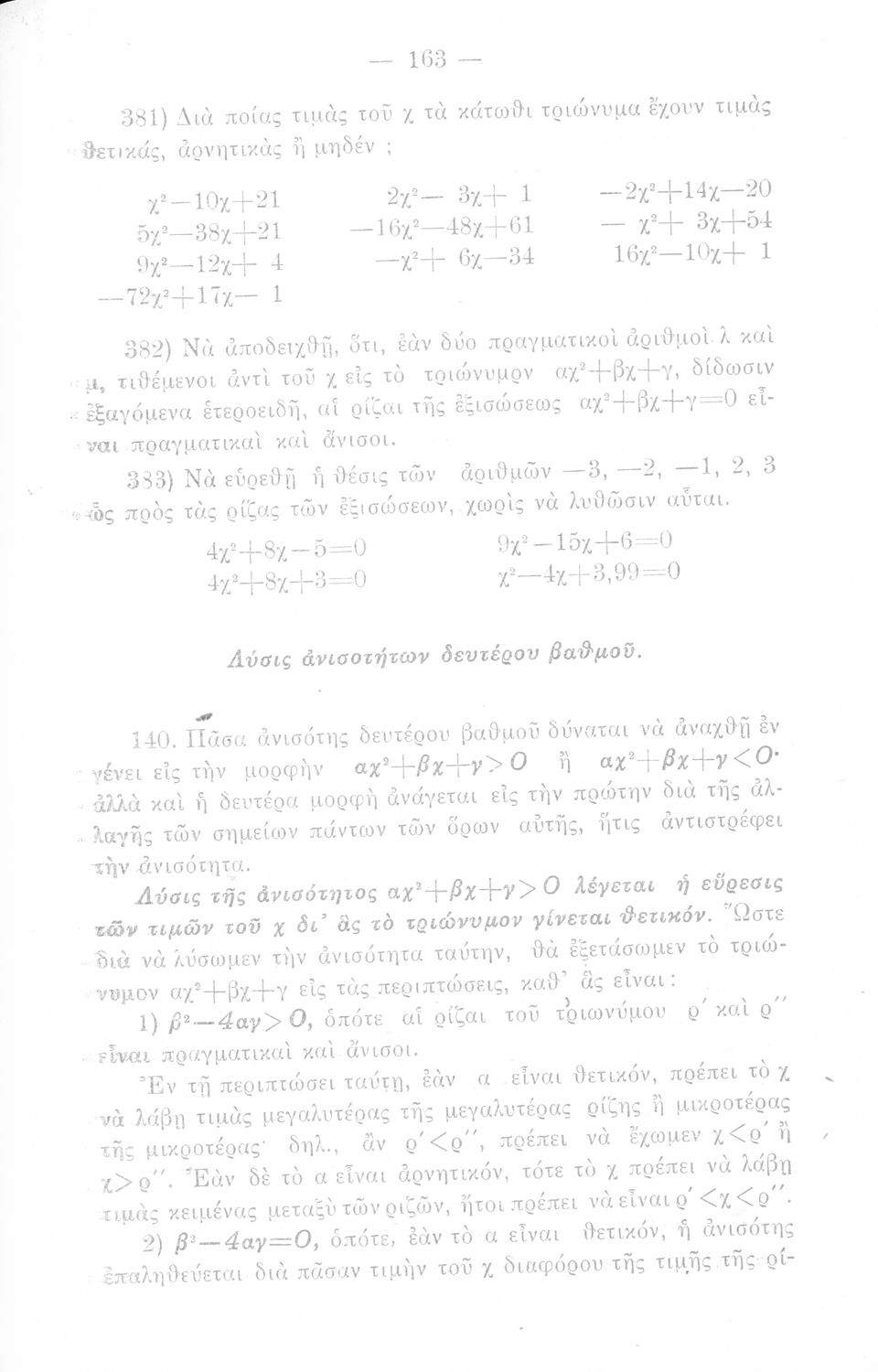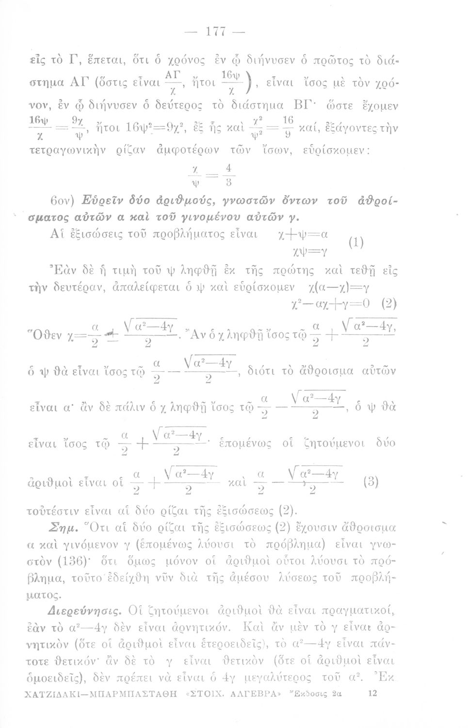 Σχολικό εγχειρίδιο Άλγεβρας Γυμνασίου που περιέχει θεωρία και ασκήσεις. Ο συγγραφέας ήταν υφηγητής στο Εθνικό Πανεπιστήμιο.