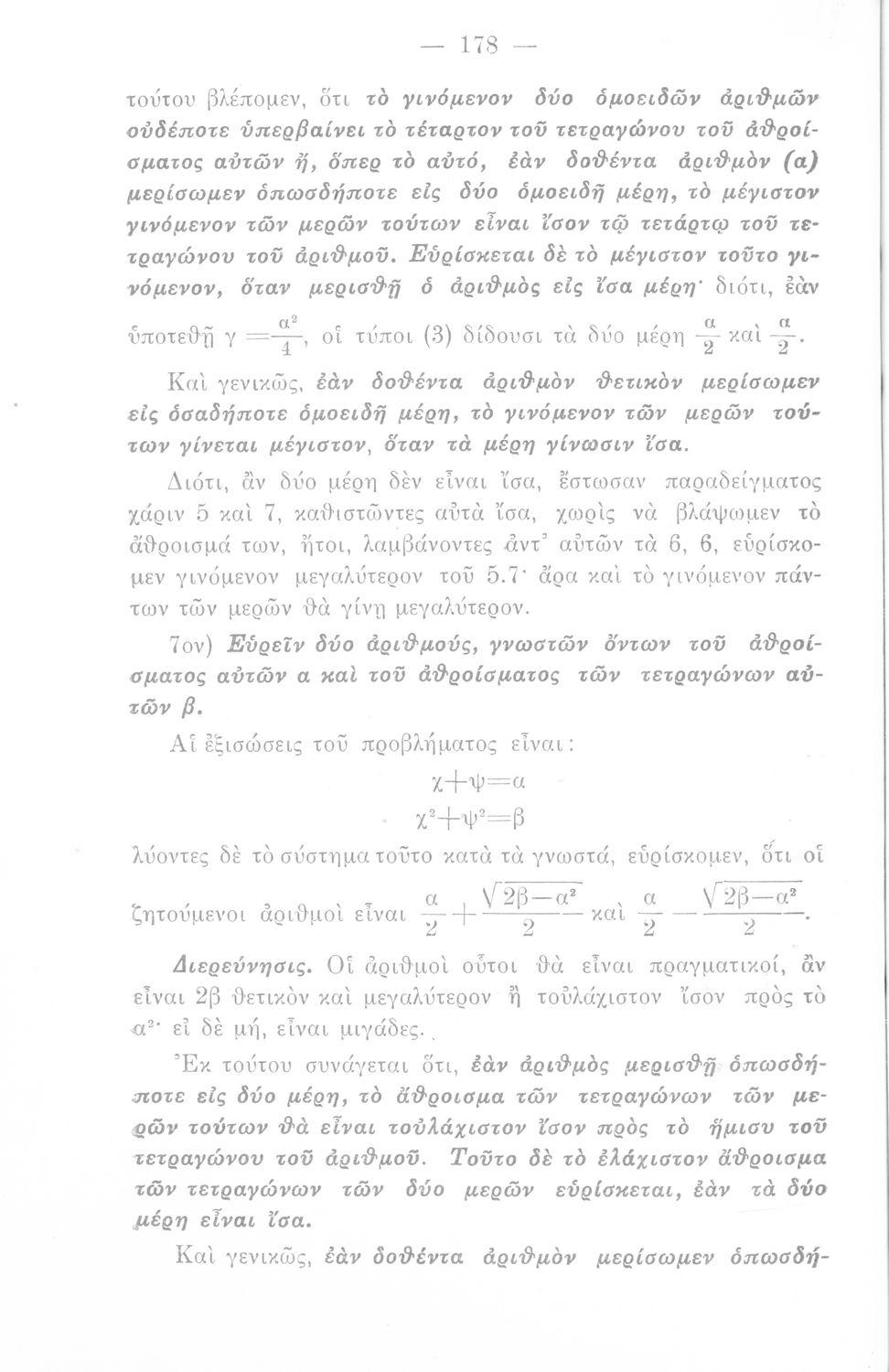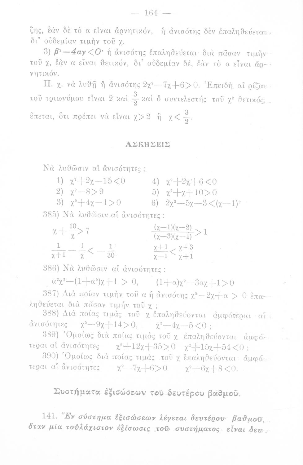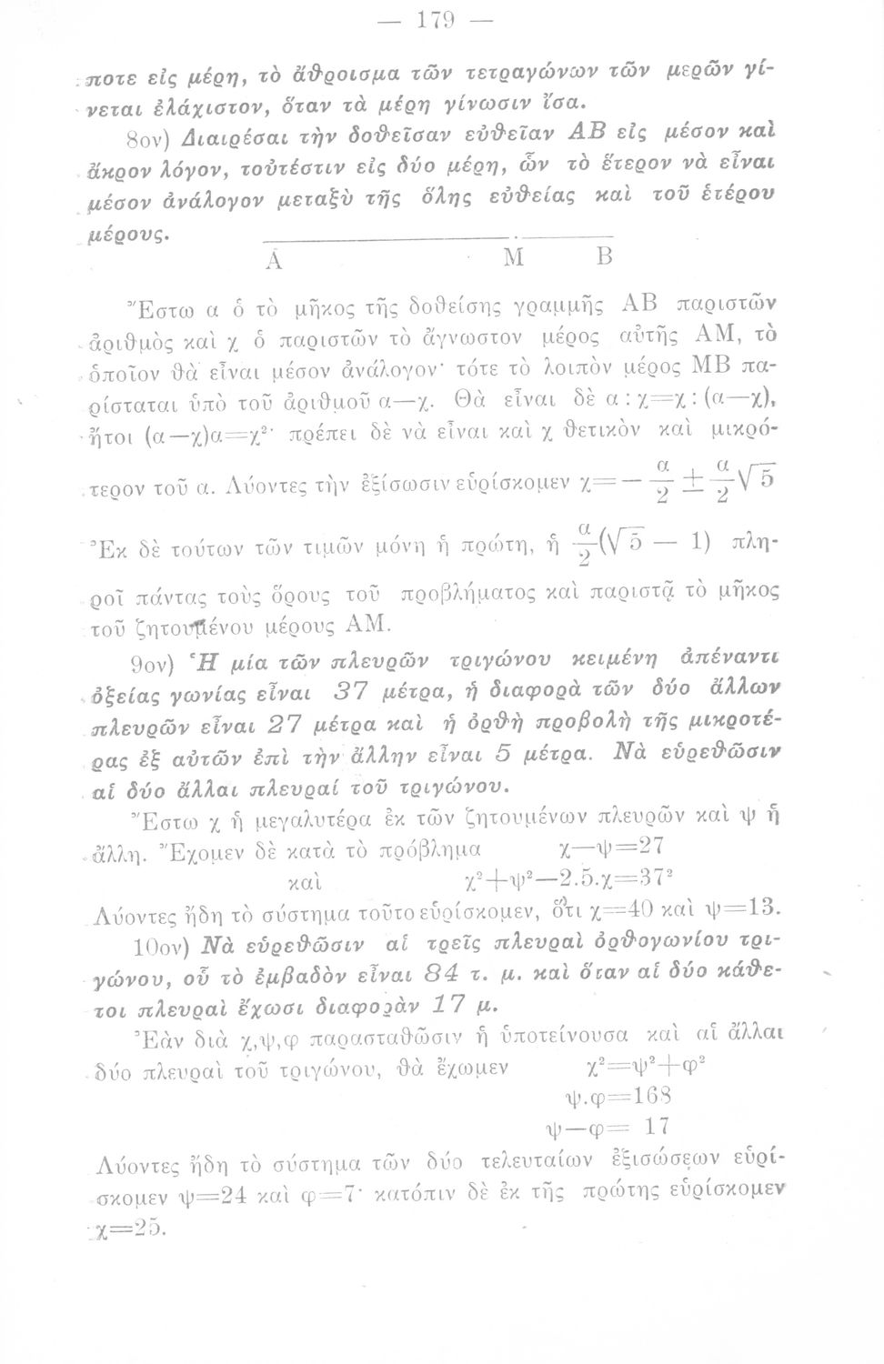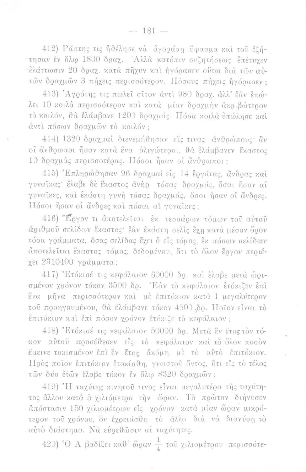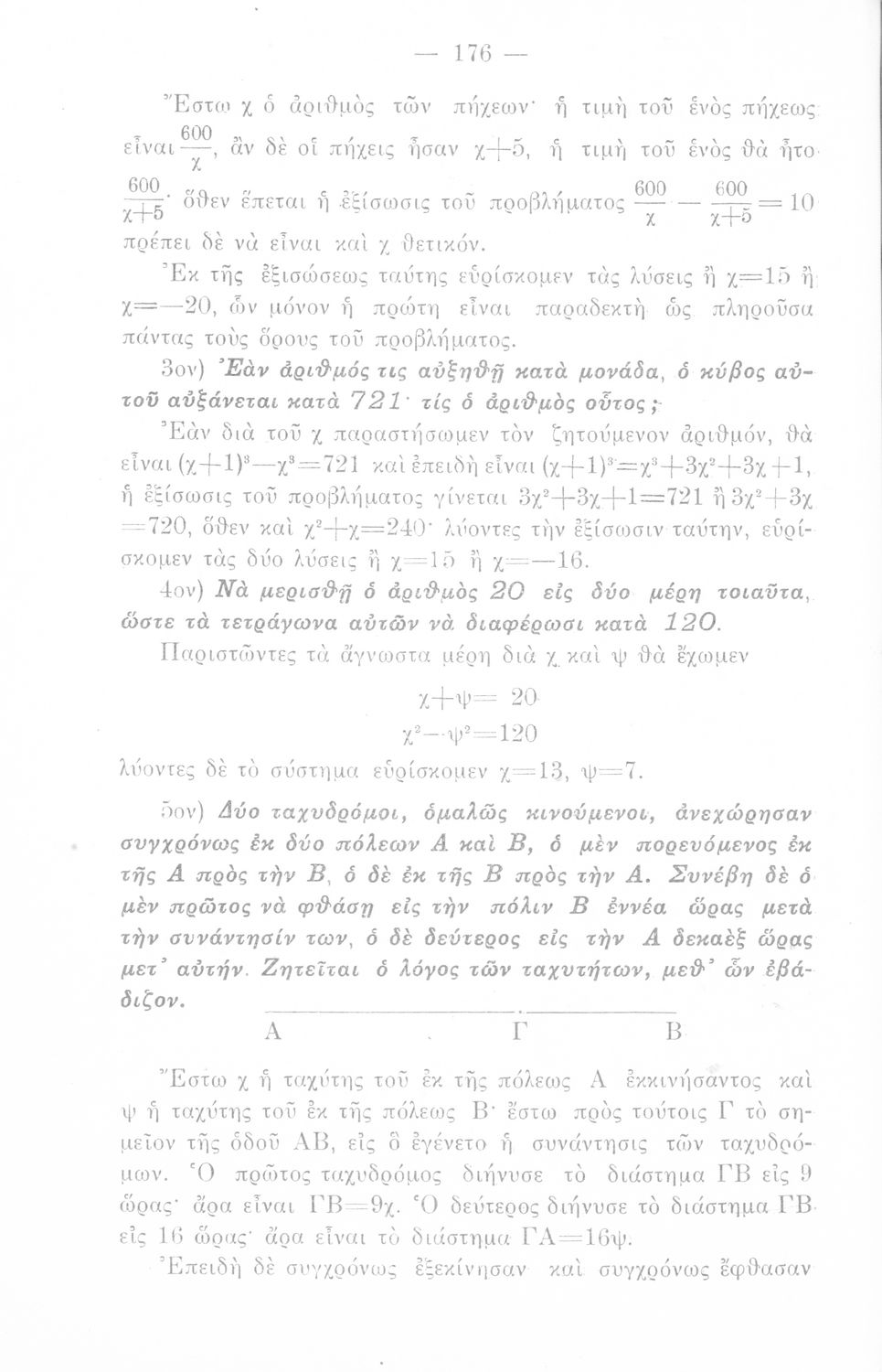 Σχολικό εγχειρίδιο Άλγεβρας Γυμνασίου που περιέχει θεωρία και ασκήσεις. Ο συγγραφέας ήταν υφηγητής στο Εθνικό Πανεπιστήμιο.