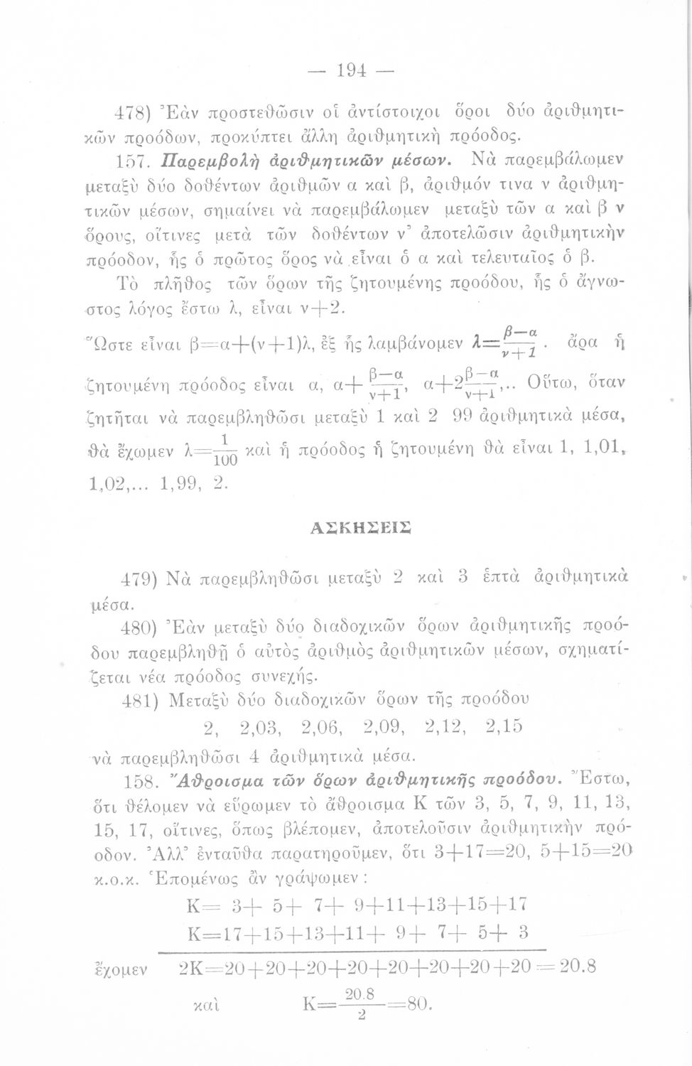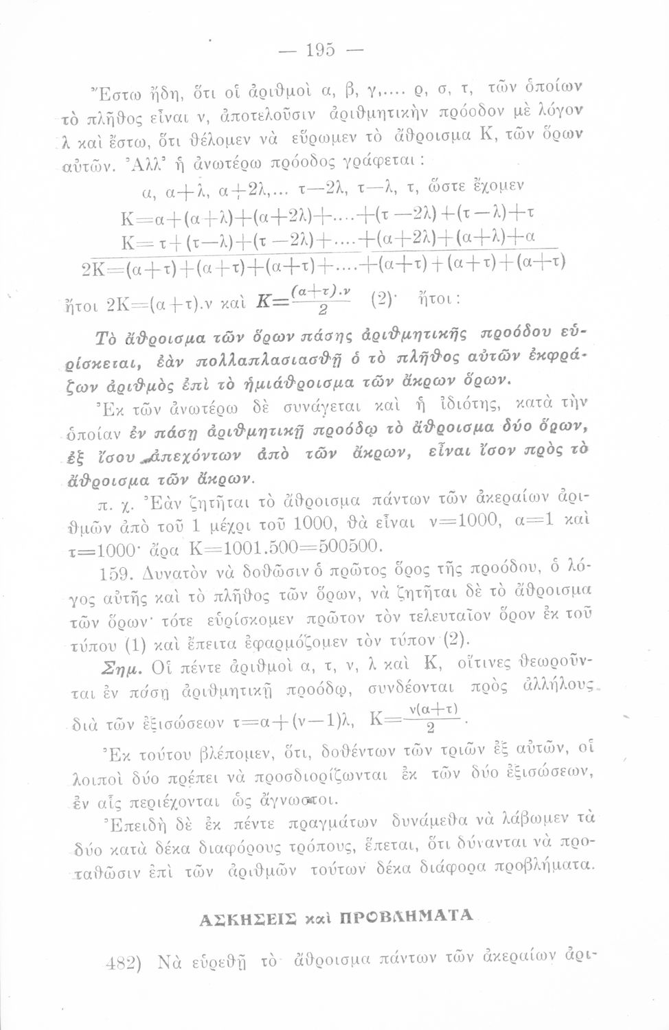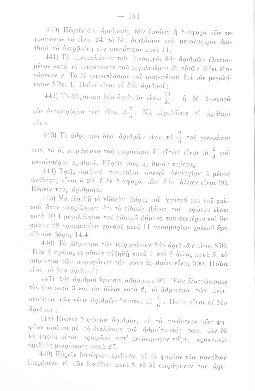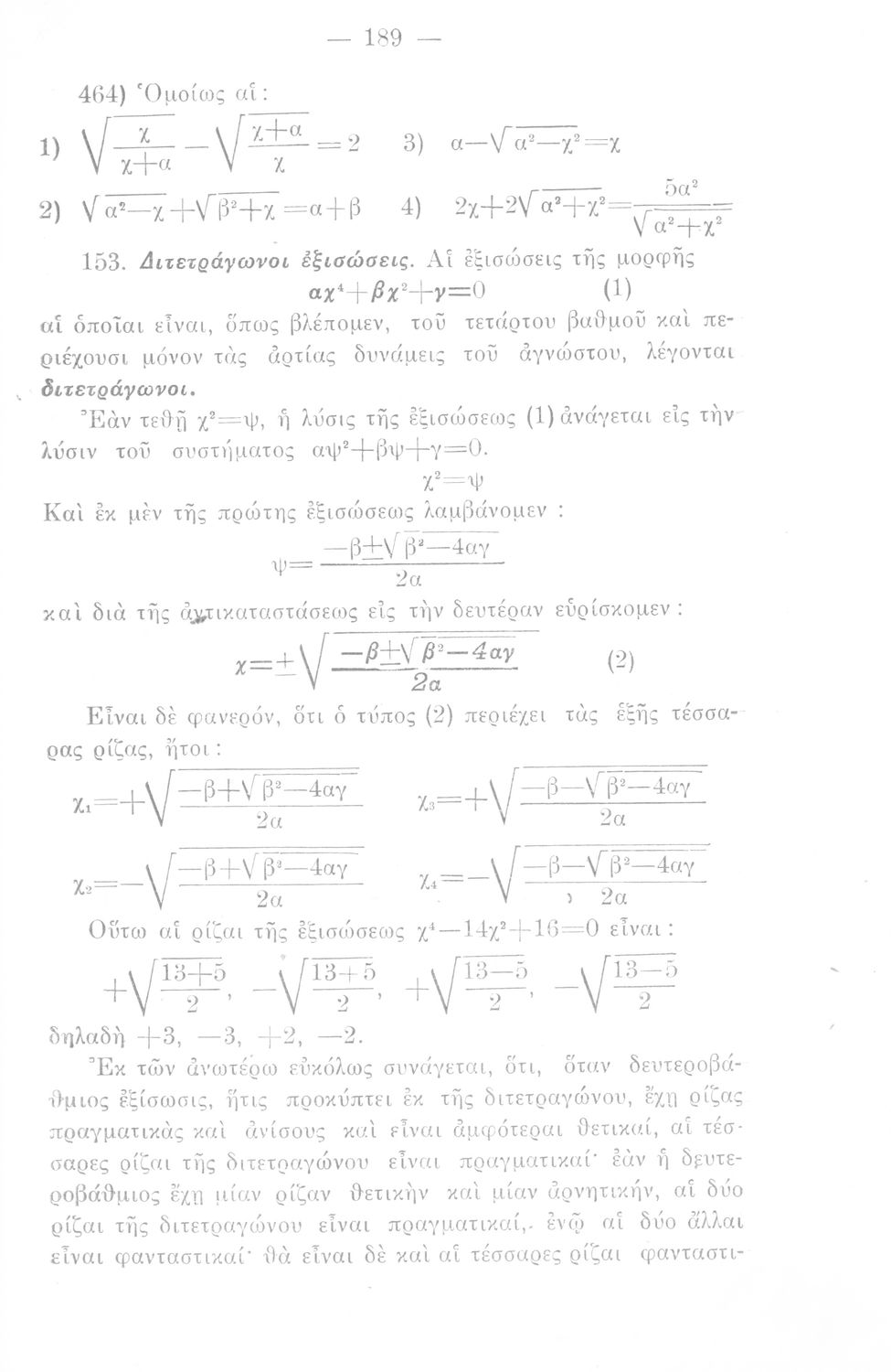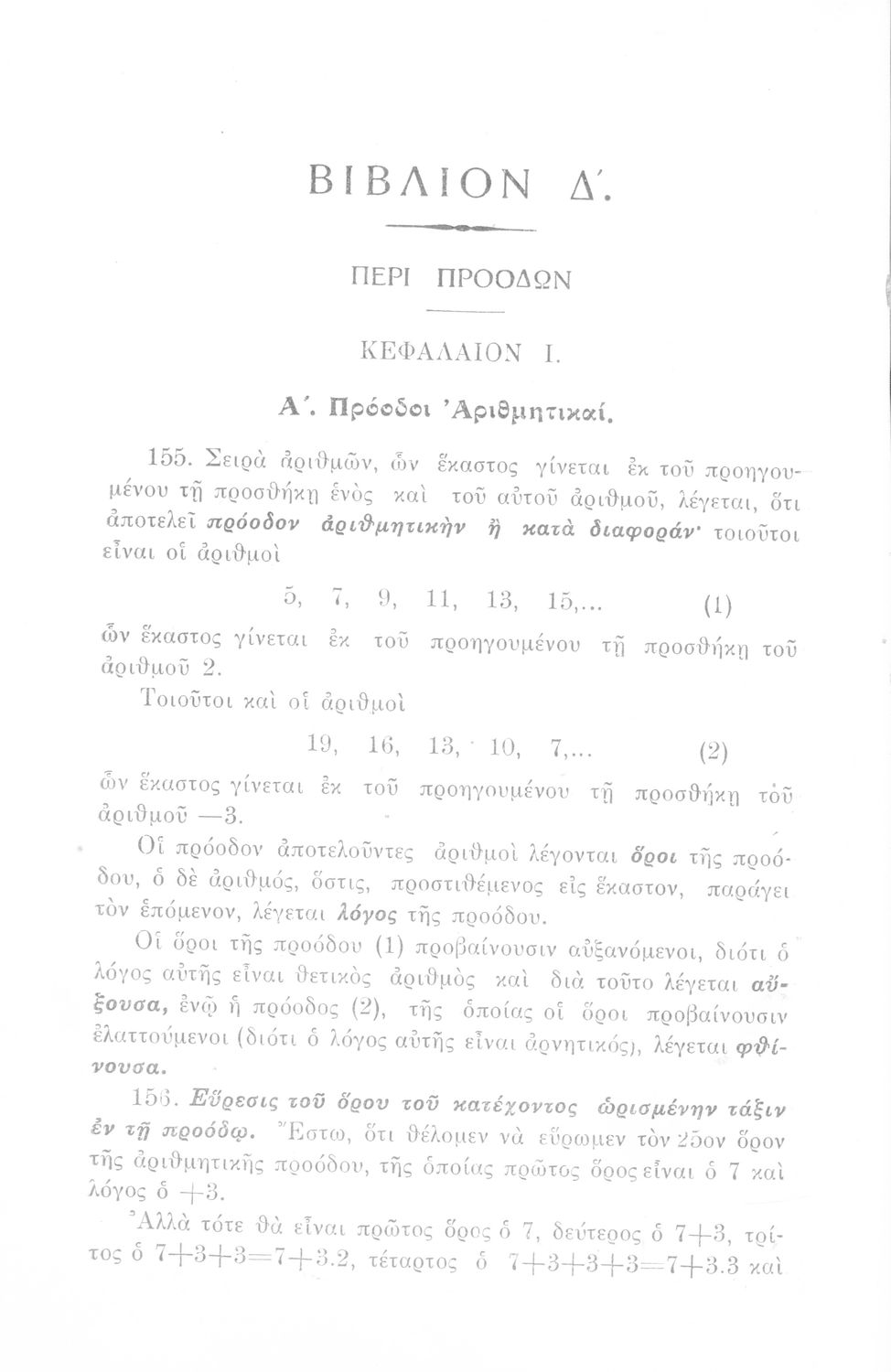 Βαθμίδα εκπαίδευσης: Δευτεροβάθμια Τάξη: Γυμνάσιο Μάθημα: Άλγεβρα Γλώσσα: Καθαρεύουσα Παρουσίαση περιεχομένου: Σχολικό εγχειρίδιο Άλγεβρας που εστιάζει στις αλγεβρικές παραστάσεις, στις εξισώσεις α΄ και β΄ βαθμού, στις αριθμητικές προόδους και στους λογάριθμους. |
