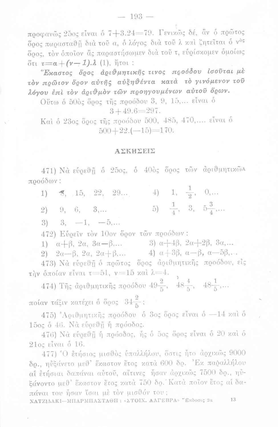 LDR 01210 2200217 4500 035 ## _a20-05377 040 ## _aΚΕΝΕΚ - Εταιρεία Σπουδών Νεοελληνικού Πολιτισμού και Παιδείας 041 ## _ael 100 ## _aΙω. Ν. Χατζιδάκις _aΧρ. Α. Μπαρμπαστάθης 110 ## _a5377 245 0# _aΣτοιχειώδης άλγεβρα προς χρήσιν των Γυμνασίων 250 ## _a2η Έκδοση 260 ## _aΑθήνα _bΙωάννης Δ. Κολλάρος, Βιβλιοπωλείο της "Εστίας" _c1933 300 ## _a236 _c19 520 ## _aΣχολικό εγχειρίδιο Άλγεβρας που εστιάζει στις αλγεβρικές παραστάσεις, στις εξισώσεις α΄ και β΄ βαθμού, στις αριθμητικές προόδους και στους λογάριθμους. 521 ## _aΓυμνάσιο 522 ## _aΕλλάδα 546 ## _aΚαθαρεύουσα 563 ## _aΣκληρό Εξώφυλλο 583 ## _a46645/15887/23-8-1932 _c1932 650 #4 _aΑλγεβρικές παραστάσεις _aΕξισώσεις _aΛογάριθμοι _aΣύνολα αριθμών