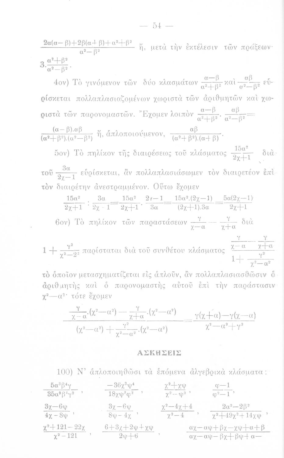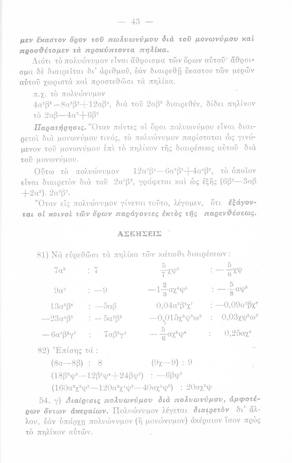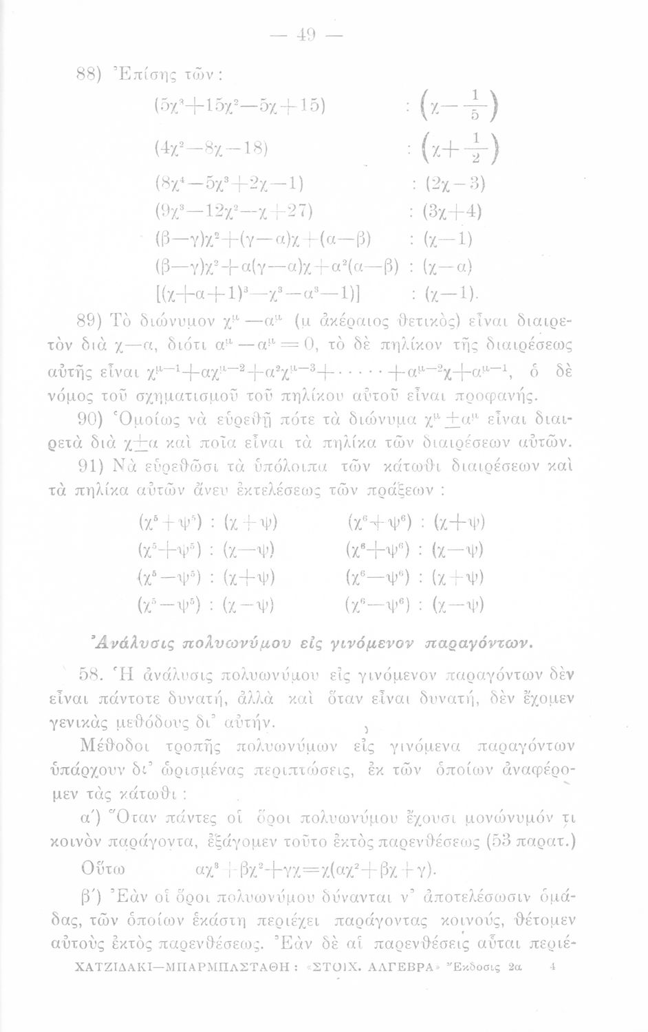 Σχολικό εγχειρίδιο Άλγεβρας Γυμνασίου που περιέχει θεωρία και ασκήσεις. Ο συγγραφέας ήταν υφηγητής στο Εθνικό Πανεπιστήμιο.