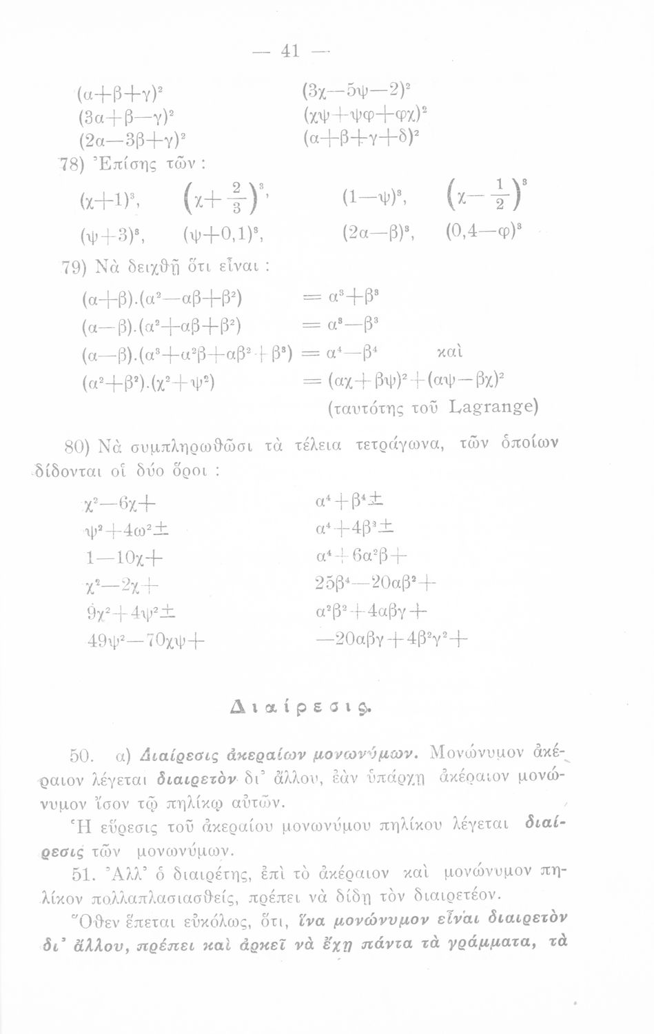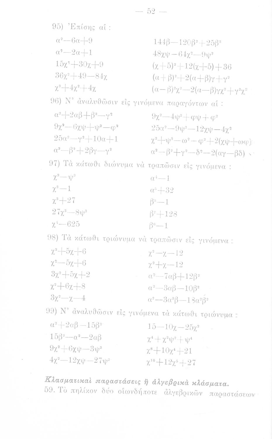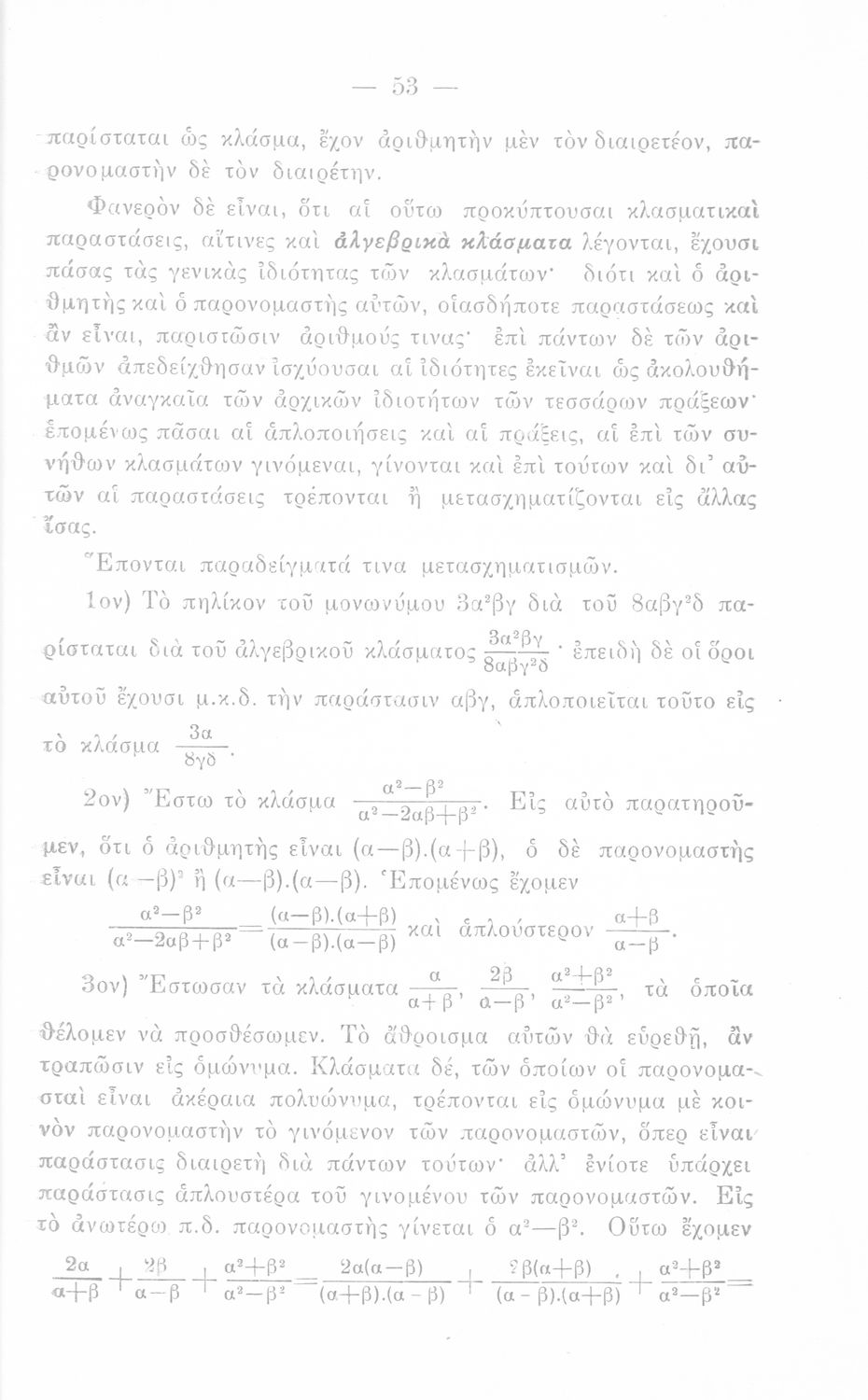 Σχολικό εγχειρίδιο Άλγεβρας Γυμνασίου που περιέχει θεωρία και ασκήσεις. Ο συγγραφέας ήταν υφηγητής στο Εθνικό Πανεπιστήμιο.