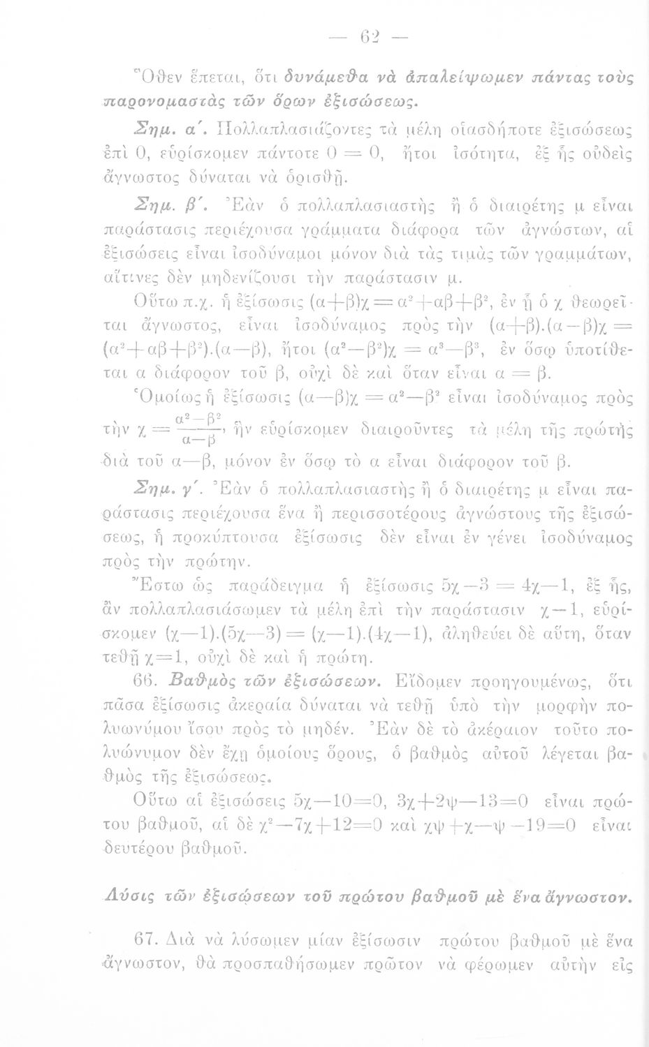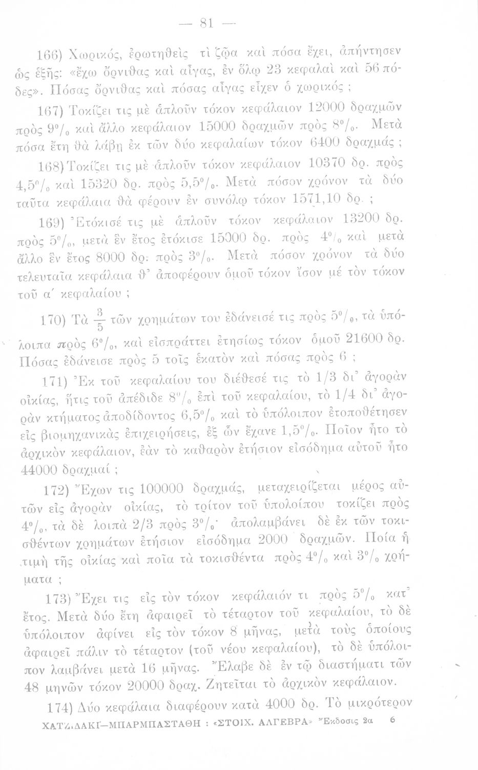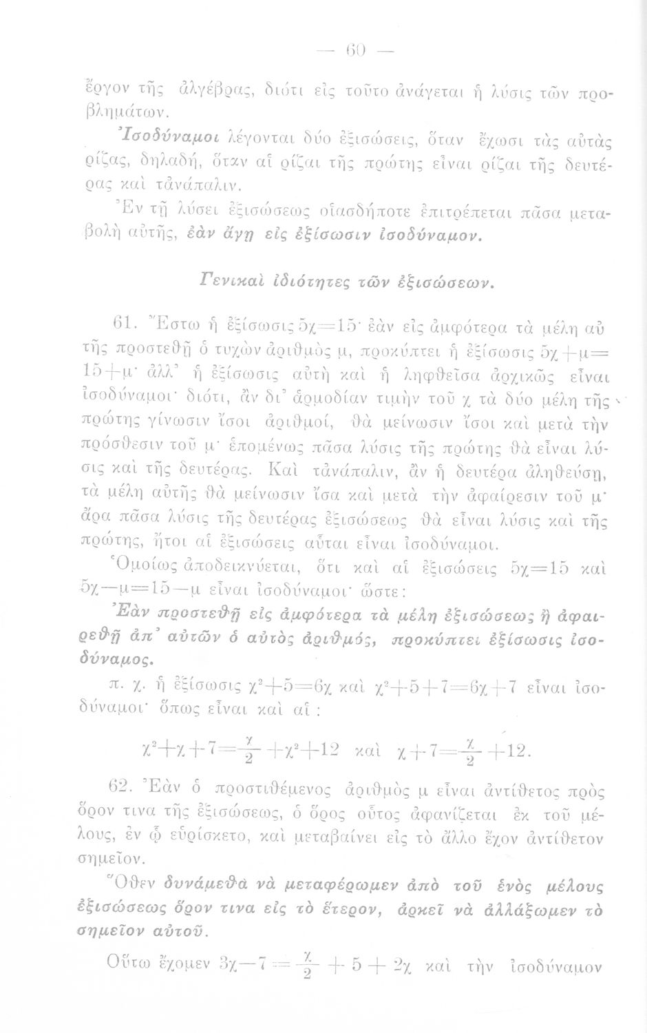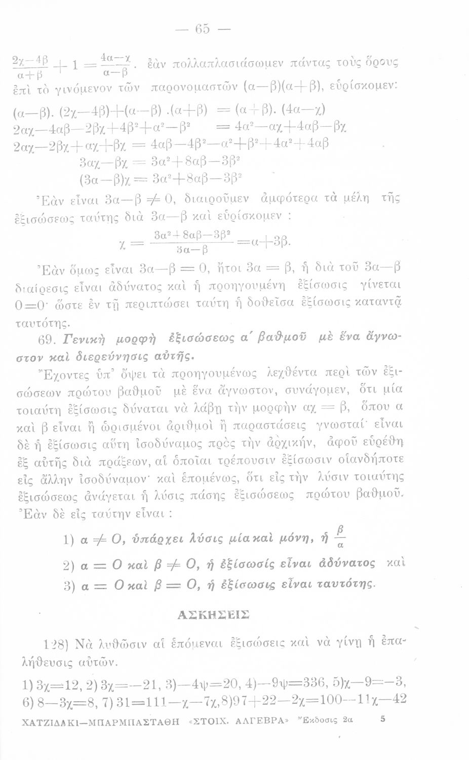 Σχολικό εγχειρίδιο Άλγεβρας Γυμνασίου που περιέχει θεωρία και ασκήσεις. Ο συγγραφέας ήταν υφηγητής στο Εθνικό Πανεπιστήμιο.