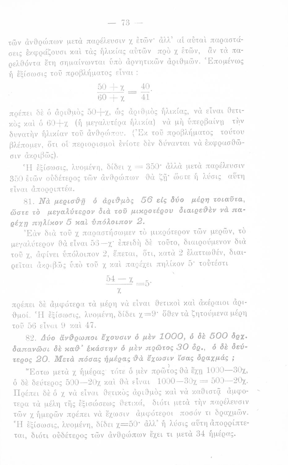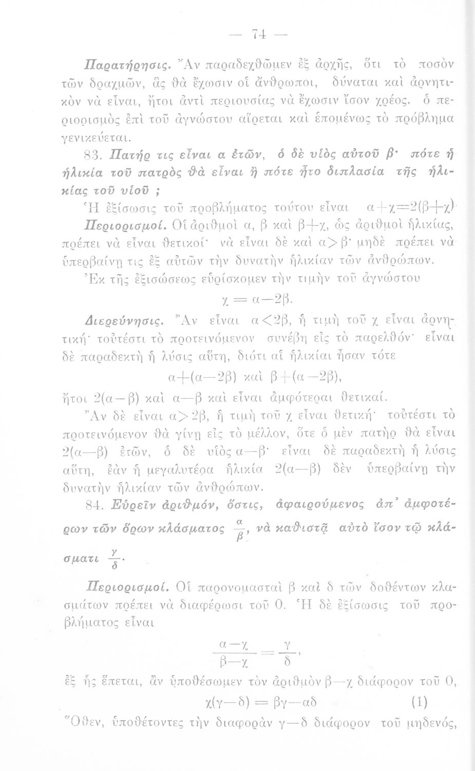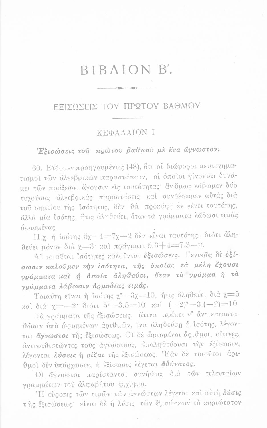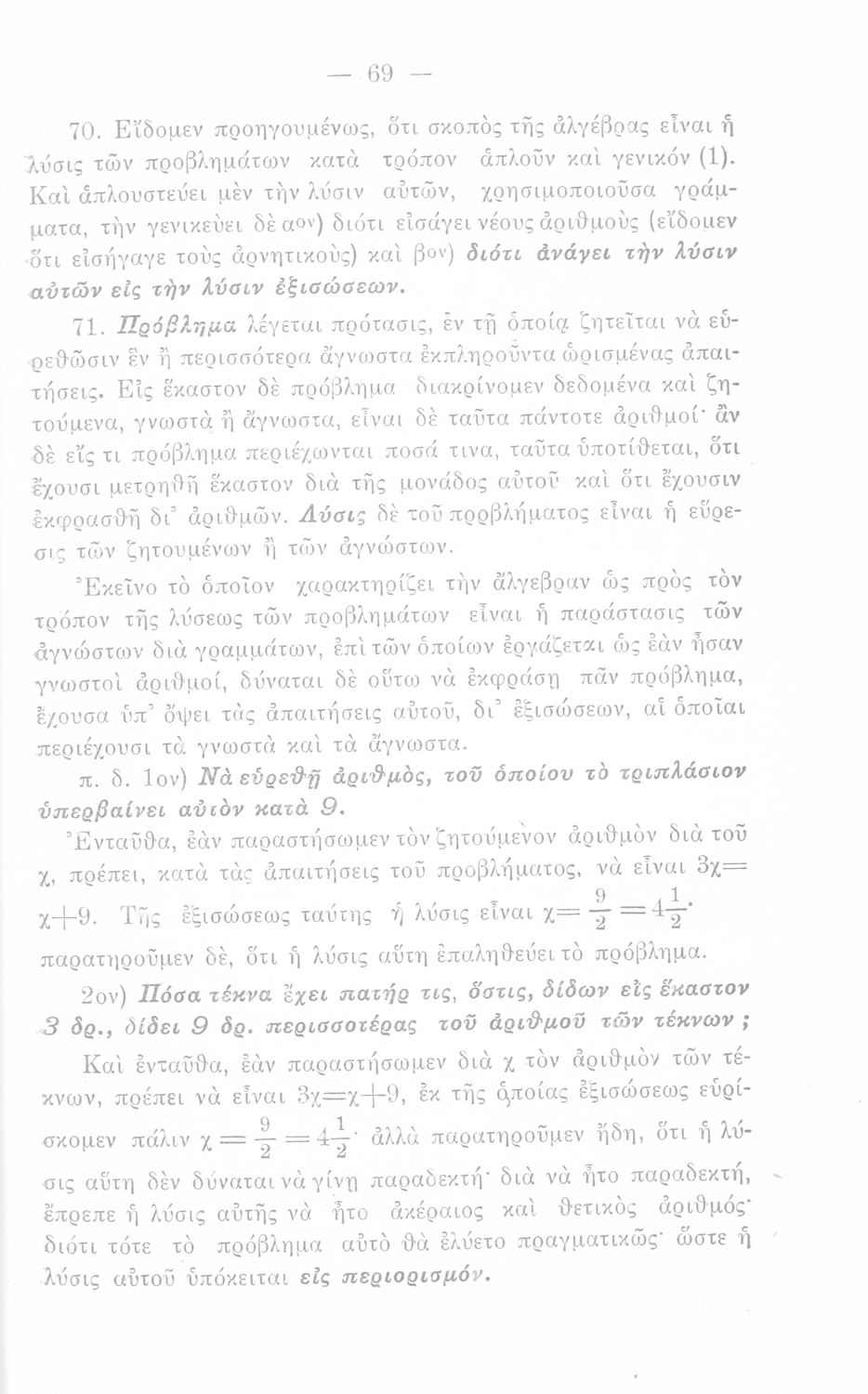 Σχολικό εγχειρίδιο Άλγεβρας Γυμνασίου που περιέχει θεωρία και ασκήσεις. Ο συγγραφέας ήταν υφηγητής στο Εθνικό Πανεπιστήμιο.