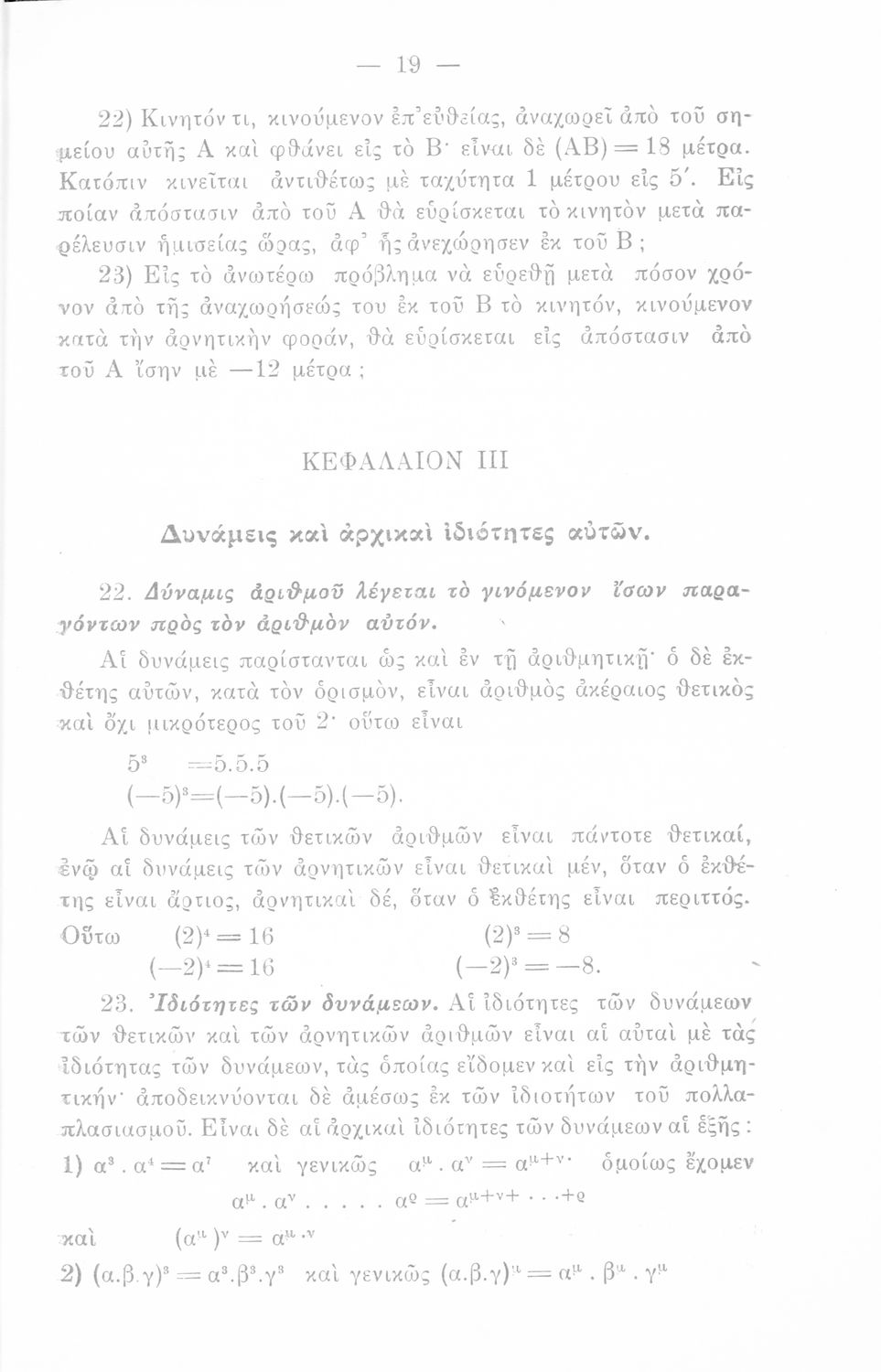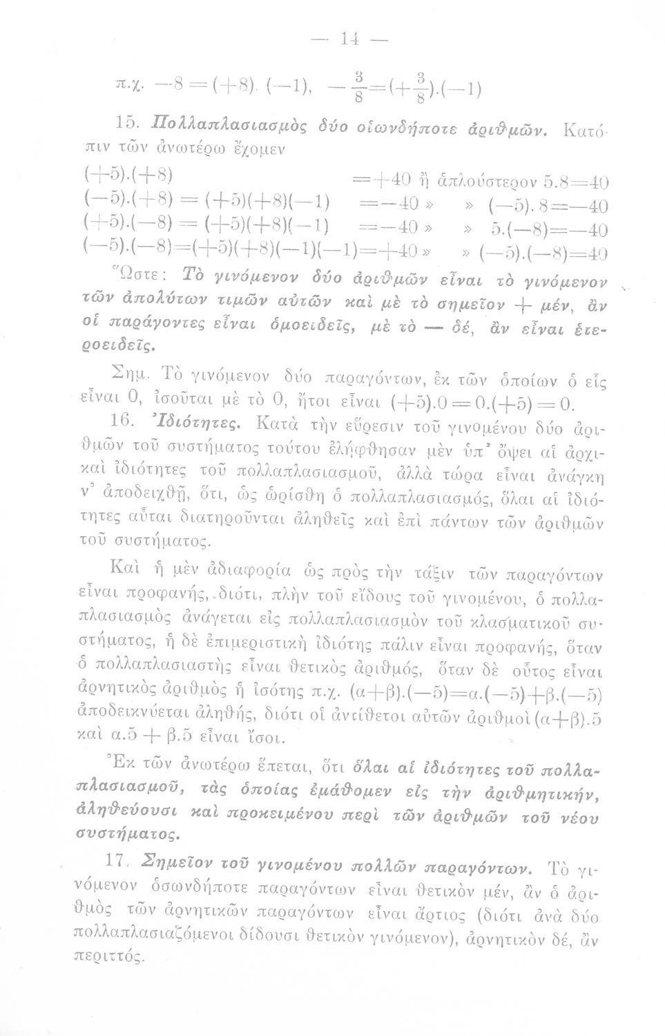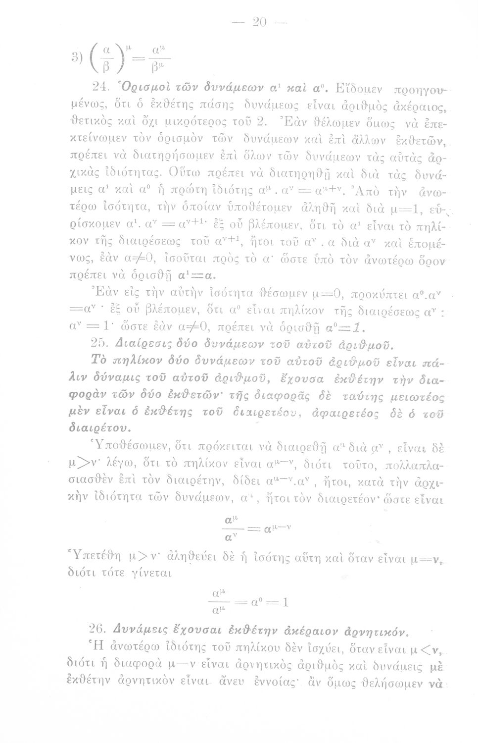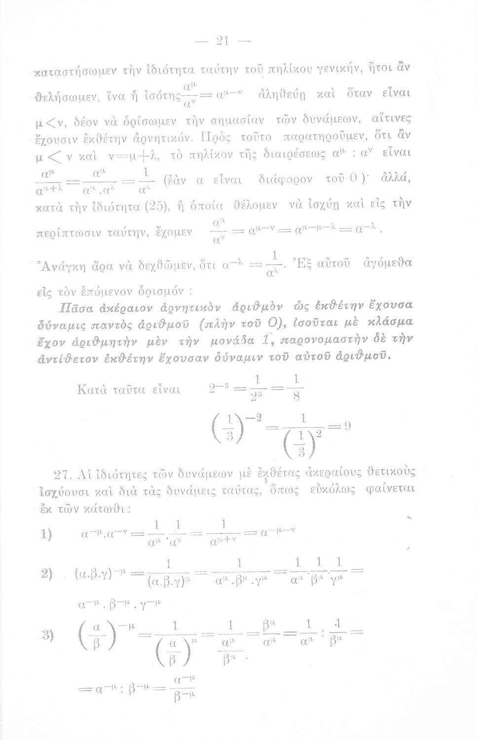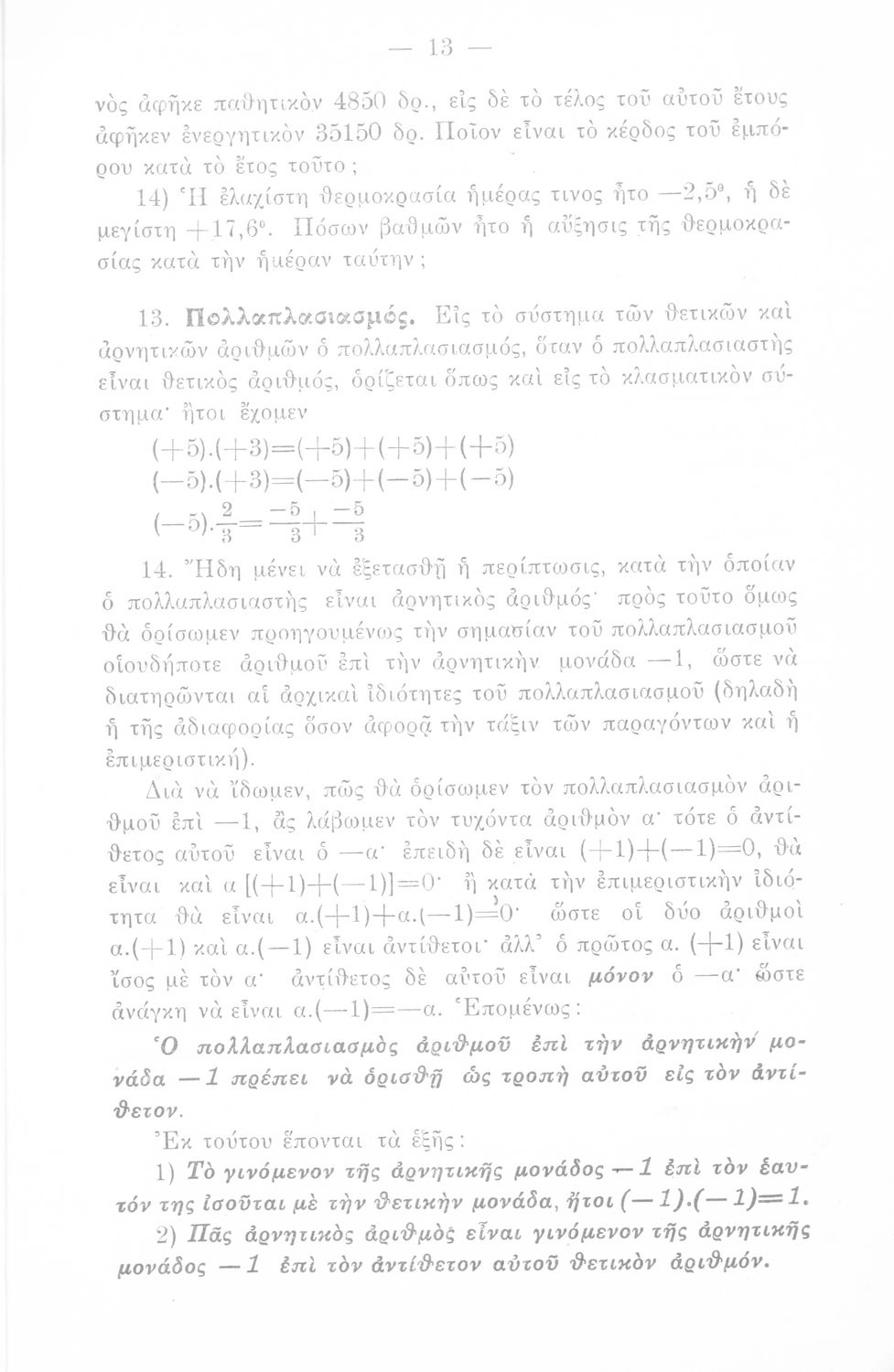 Σχολικό εγχειρίδιο Άλγεβρας Γυμνασίου που περιέχει θεωρία και ασκήσεις. Ο συγγραφέας ήταν υφηγητής στο Εθνικό Πανεπιστήμιο.