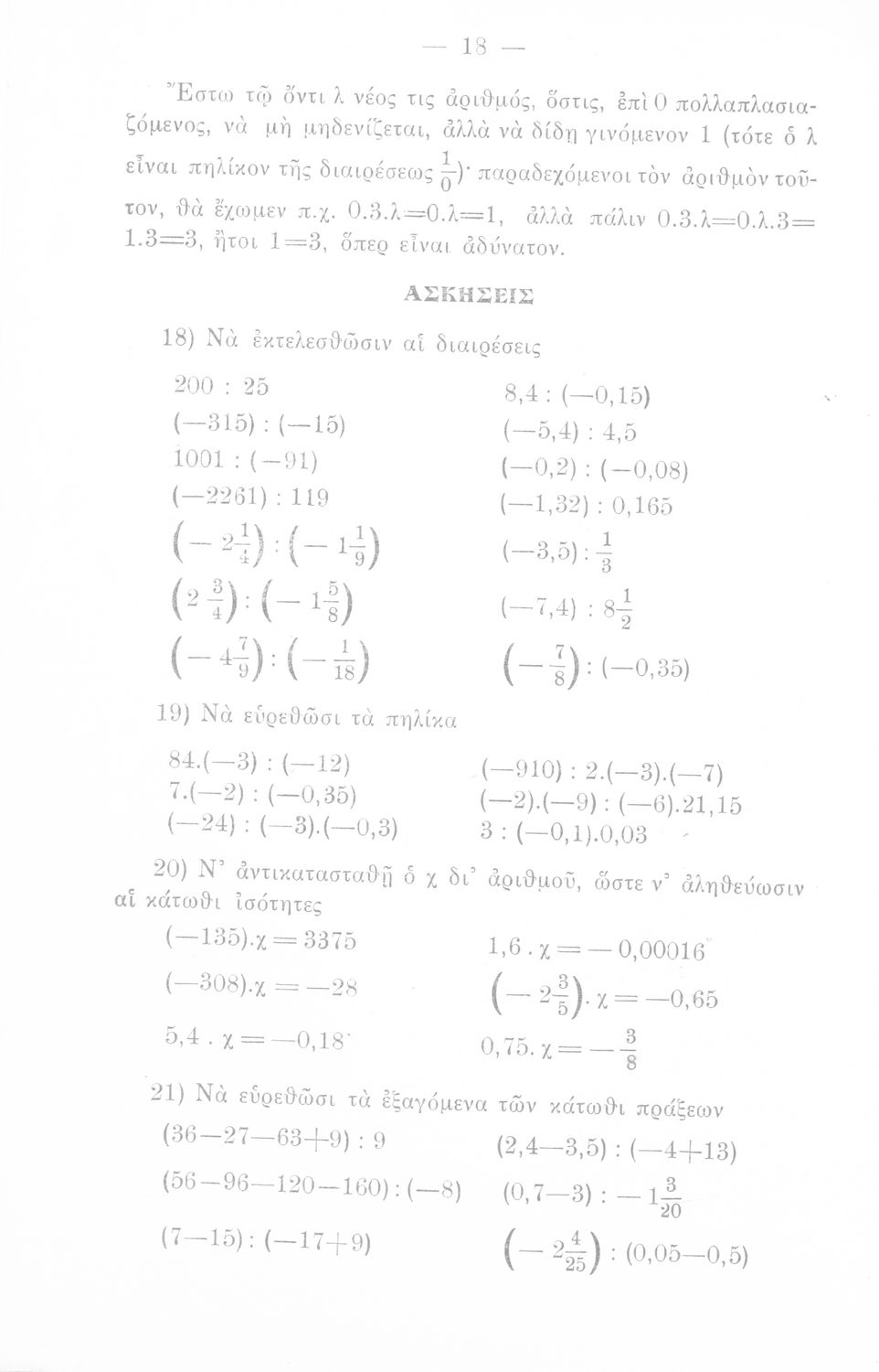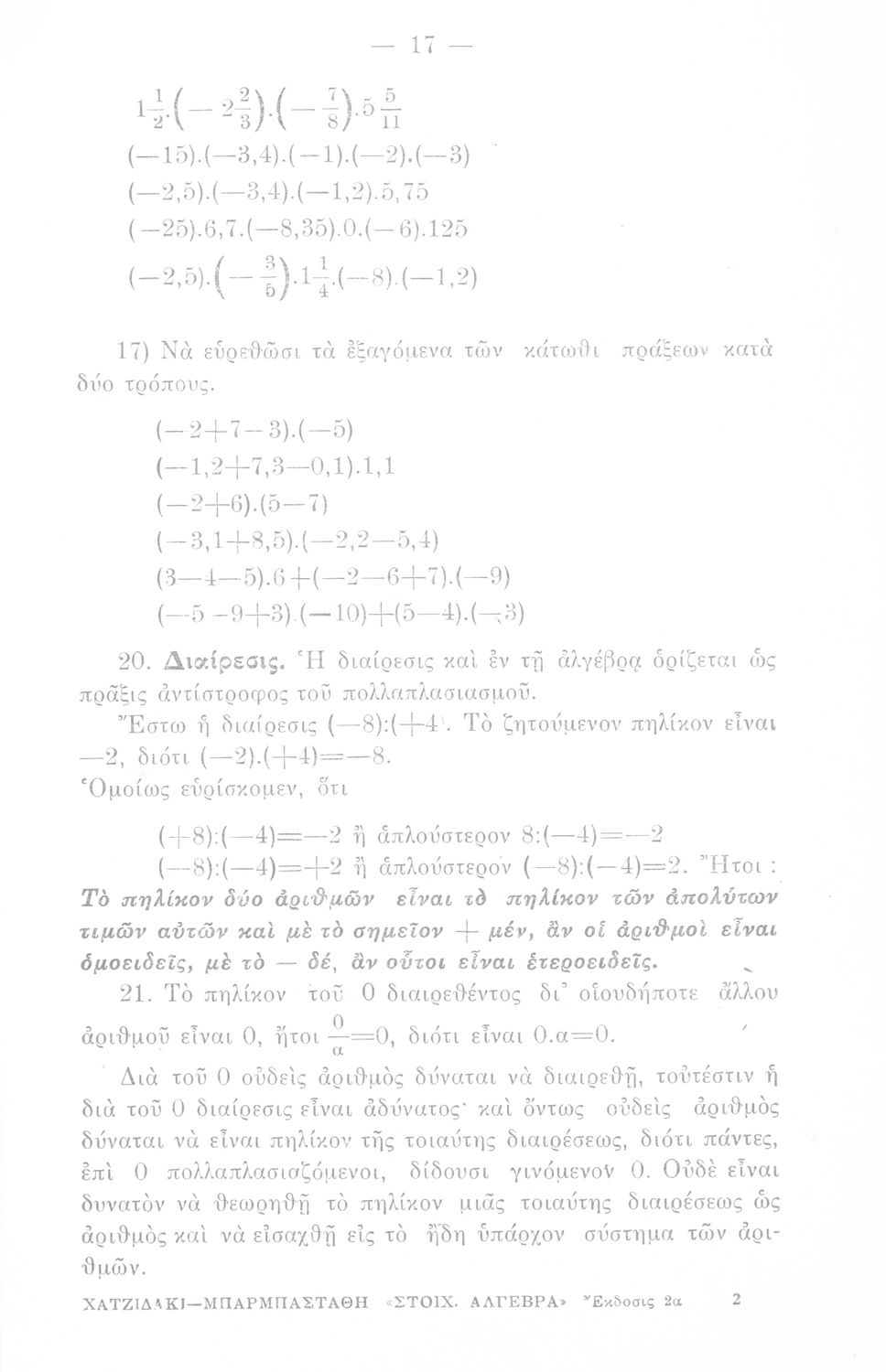 Σχολικό εγχειρίδιο για τις τάξεις του Γυμνασίου για το μάθημα των Μαθηματικών και συγκεκριμένα της Άλγεβρας. Το εγχειρίδιο περιλαμβάνει εισαγωγικά γενικές πληροφορίες για τις 4 βασικές πράξεις συνεχίζει με τις