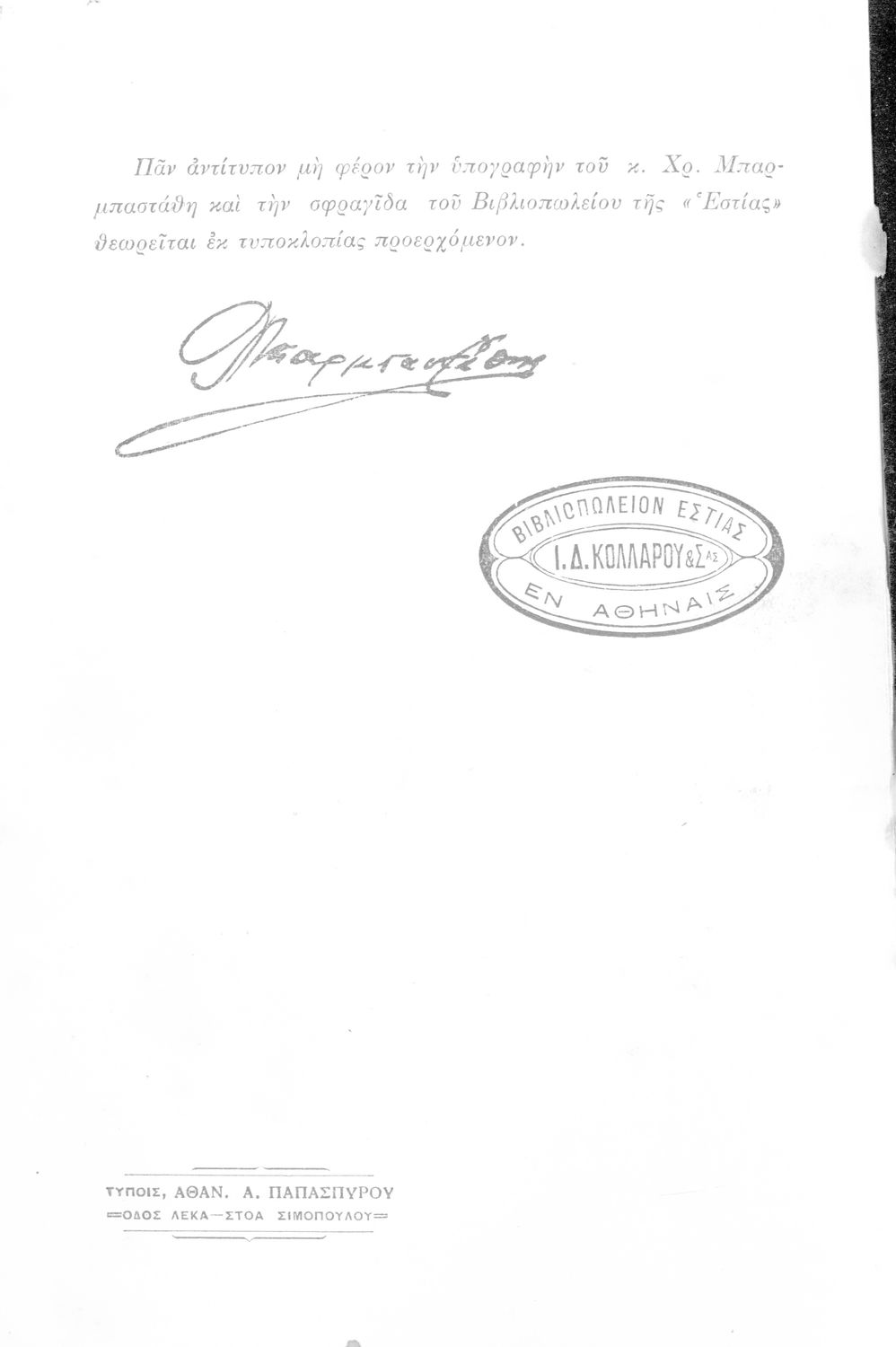 Συγγραφέας: Ιω. Ν. Χατζιδάκις, Χρ. Α. Μπαρμπαστάθης