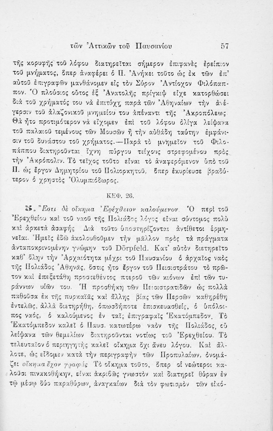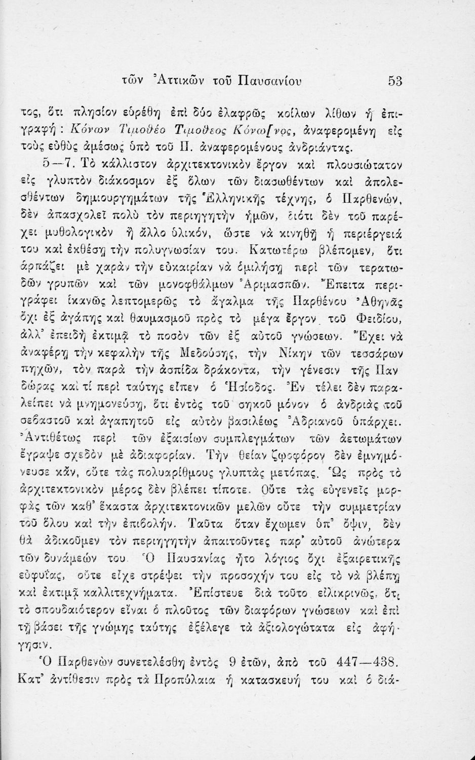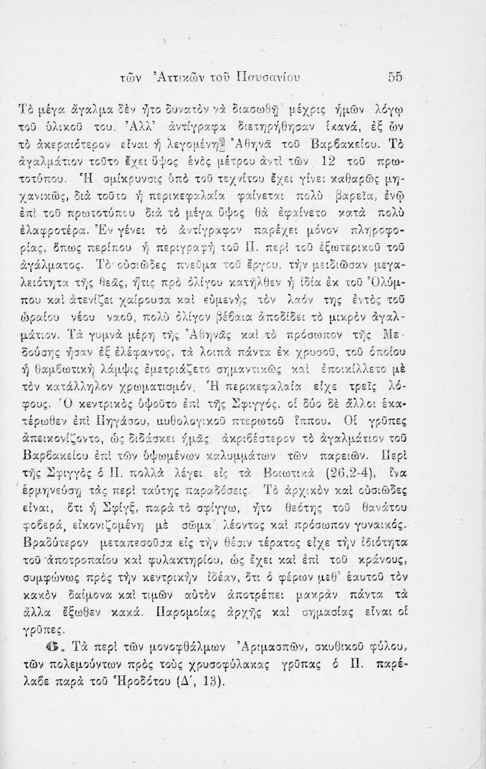 Σχολικό εγχειρίδιο Αρχαίων Ελληνικών Δ΄ Γυμνασίου που περιλαμβάνει αποσπάσματα από τα Αττικά του Παυσανία, εισαγωγή στη ζωή και το έργο του, και ερμηνευτικά και πραγματολογικά σχόλια.