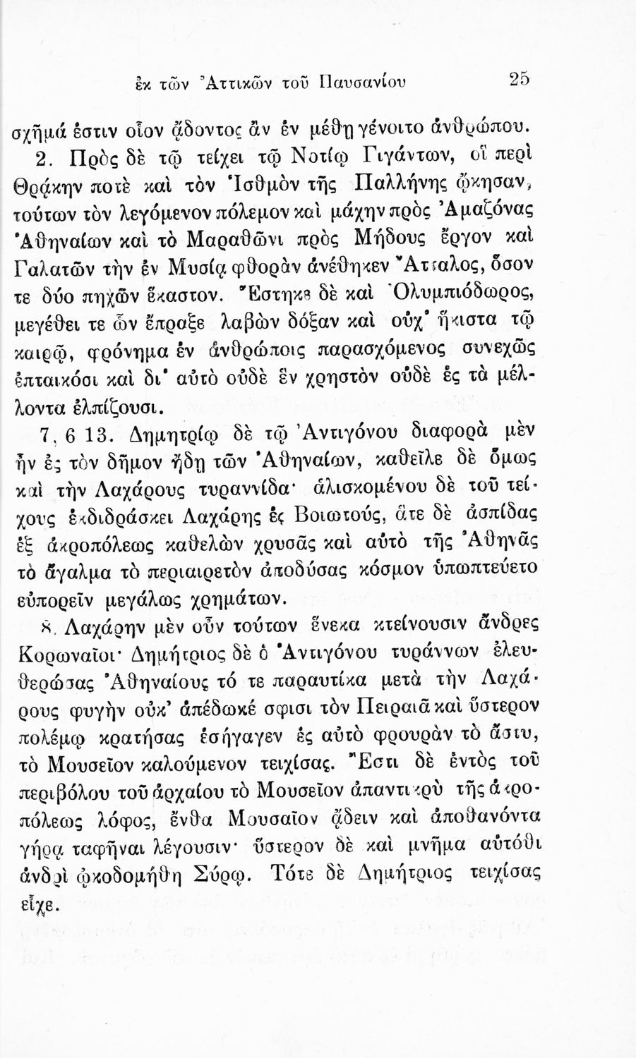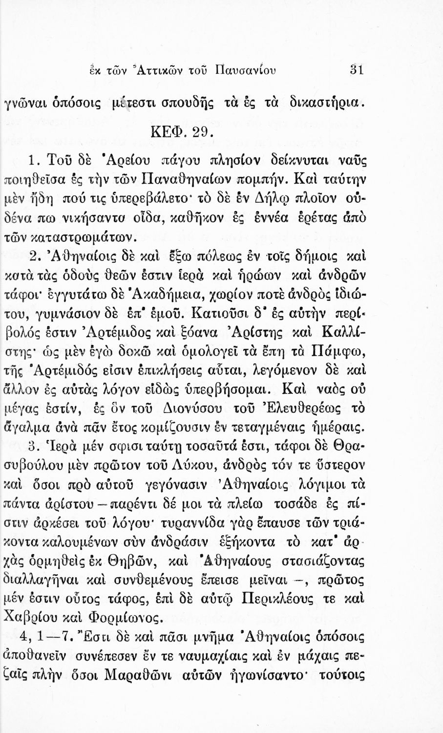 Σχολικό εγχειρίδιο Αρχαίων Ελληνικών Δ΄ Γυμνασίου που περιλαμβάνει αποσπάσματα από τα Αττικά του Παυσανία, εισαγωγή στη ζωή και το έργο του, και ερμηνευτικά και πραγματολογικά σχόλια.