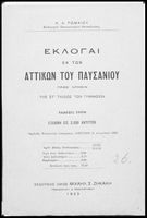 Βαθμίδα εκπαίδευσης: Δευτεροβάθμια Τάξη: Δ' Γυμνασίου Μάθημα: Αρχαία Ελληνικά Γλώσσα: Καθαρεύουσα Παρουσίαση περιεχομένου: Σχολικό εγχειρίδιο Αρχαίων Ελληνικών Δ΄ Γυμνασίου που περιλαμβάνει αποσπάσματα από τα Αττικά του Παυσανία, εισαγωγή στη ζωή και το έργο του, και ερμηνευτικά και πραγματολογικά σχόλια. |