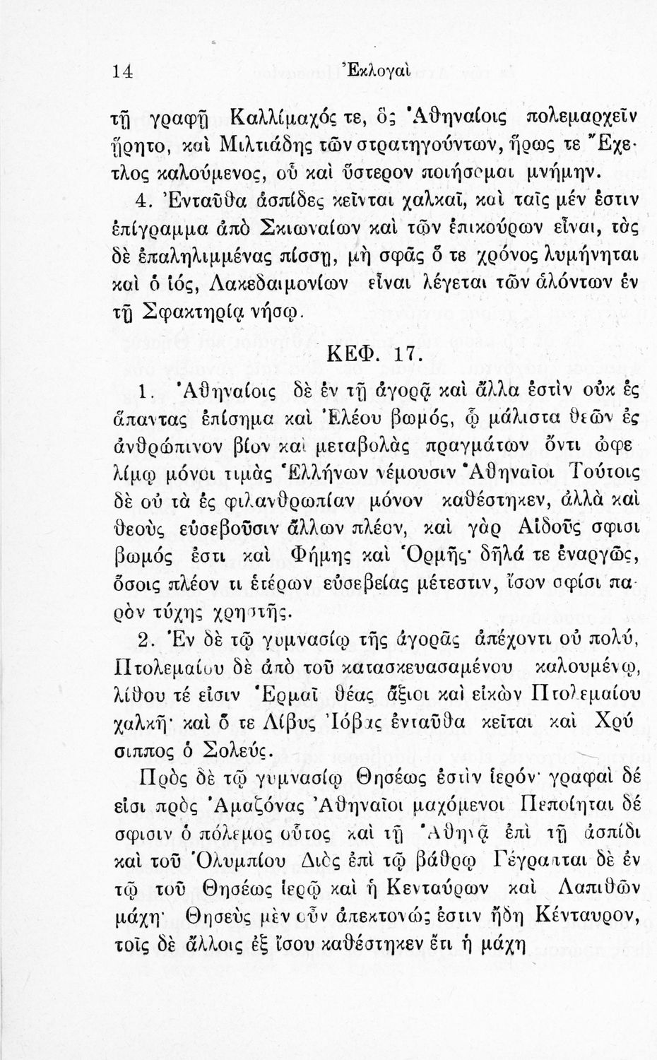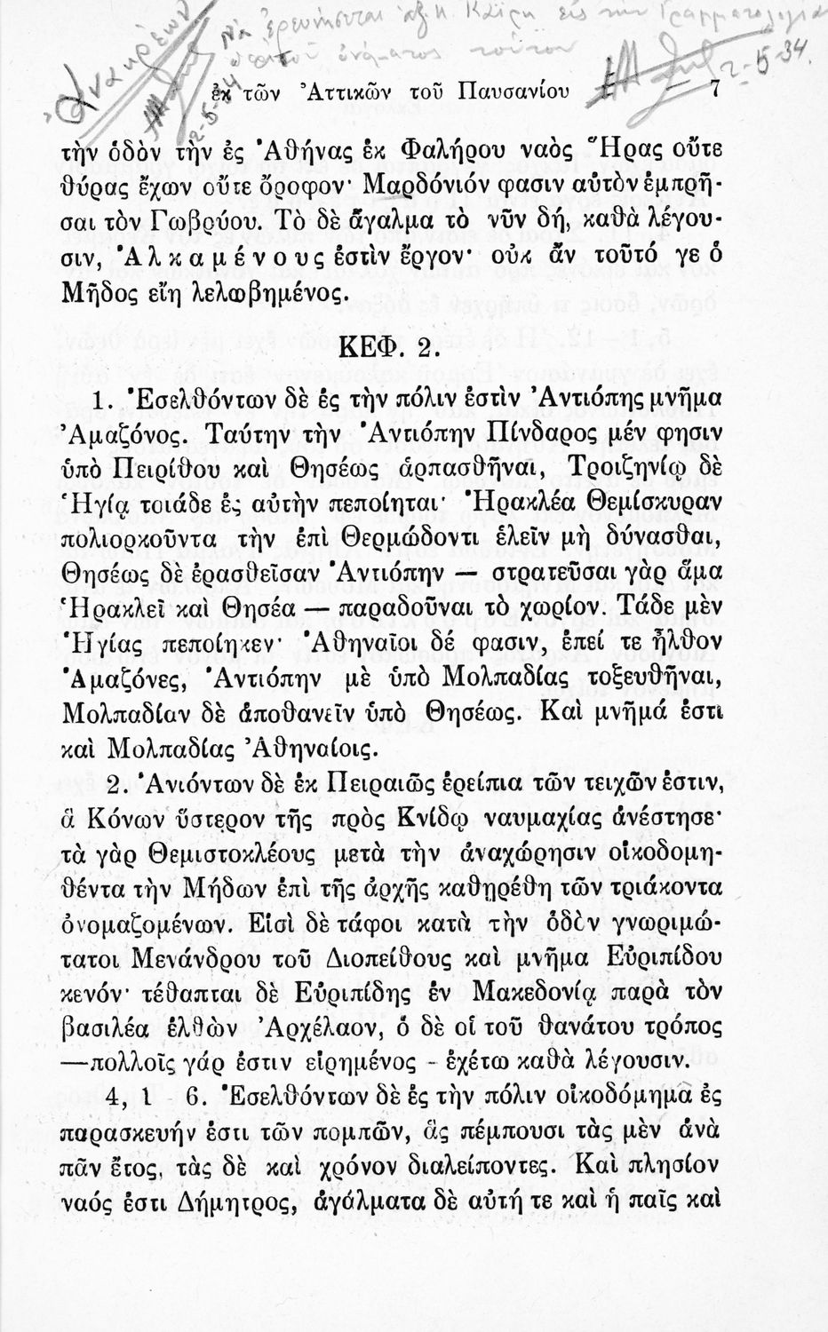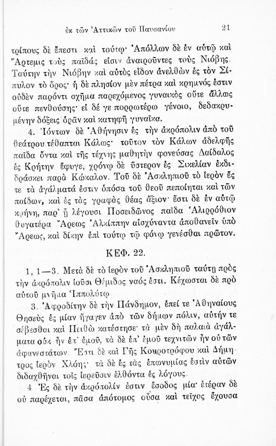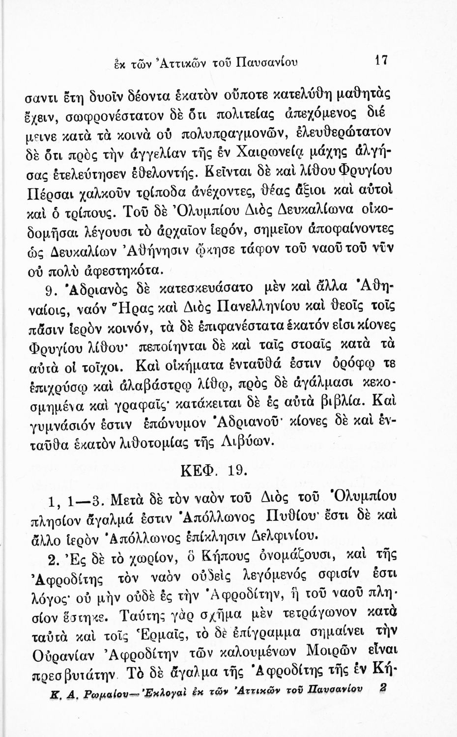 Σχολικό εγχειρίδιο Αρχαίων Ελληνικών Δ΄ Γυμνασίου που περιλαμβάνει αποσπάσματα από τα Αττικά του Παυσανία, εισαγωγή στη ζωή και το έργο του, και ερμηνευτικά και πραγματολογικά σχόλια.
