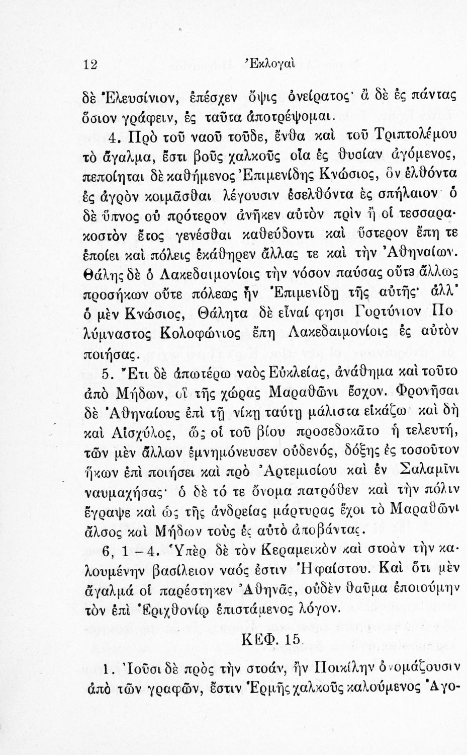 LDR 01178 2200205 4500 035 ## _a20-05379 040 ## _aΚΕΝΕΚ - Εταιρεία Σπουδών Νεοελληνικού Πολιτισμού και Παιδείας 041 ## _ael 100 ## _aΠαυσανίας _aΚ. Α. Ρωμαίος (σχόλια) 110 ## _a5379 245 0# _aΕκλογαί εκ των Αττικών του Παυσανίου προς χρήσιν της Δ΄ τάξεως των Γυμνασίων 250 ## _a2η Έκδοση 260 ## _aΑθήνα _bΜ. Ζηκάκης _c1928 300 ## _a136 _bΧάρτης (ασπρόμαυρος) _c20 520 ## _aΣχολικό εγχειρίδιο Αρχαίων Ελληνικών Δ΄ Γυμνασίου που περιλαμβάνει αποσπάσματα από τα Αττικά του Παυσανία, εισαγωγή στη ζωή και το έργο του, και ερμηνευτικά και πραγματολογικά σχόλια. 521 ## _aΔ' Γυμνασίου 522 ## _aΕλλάδα 546 ## _aΚαθαρεύουσα 563 ## _aΣκληρό Εξώφυλλο 650 #4 _aΑθήνα _aΕρέχθειο _aΜνημεία