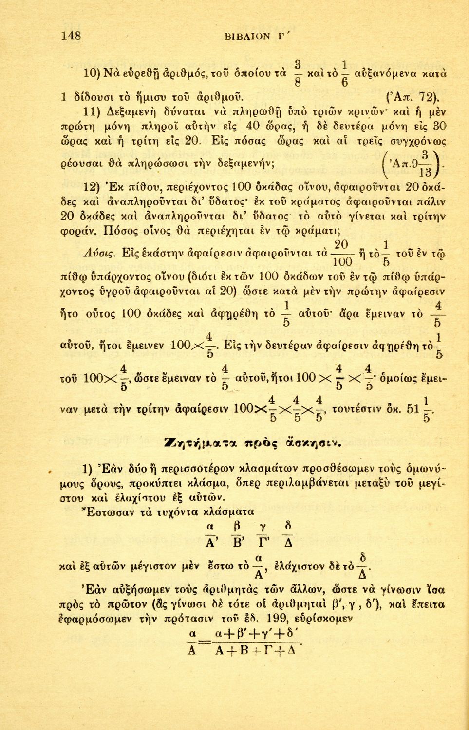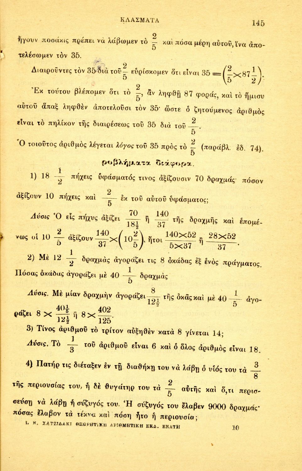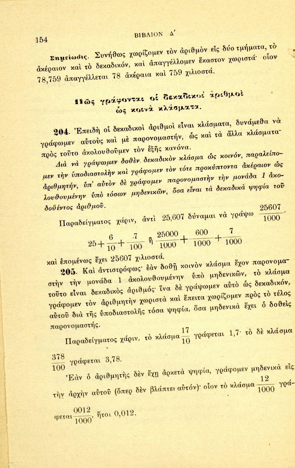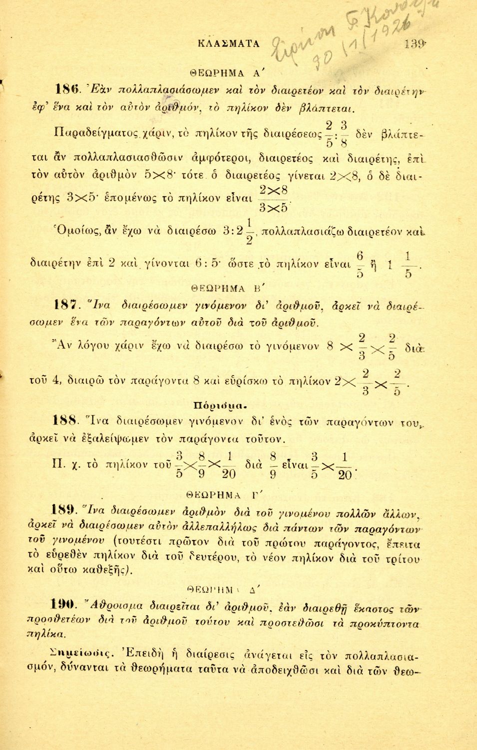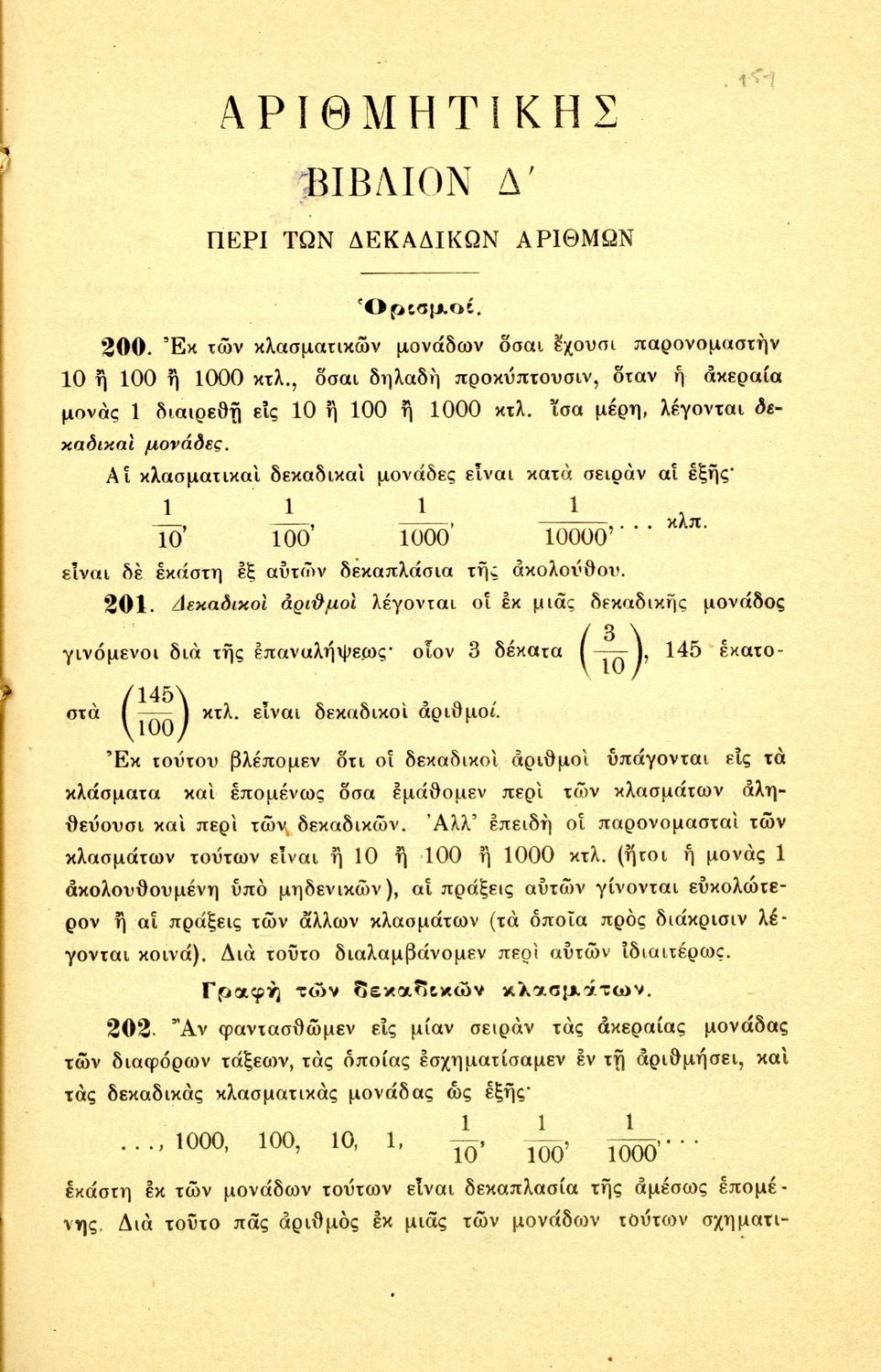 Σχολικό εγχειρίδιο Αριθμητικής για τα Γυμνάσια και Λύκεια που εστιάζει στις αριθμητικές πράξεις με ακέραιους αριθμούς και κλάσματα και είναι χωρισμένο σε ορισμούς, θεωρήματα και ασκήσεις.